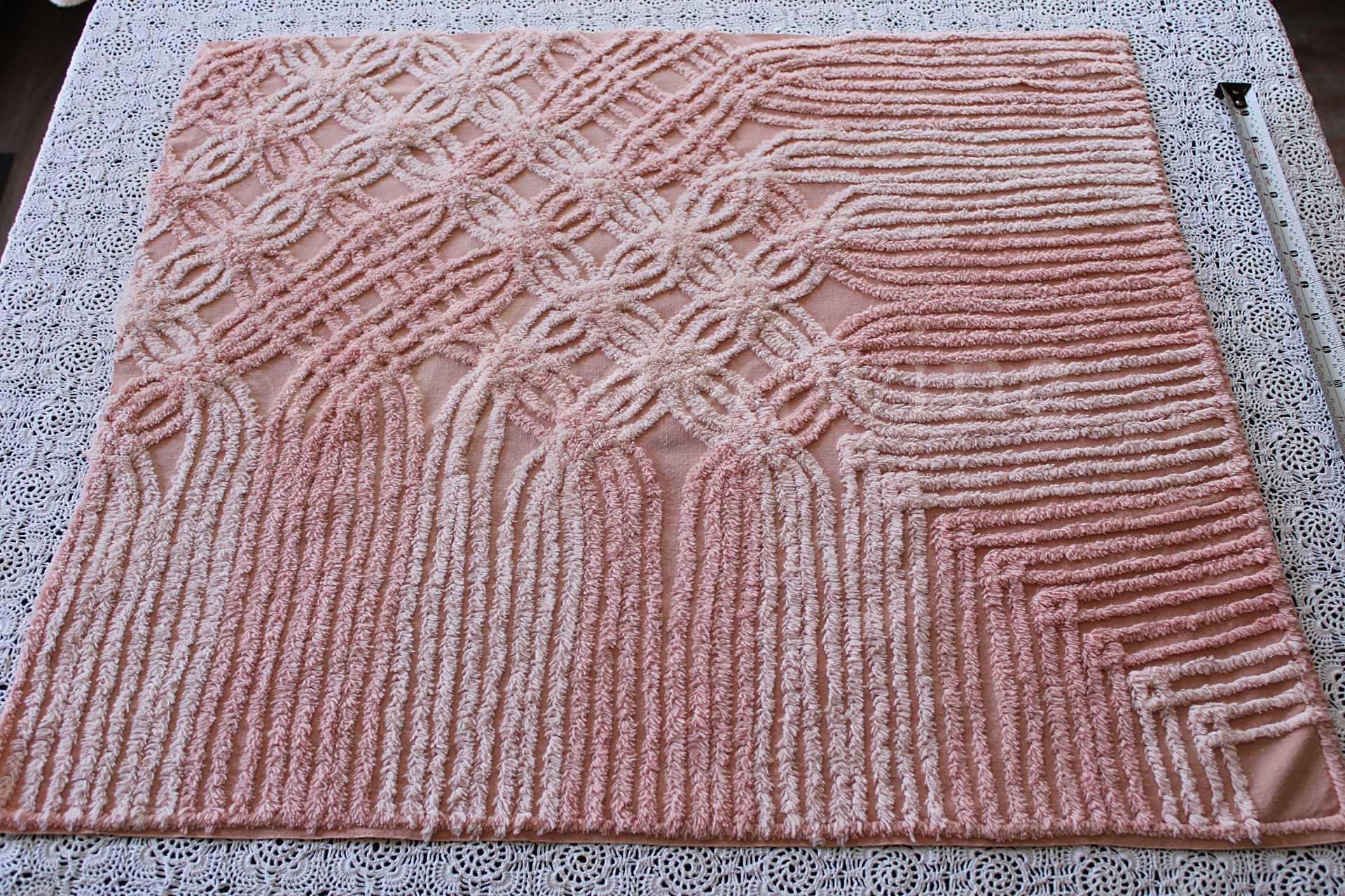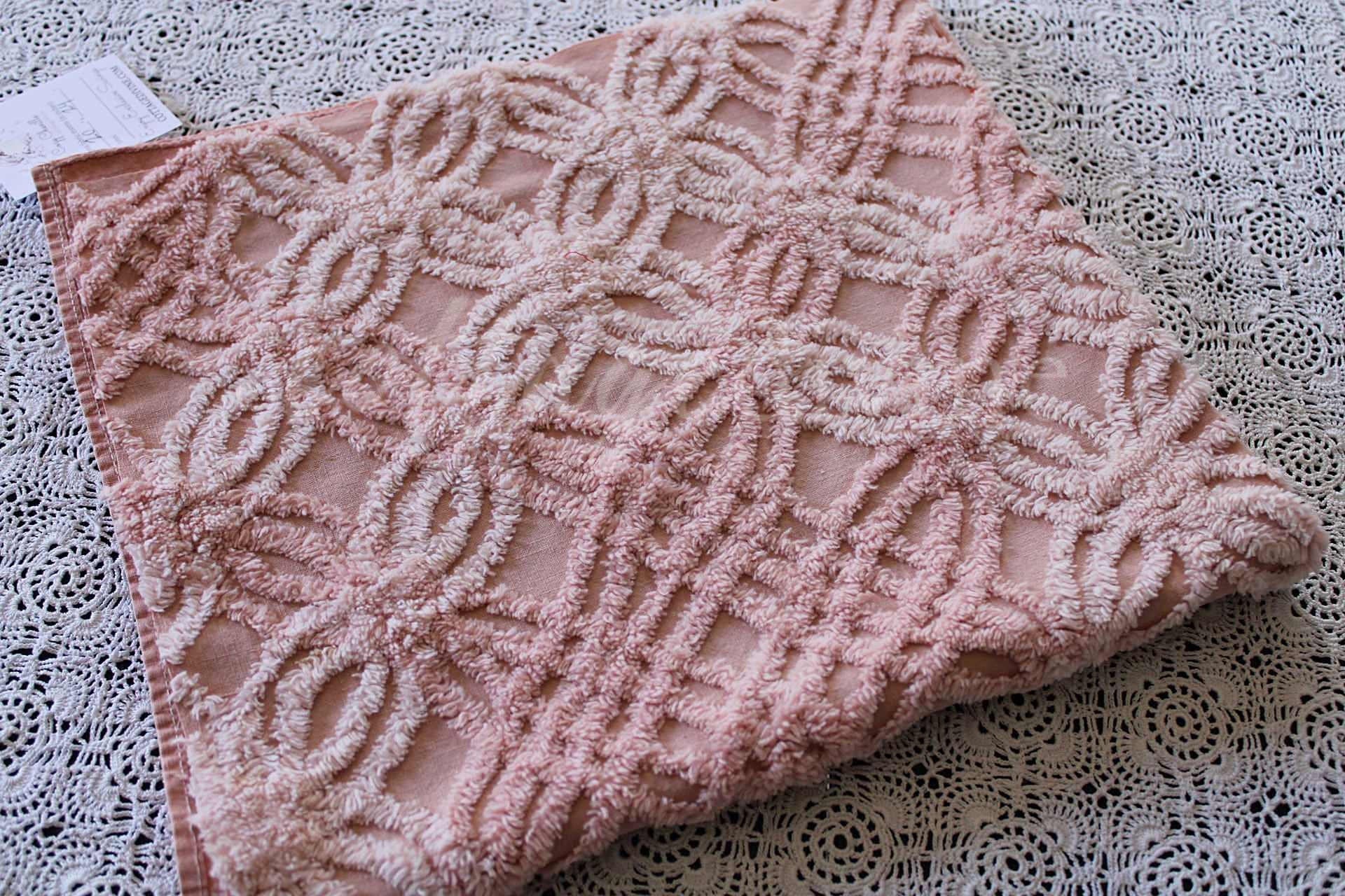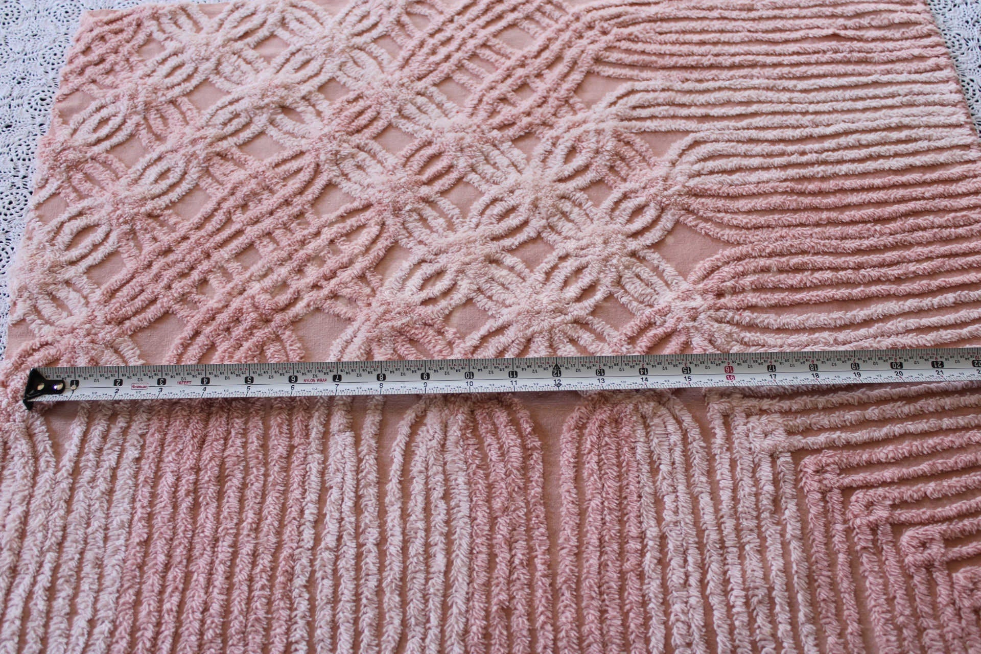 Step back in time with this absolutely beautiful vintage chenille fabric piece. It is in a lovely two tone shade of blush pink that has a "glow" to it when the sun's rays fall upon it....evokes a sense of nostalgia, like you're time traveling to the 1940s, to a warm, glowing room where grandma or mom had just made the bed for the day.