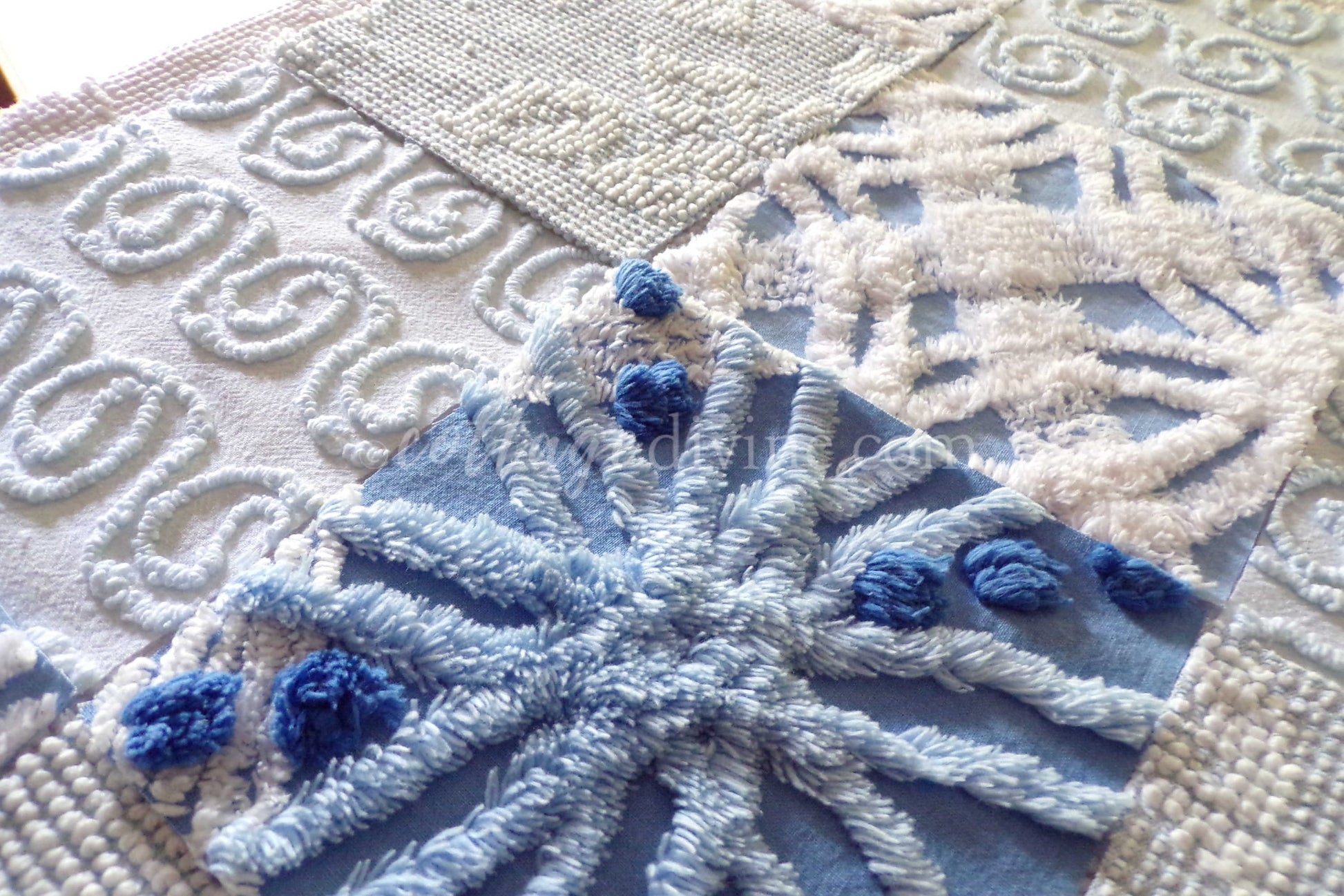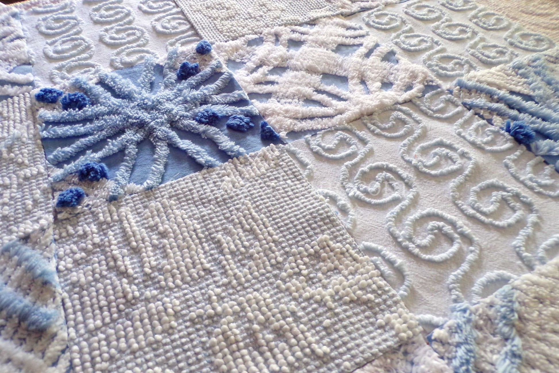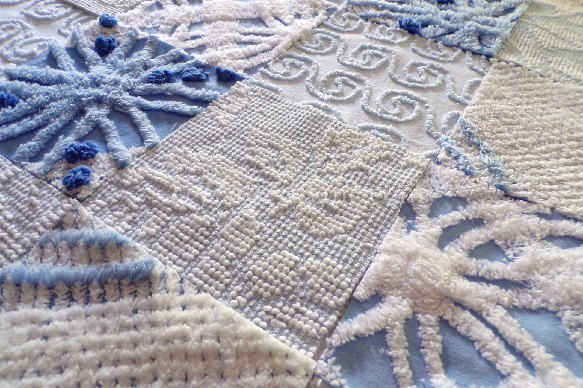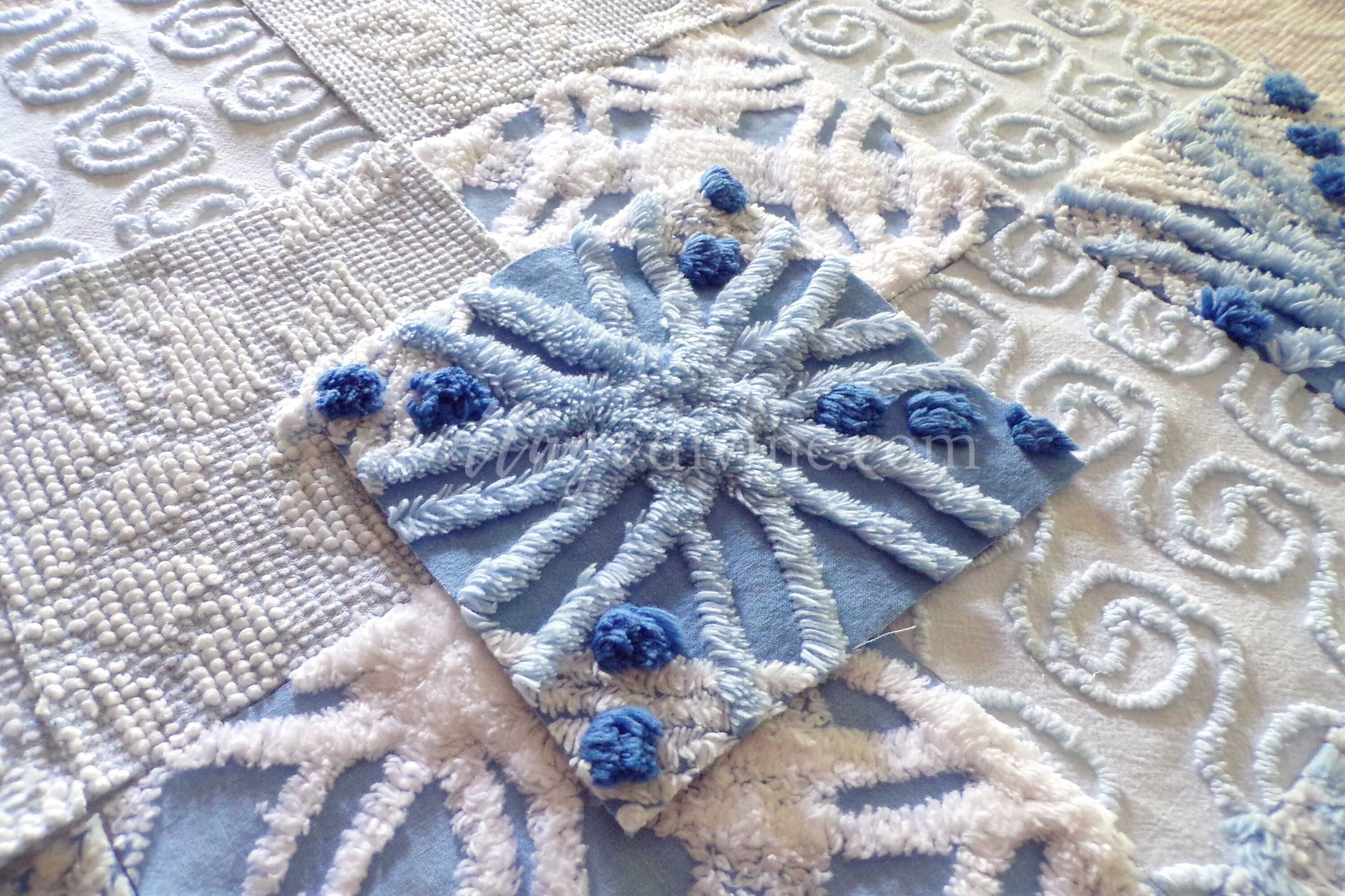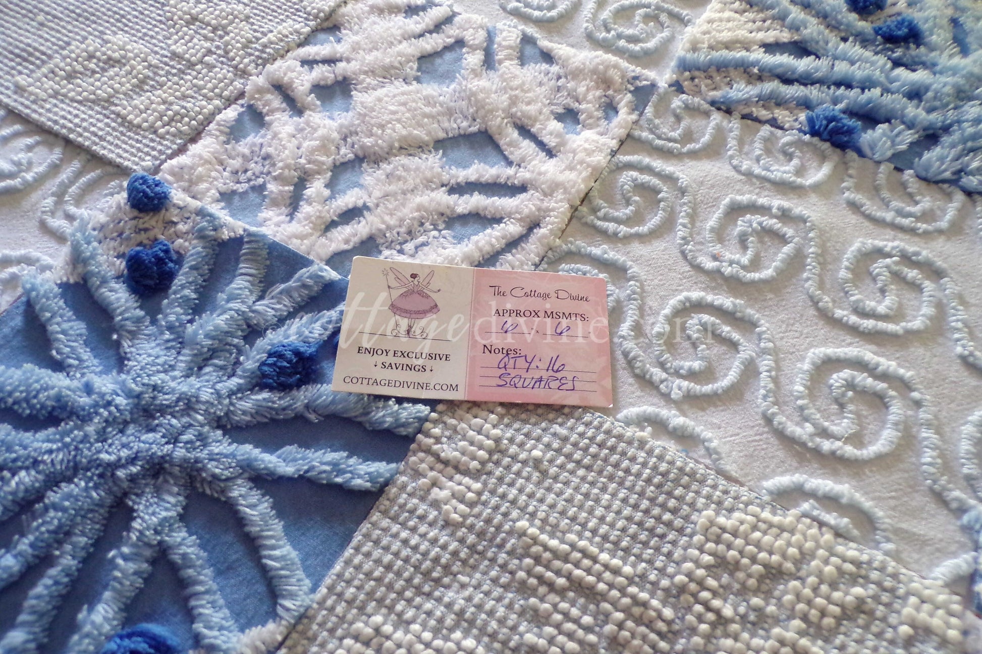 Inspired by the icy breezes from a winter snow storm, this set of 16 vintage chenille fabric squares emphasizes cool tone blues & icy whites for a chilly essenceđź’™A great way to incorporate a refreshing presence into your small project, or sew together for a farmhouse style patchwork pillow.