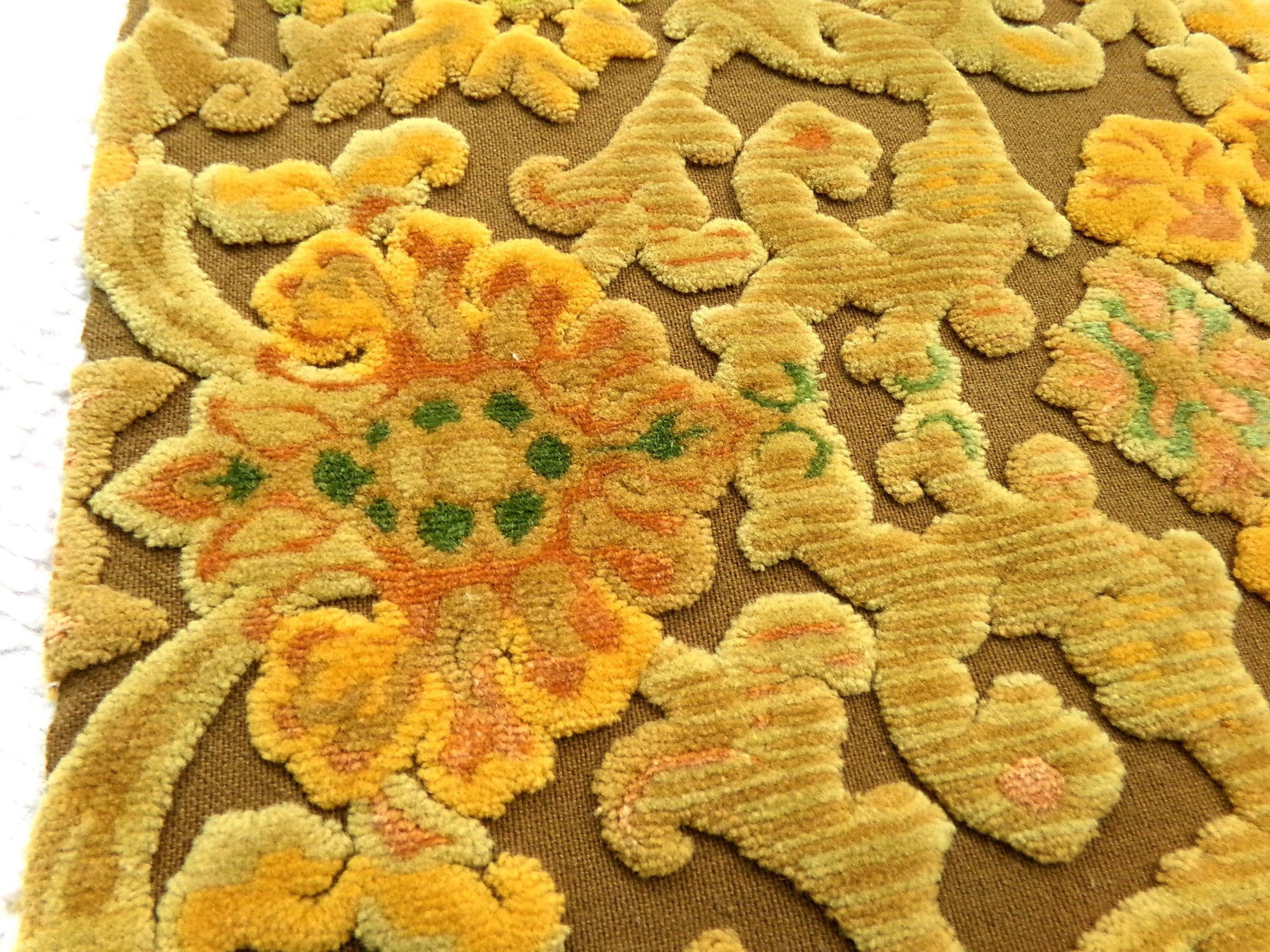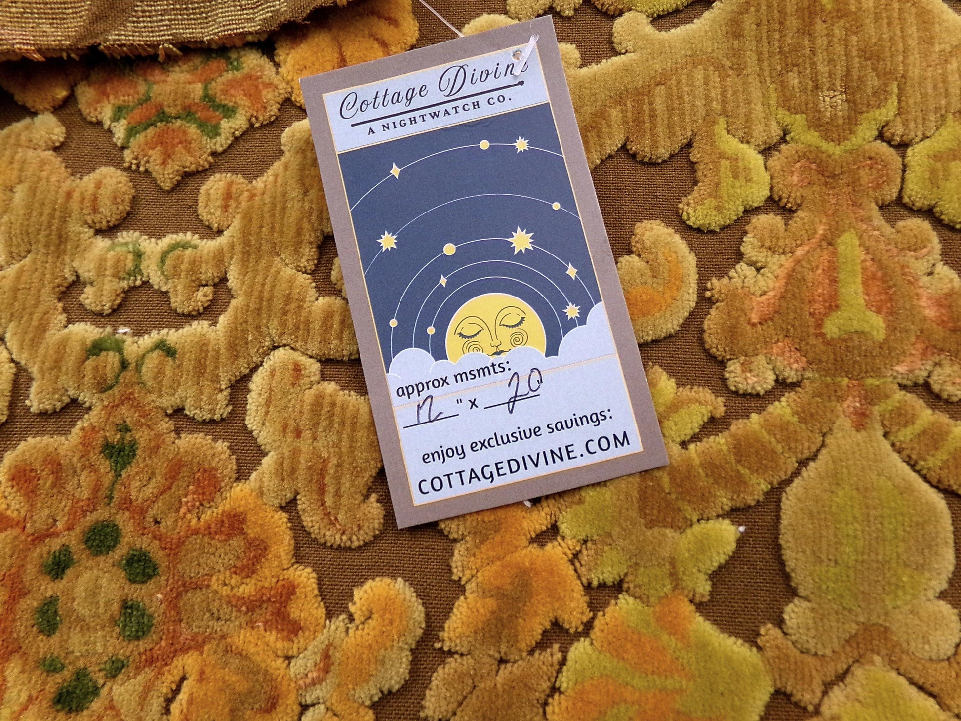 Experience the luxury and quality of vintage Bates cut velvet fabric, with this small 12" x 20" cut piece. It's great for those little projects like essential oil bags, or it would even make a beautiful wall hanging. Photos taken in bright light to show detail and color adaptability. It is an exquisite piece of original vintage fabric.Key highlights: