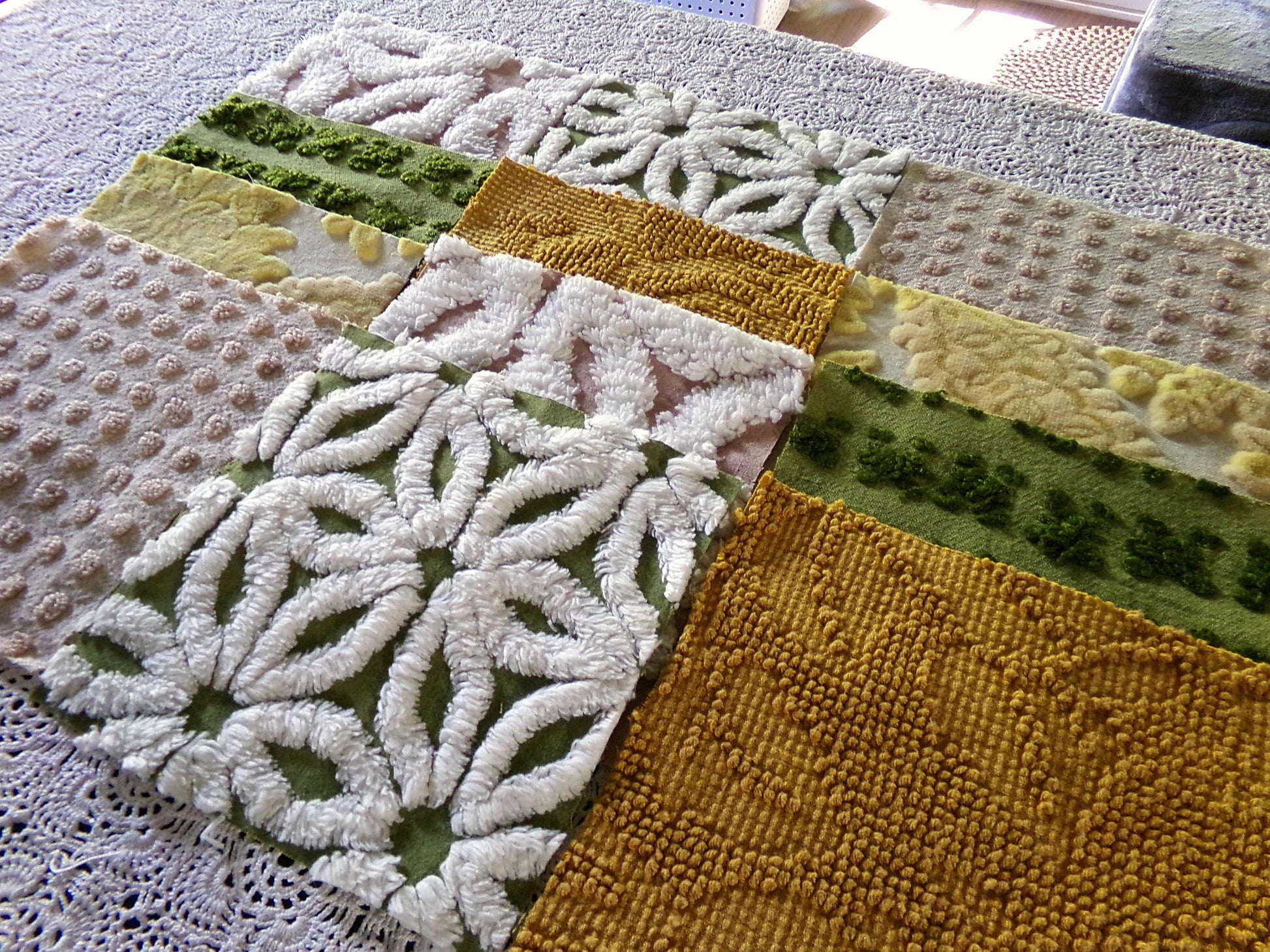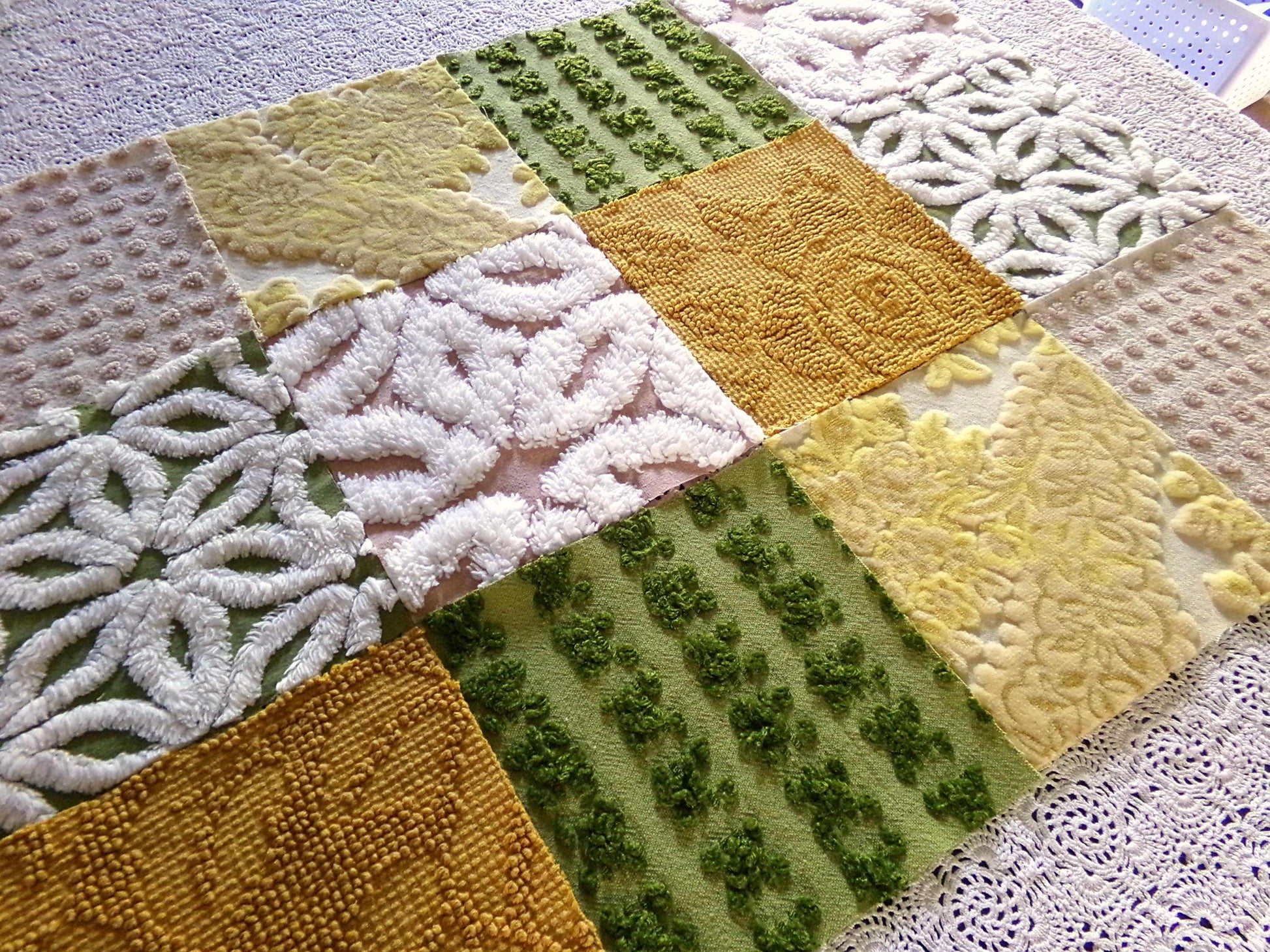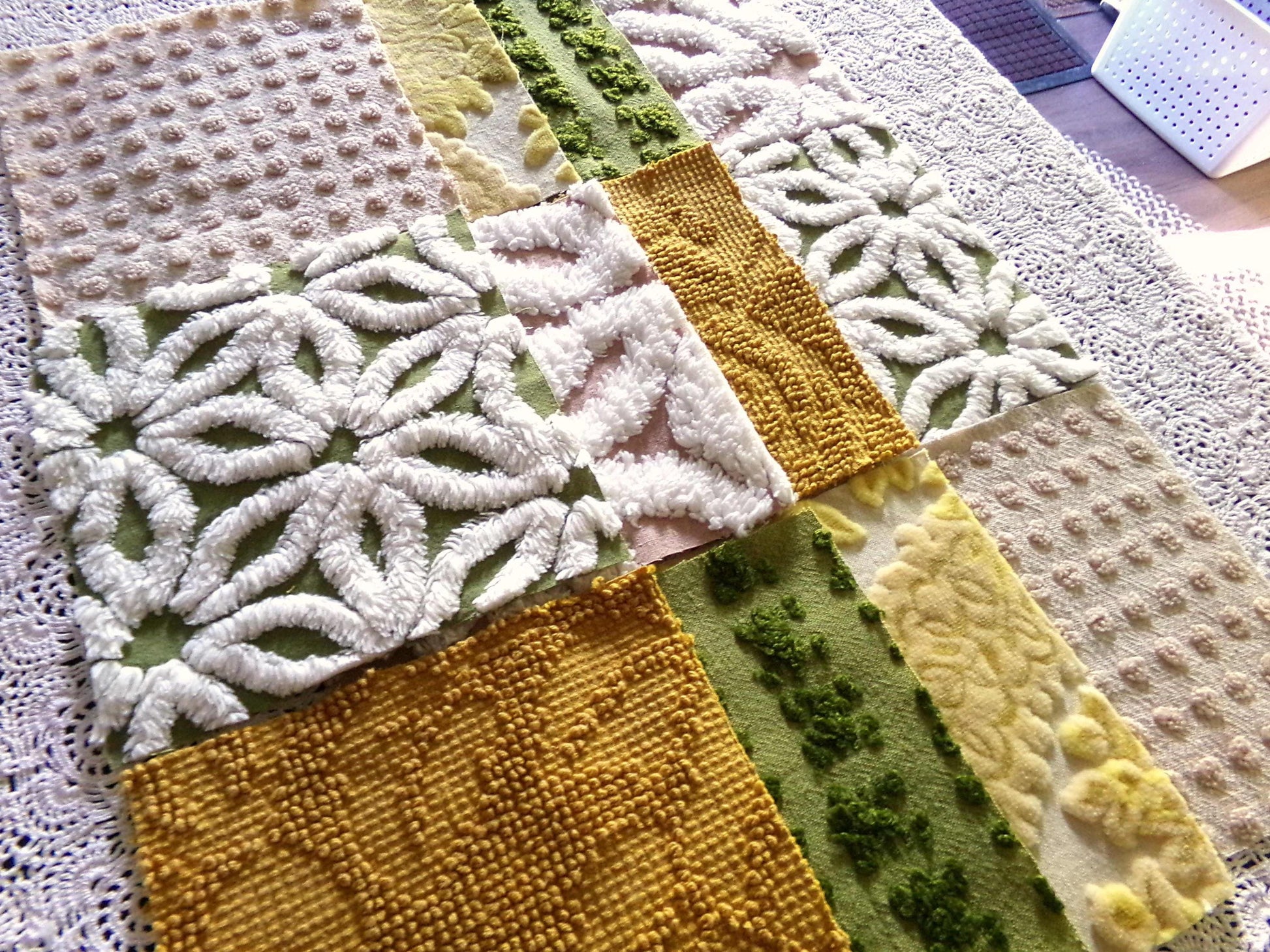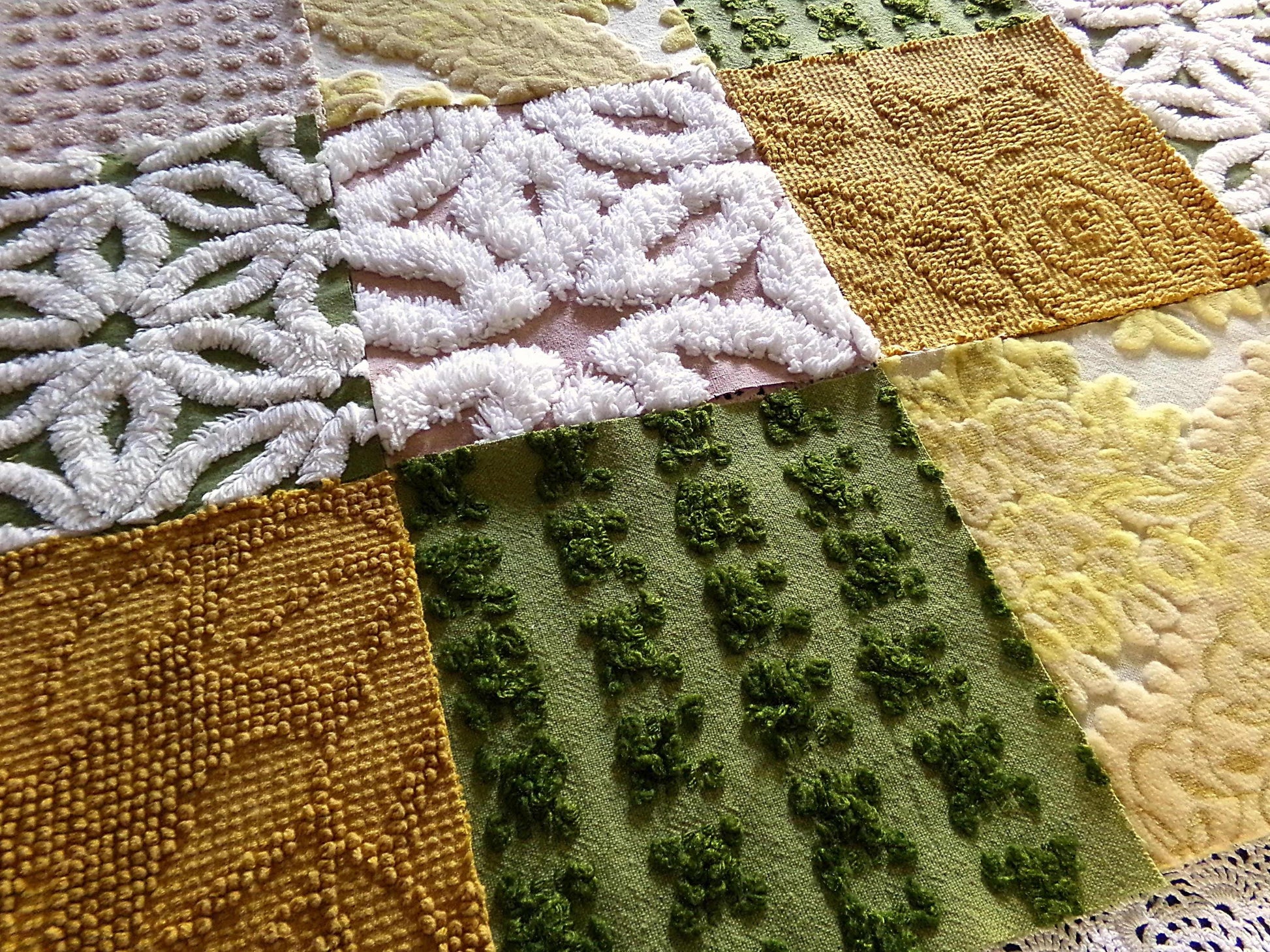 Spark your creativity with this set of fabric squares cut from vintage chenille bedspreads. Two squares are Bates cut velvet in a gorgeous design. This boho themed assorted selection emphasizes woodsy, earthtone retro hippie colors with a range of textures. Each measures about 6" square.Perfect for: slow stitching, mending patches, junk journals, little craft projects like pin cushions or small doll clothes, or to incorporate into larger projects like patchwork pillow covers or handmade quilts.