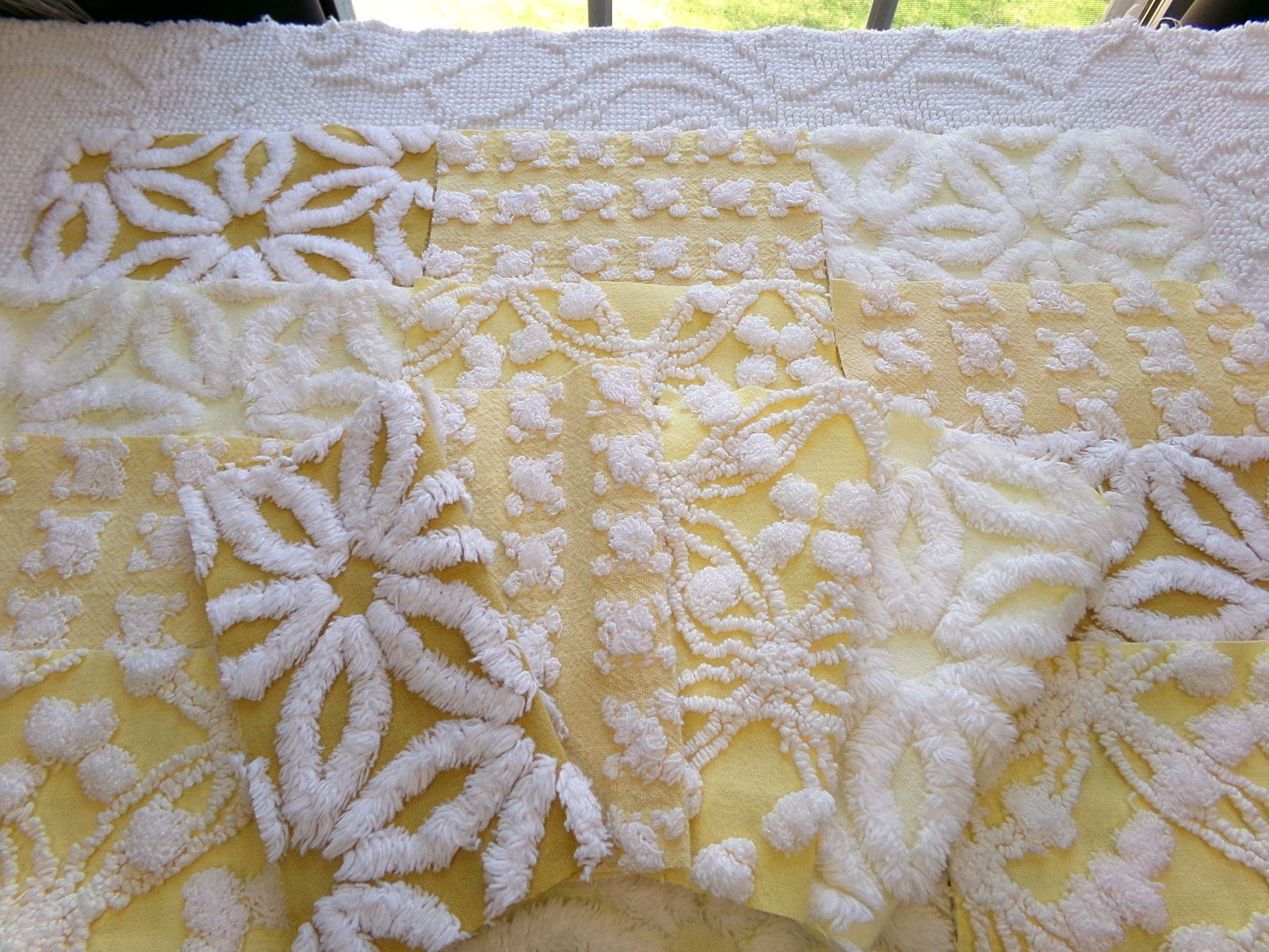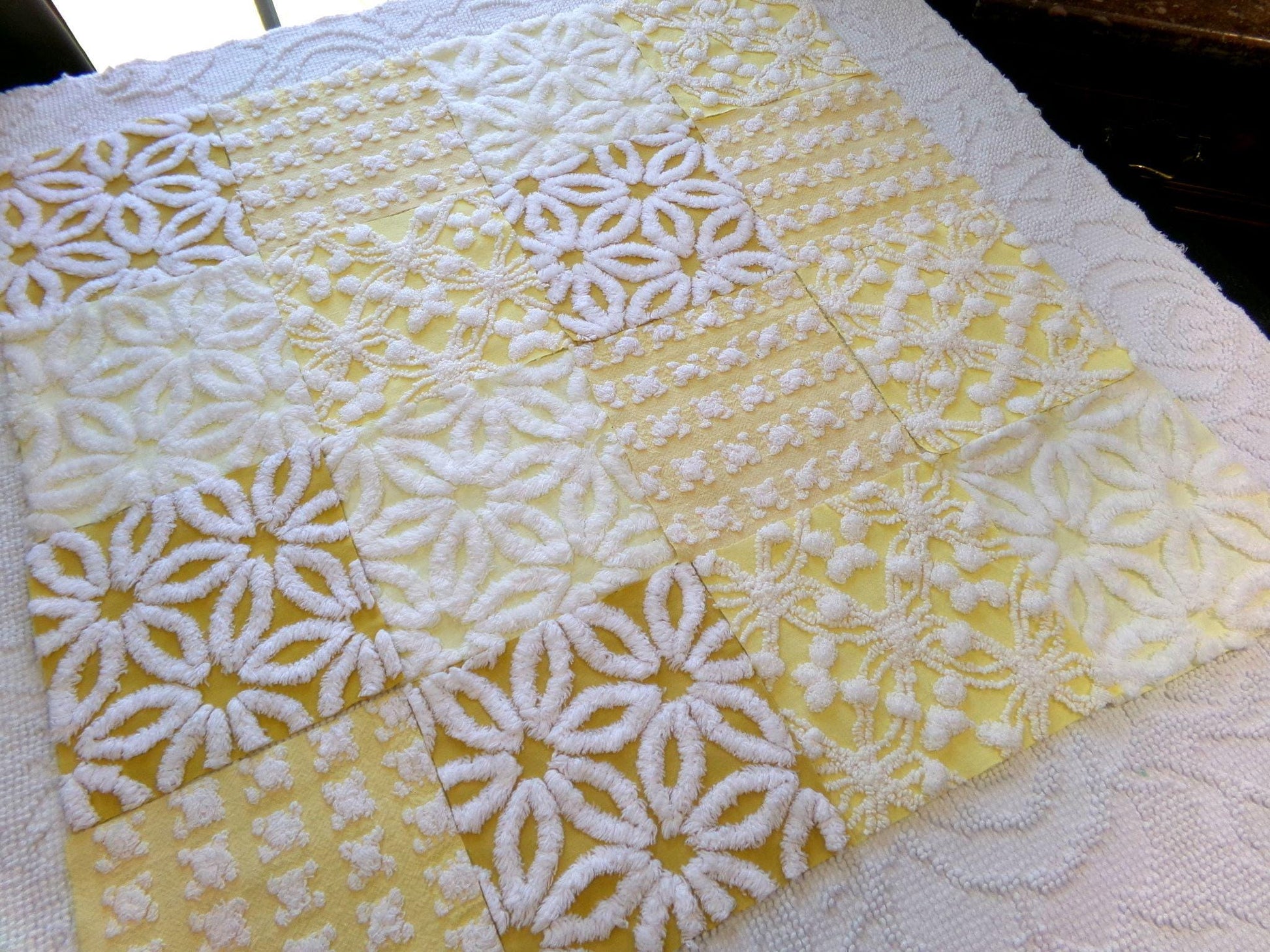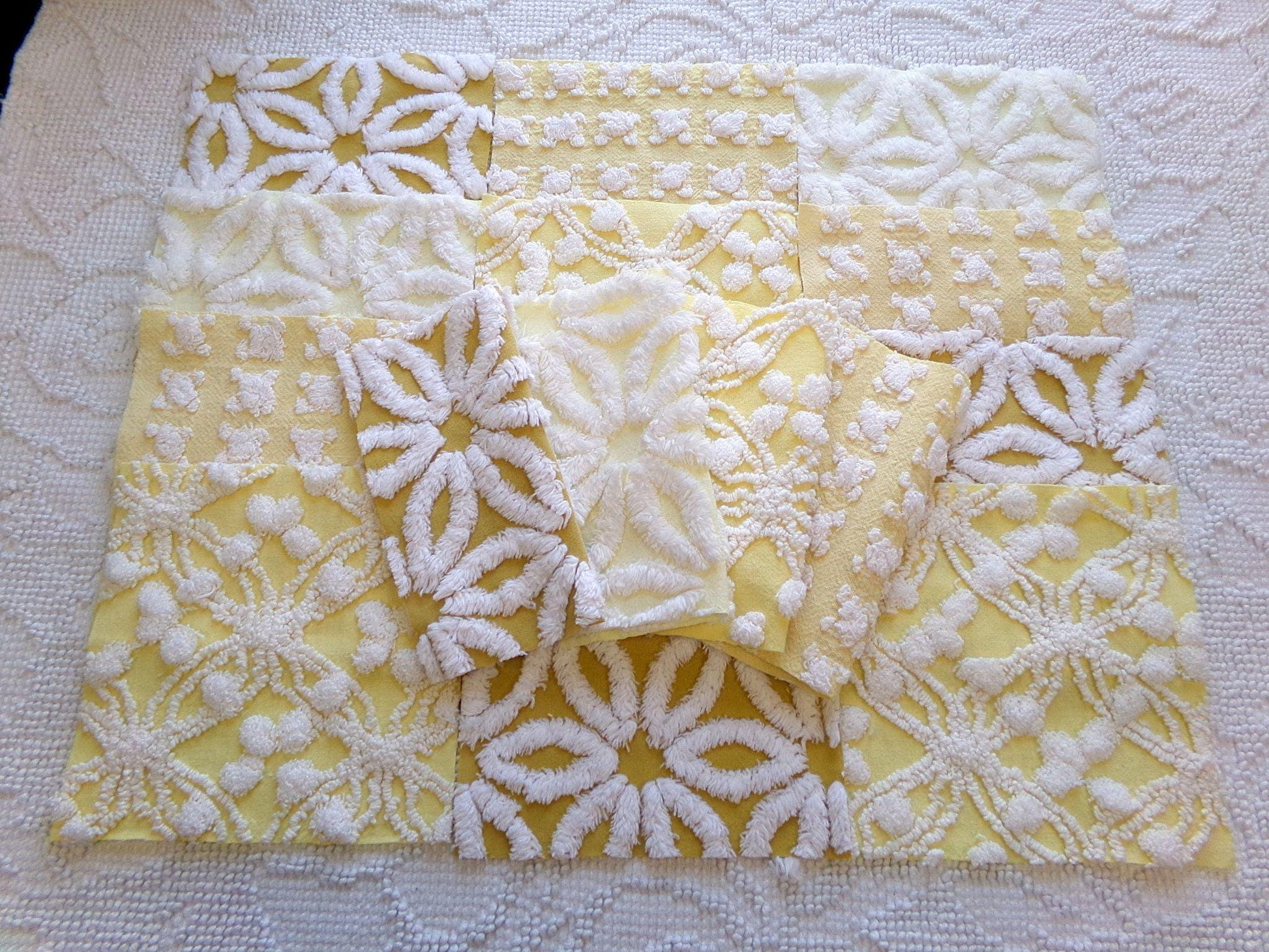 This assorted premium mix of fabric squares has been hand selected and rotary cut from original vintage chenille bedspreads. All are cotton or cotton blend. Ideal in DIY pillows & handmade quilts