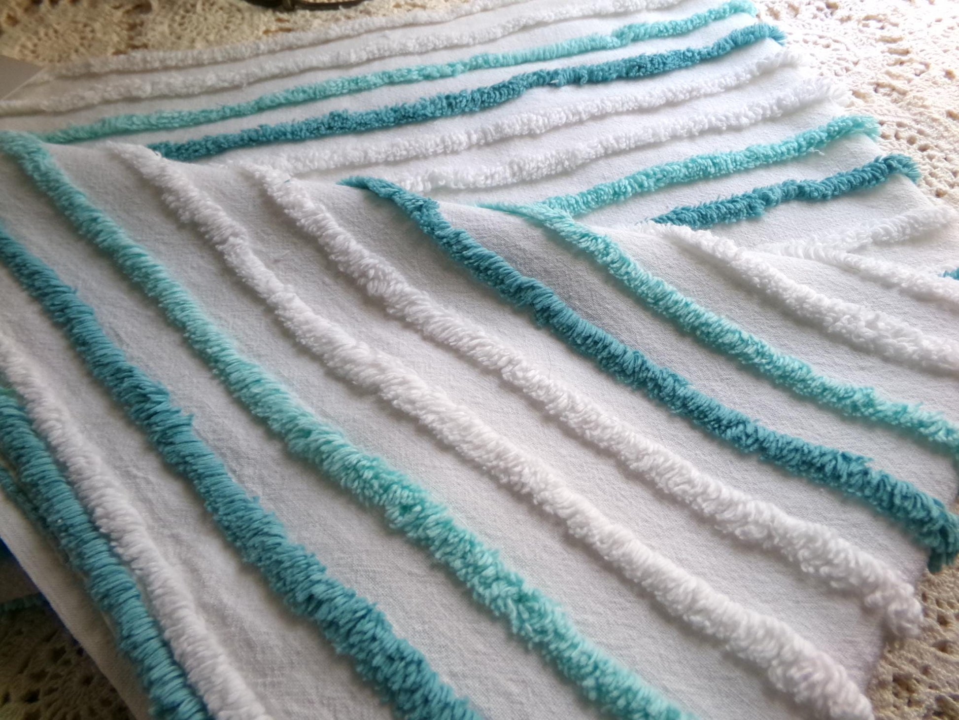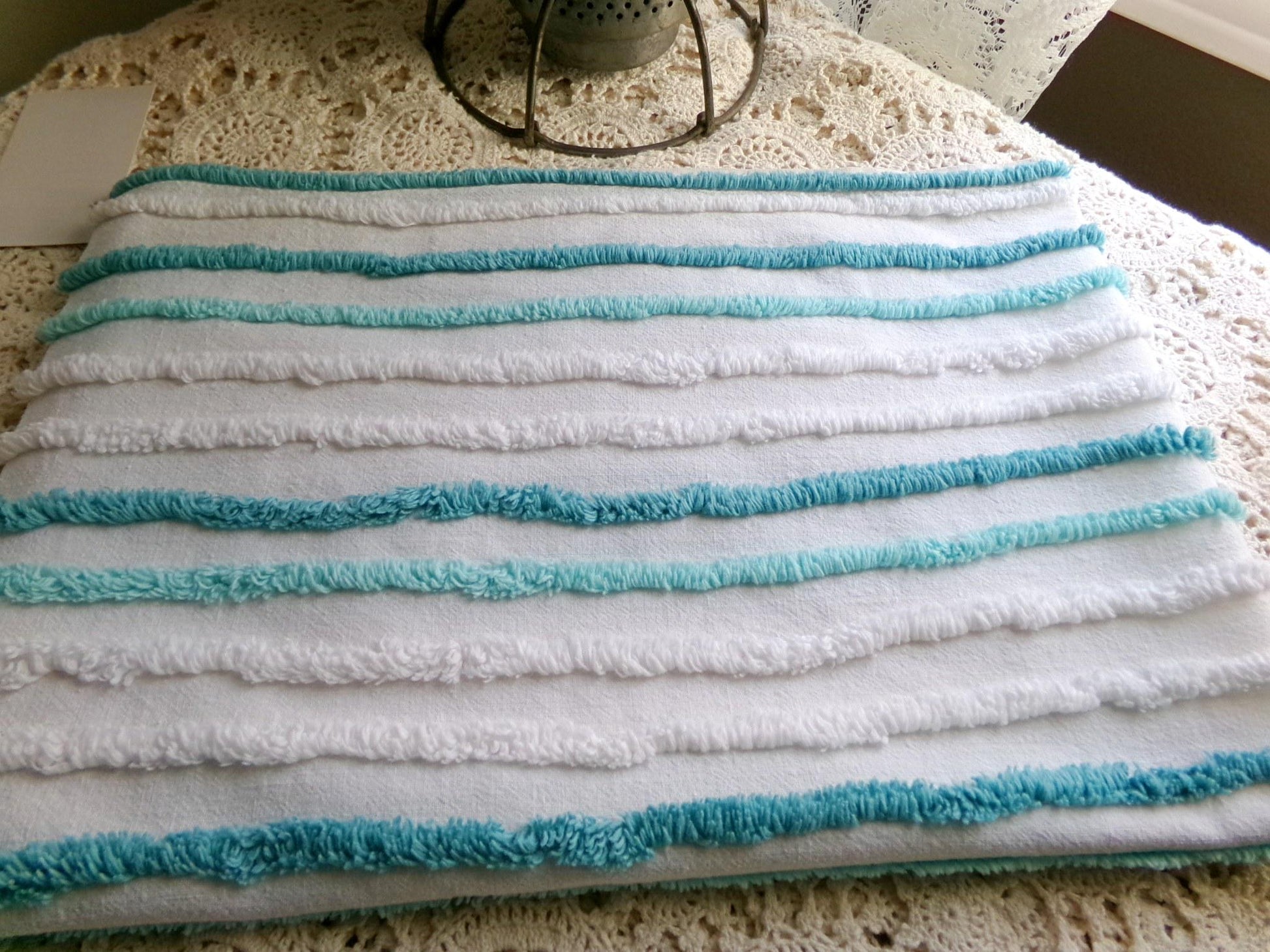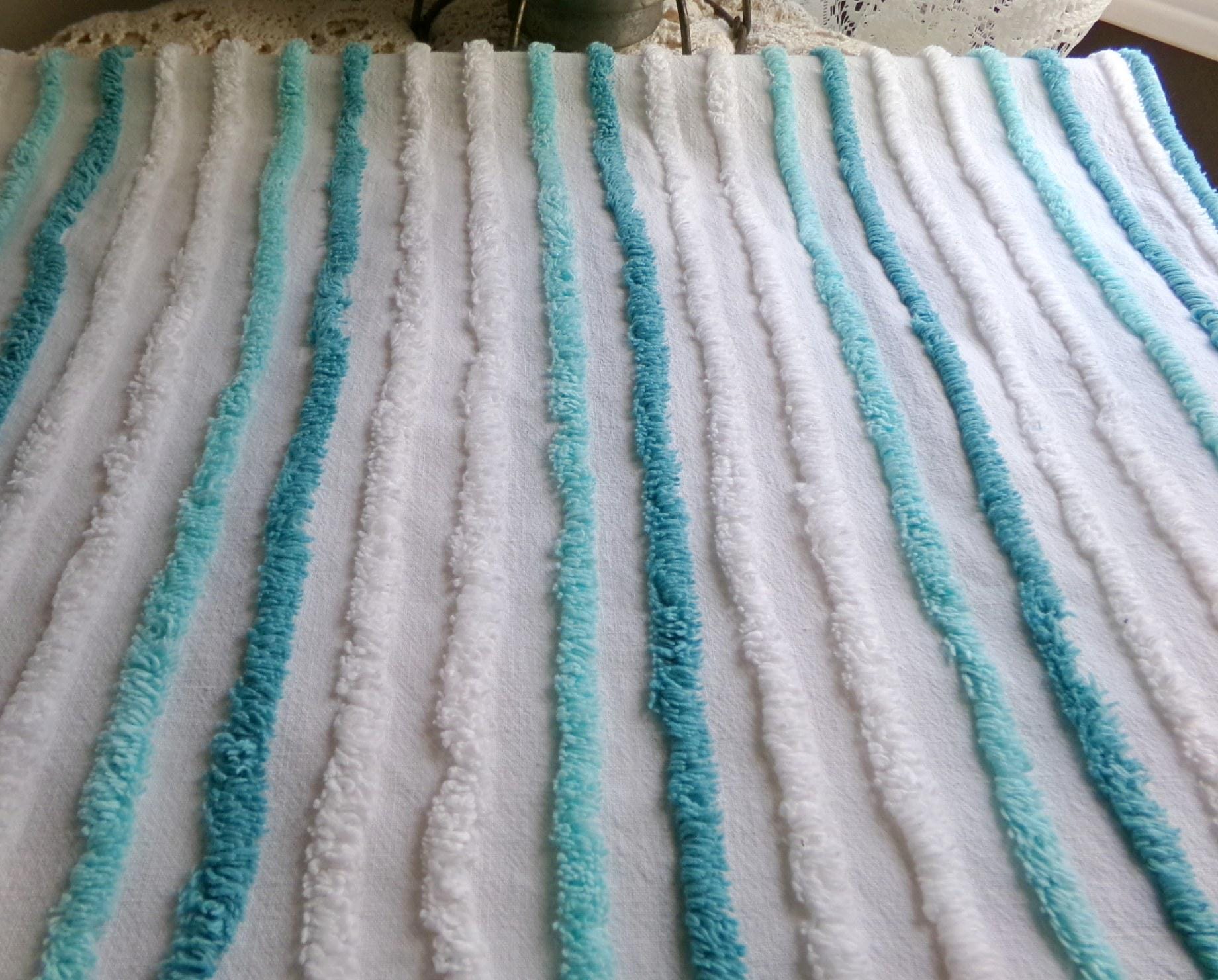 Inspire your next project with this beachy cool striped chenille fabric piece. It features simple stripes in aqua, teal and white, on a white background. Easy to incorporate beach chic vibes into any design.100% cotton, lightweight. Measures approx 18" x 24" inches.