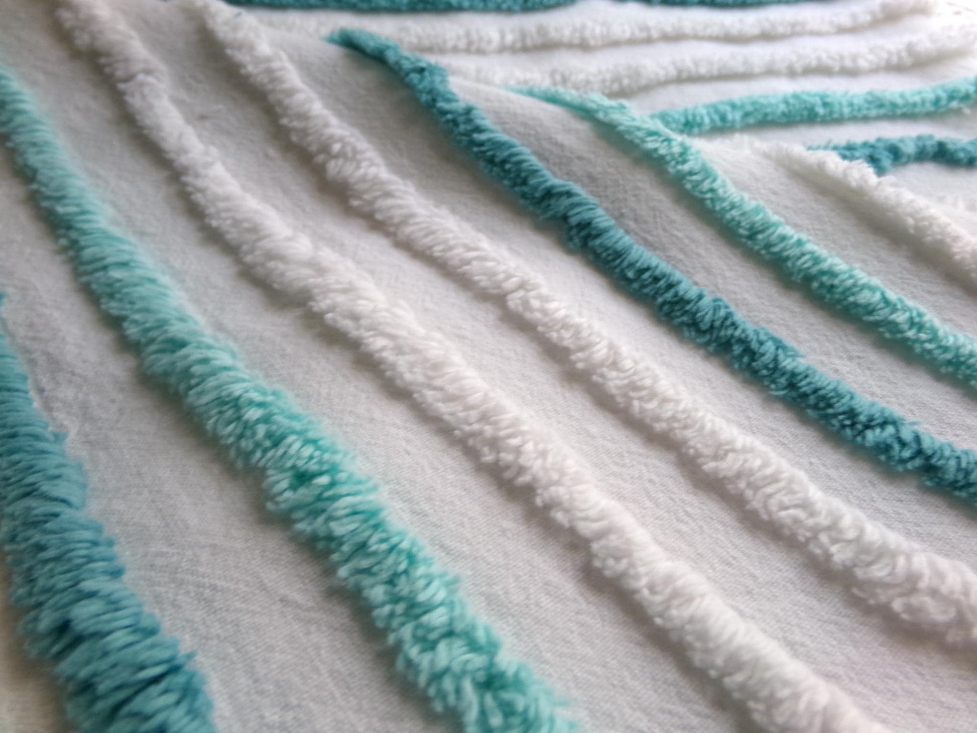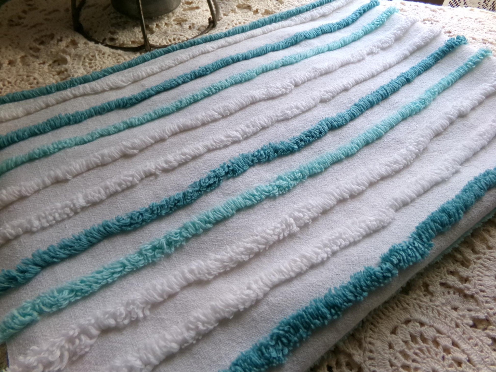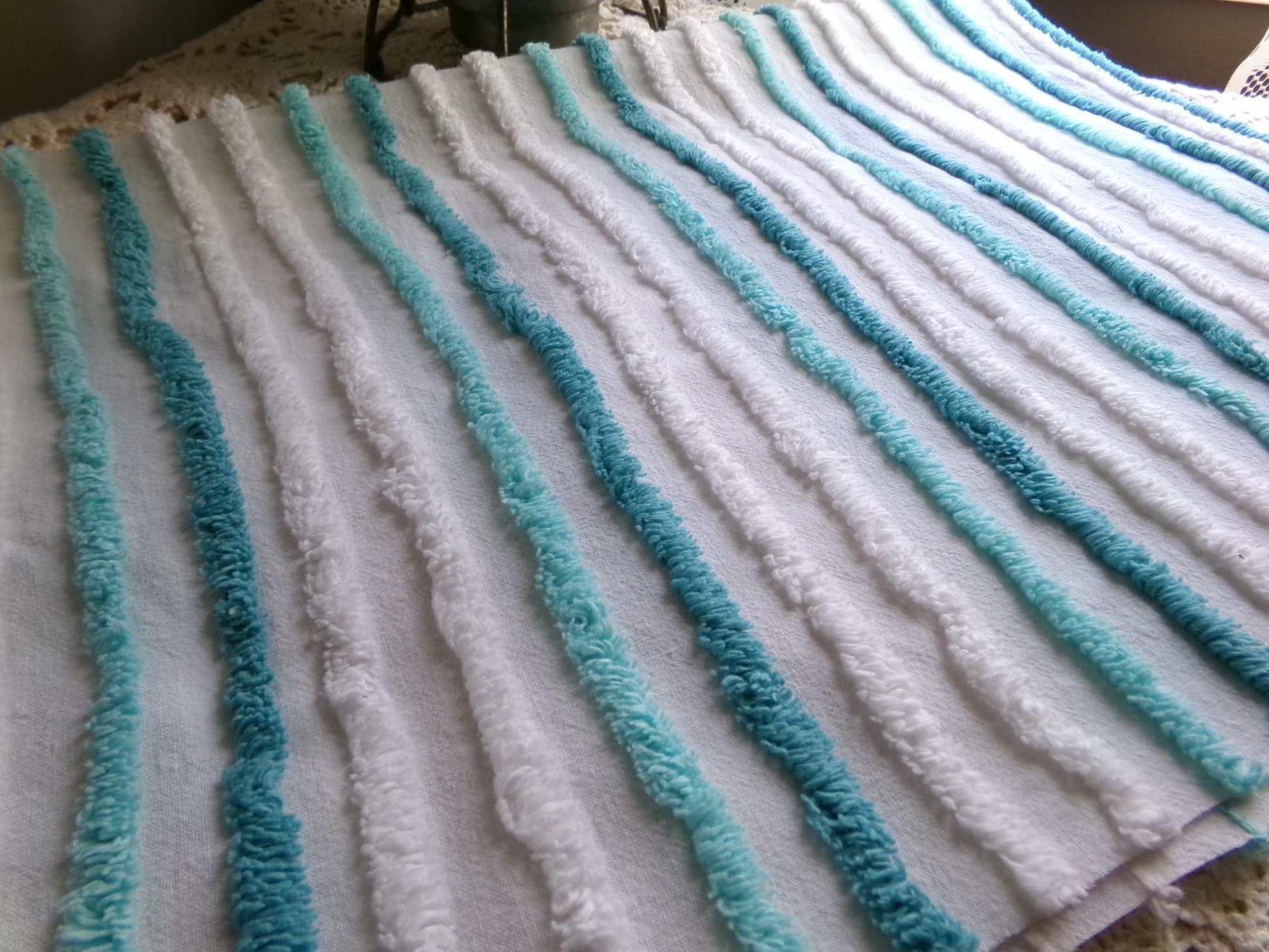 Inspire your next project with this beachy cool striped chenille fabric piece. It features simple stripes in aqua, teal and white, on a white background. Easy to incorporate beach chic vibes into any design.100% cotton, lightweight. Measures approx 18" x 24" inches.
