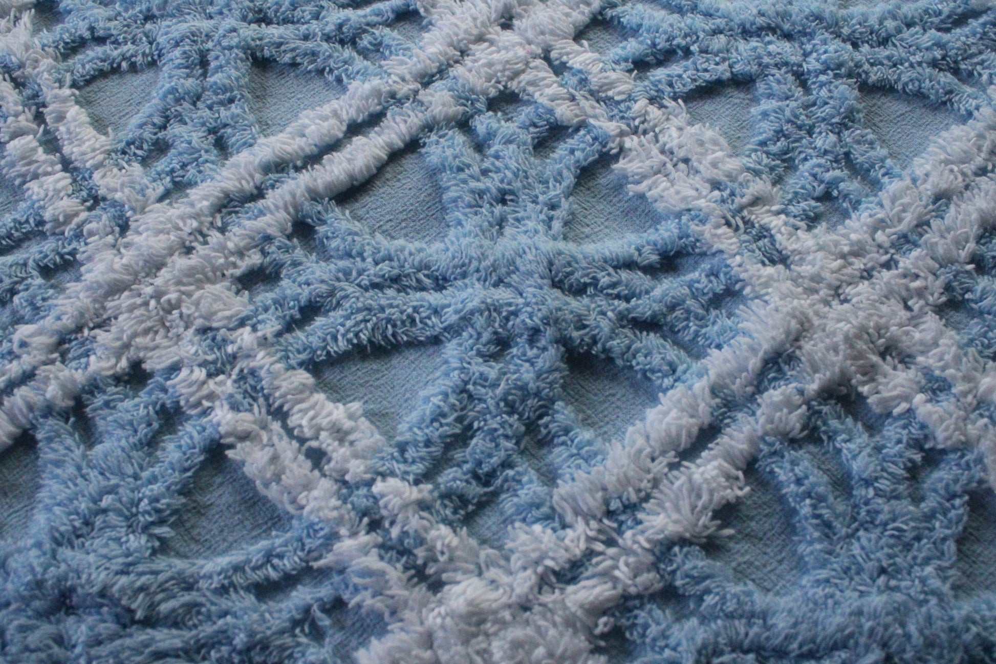 Breezy coastal chic vintage style chenille fabric in a traditional tufted wedding ring geometric design...Versatile enough to use in anything from chenille patchwork quilts to DIY pillows & more.Measures about 21" x 22" inches. 100% cotton; easy to sew with.