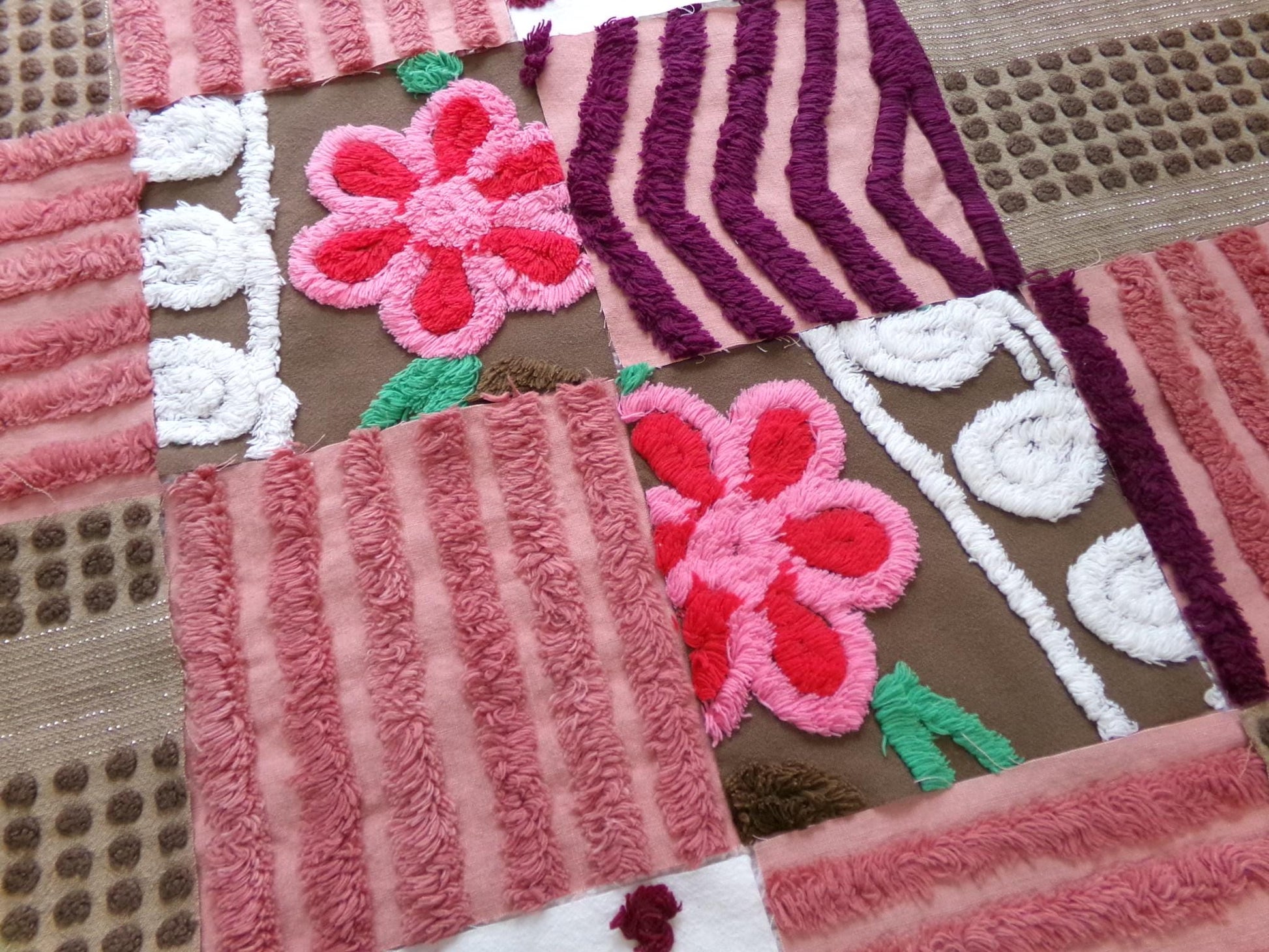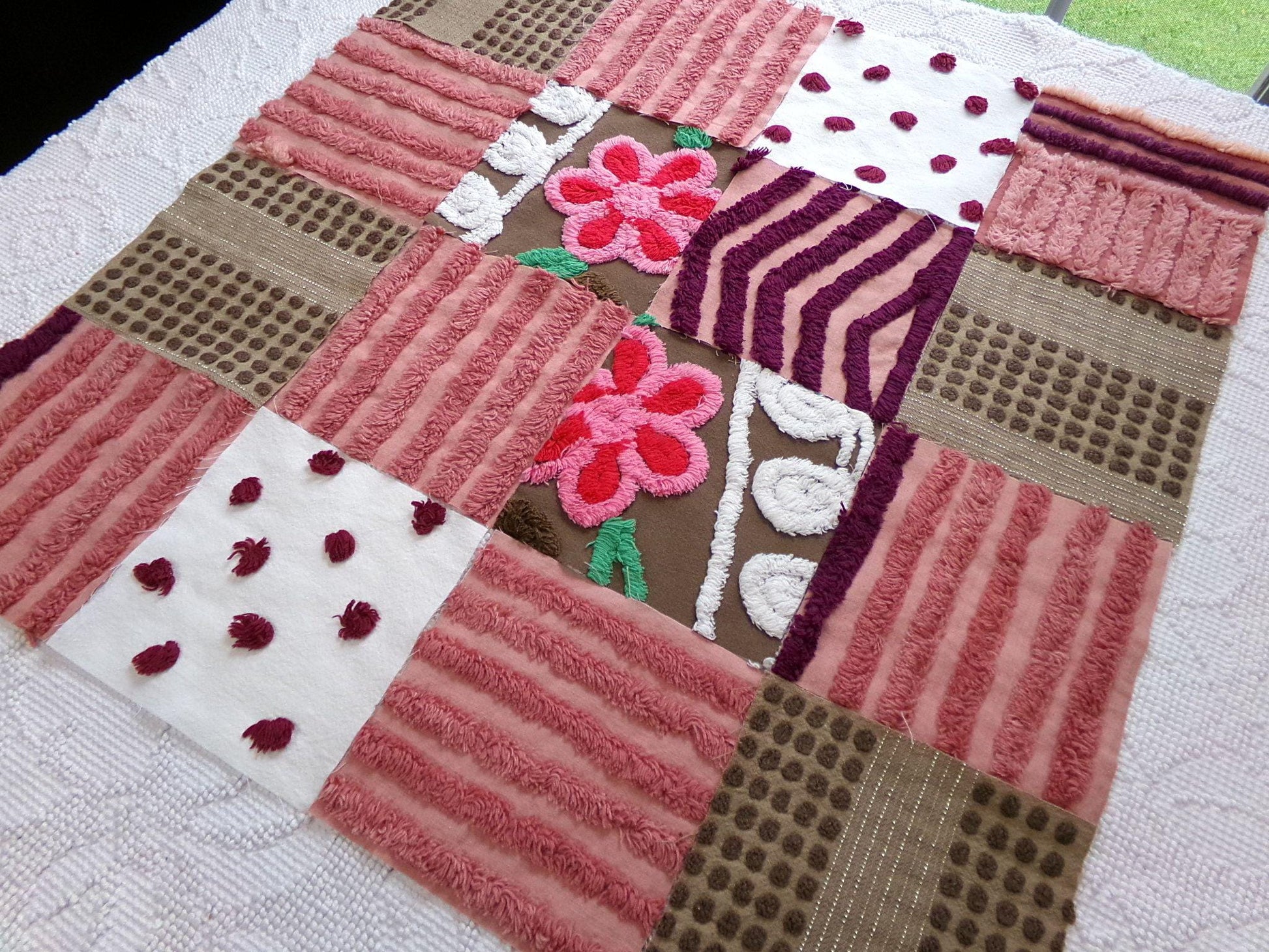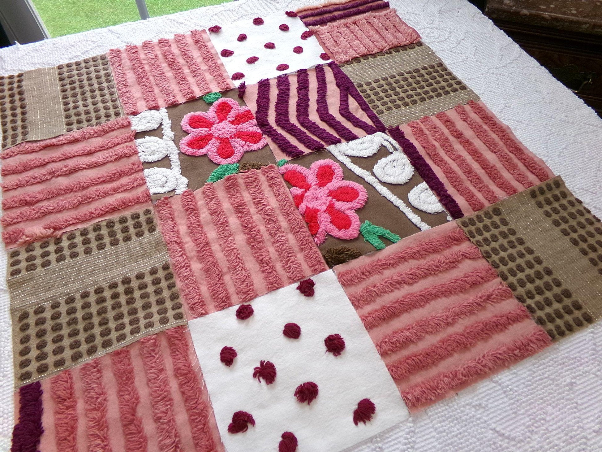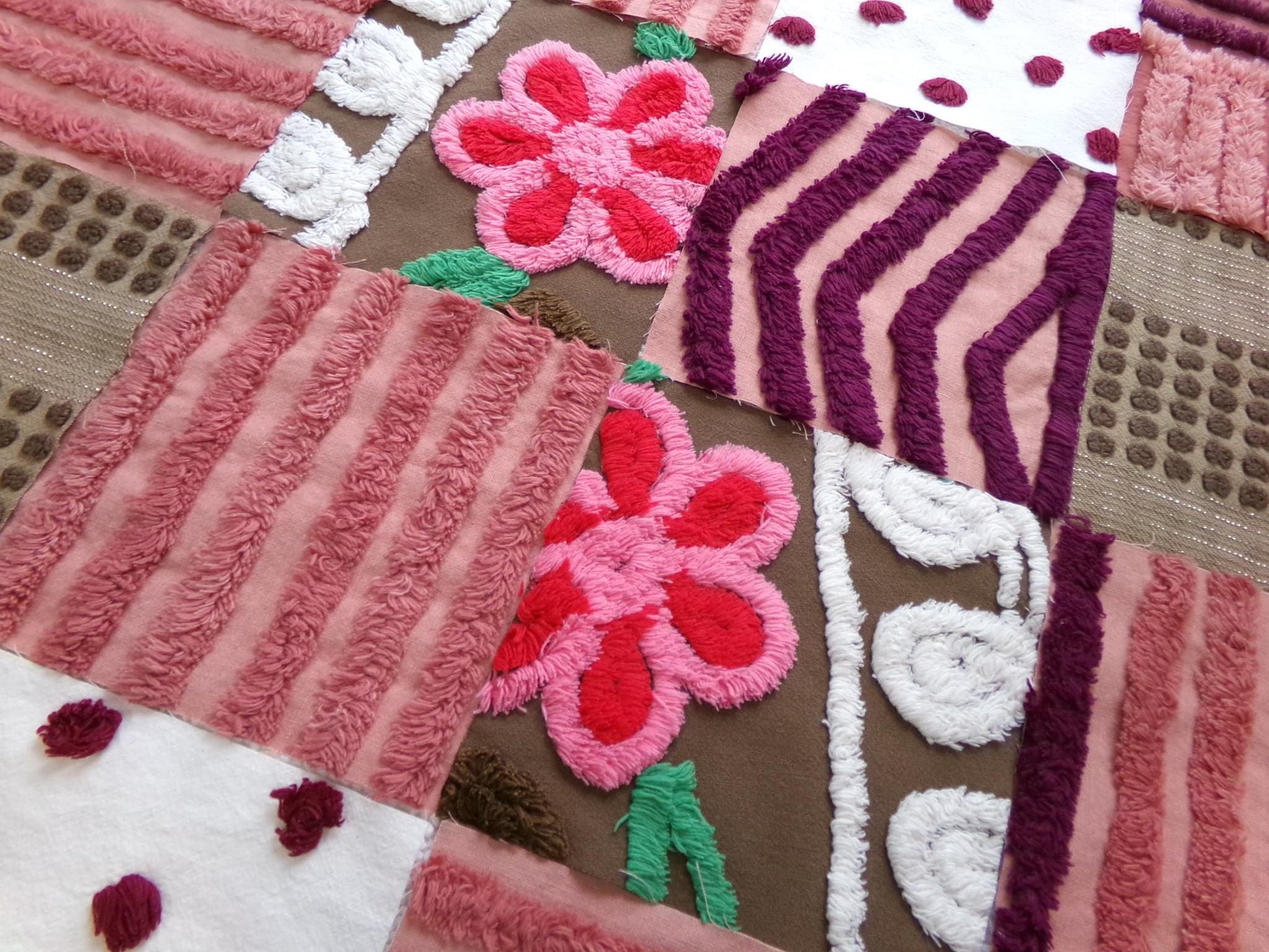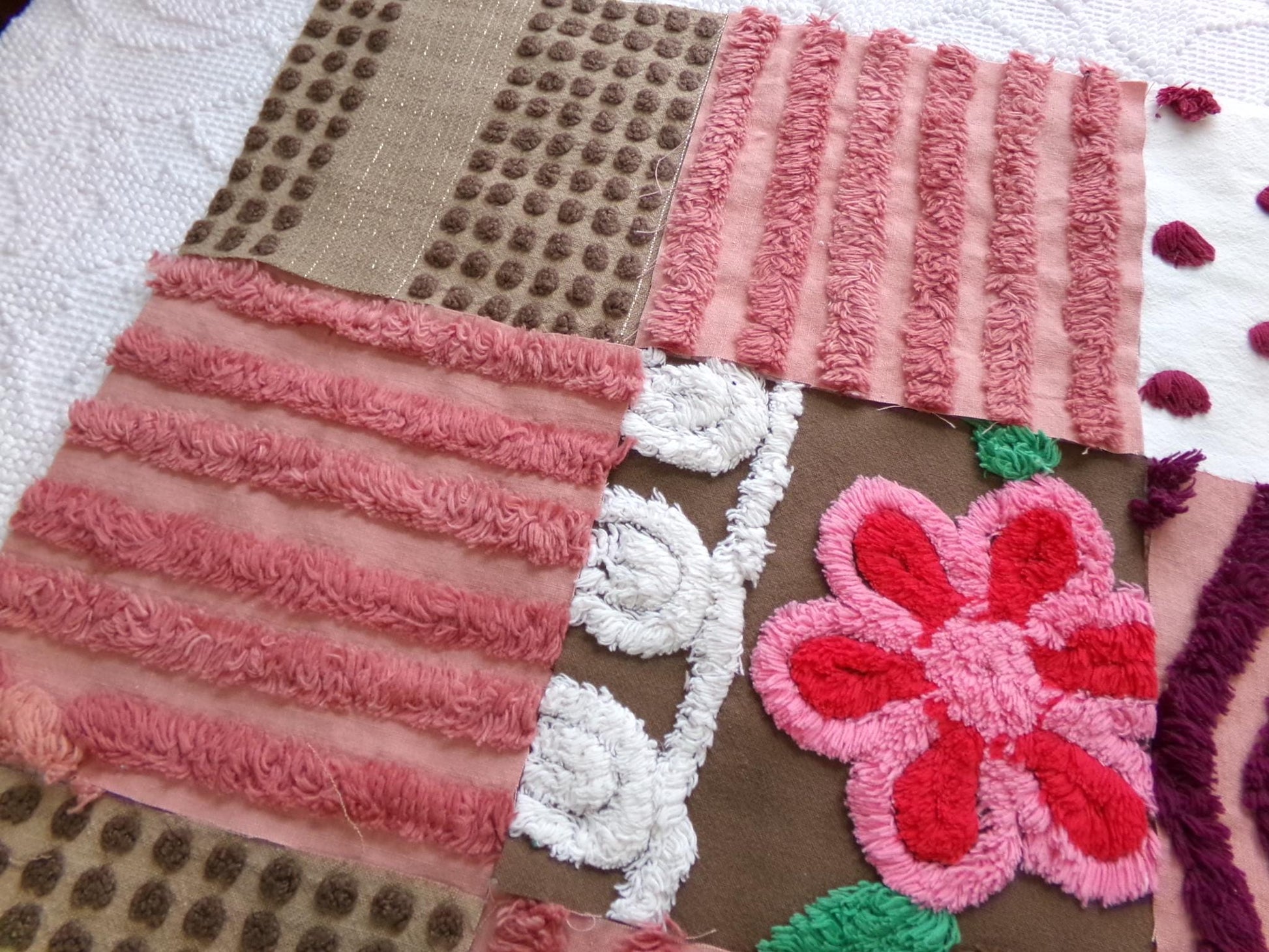 How will you upcycle this unique set of vintage chenille fabric squares? I've selected some delicious shades of chocolate brown and frosting pink-mauve, all with great 3D texture for your crafting pleasure.You'll receive a total of 16 fabric squares measuring about 6" x 6" each. This is a OOAK set & cannot be duplicated due to the unique pattern placement.