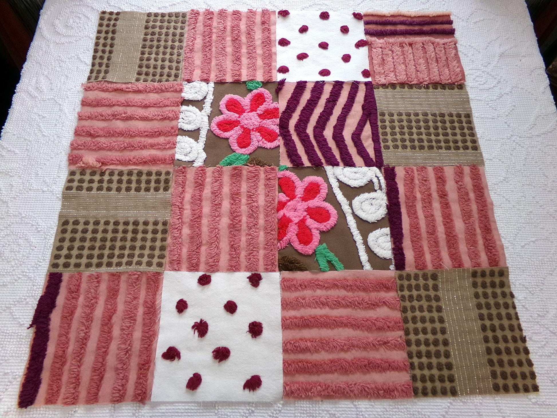 This assorted premium mix of fabric squares has been rotary cut by hand from original vintage chenille bedspreads. All are cotton or cotton blend. Ideal in DIY pillows & handmade quilts.