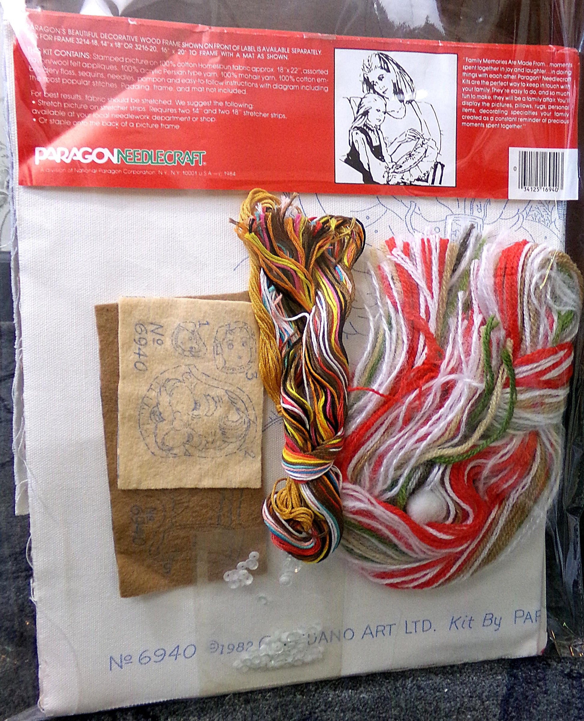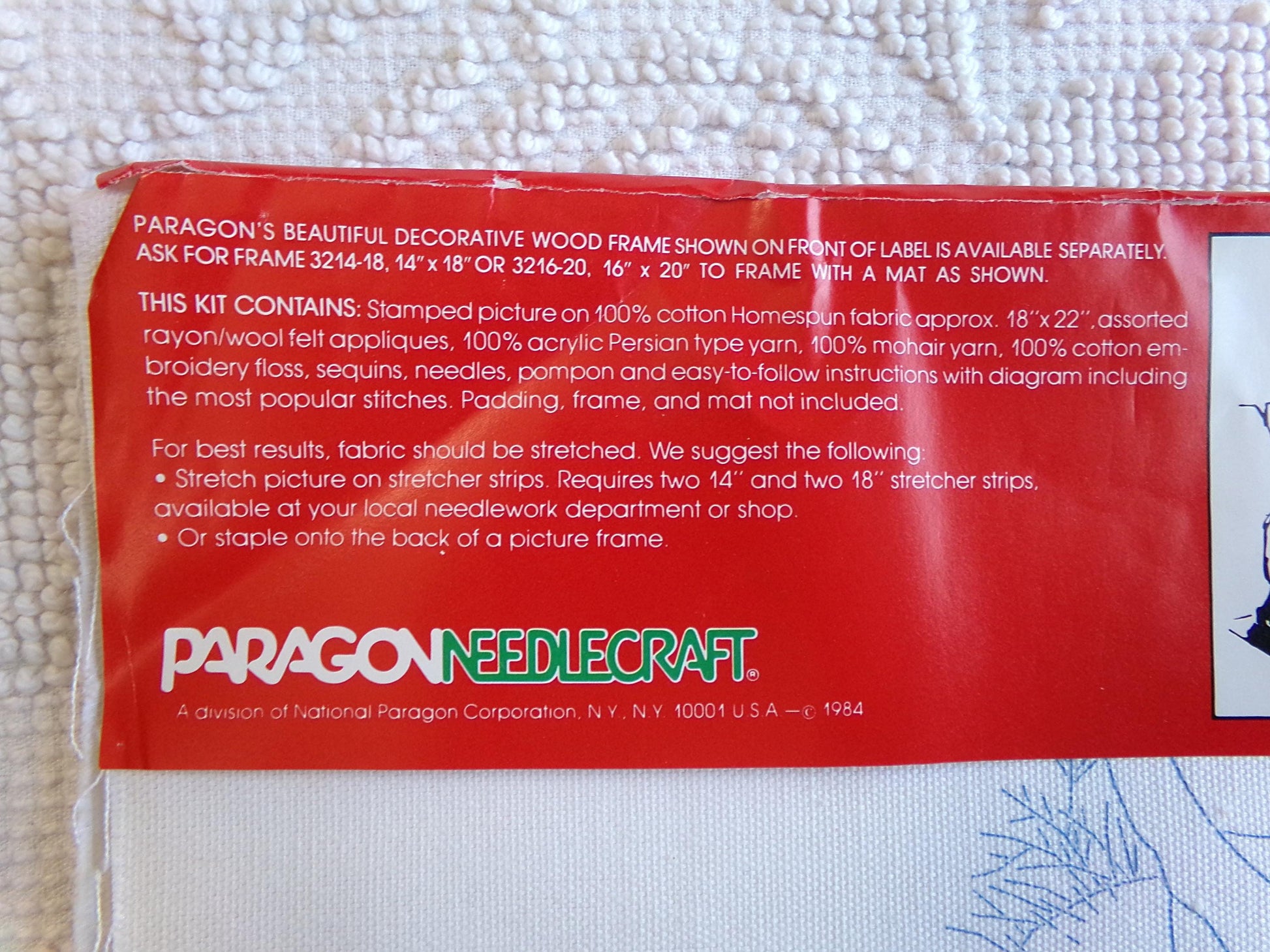 CHRISTMAS EVE...with this Jolly Santa bringing joy to all. You'll enjoy stitching this exquisite picture designed by renowned artist and illustrator Joseph Giordano. The fine facial detail is captured with a lightly padded felt applique and embroidery floss. The stitching is adorned with sequins.• Paragon Needlecraft Crewel kit # 6940