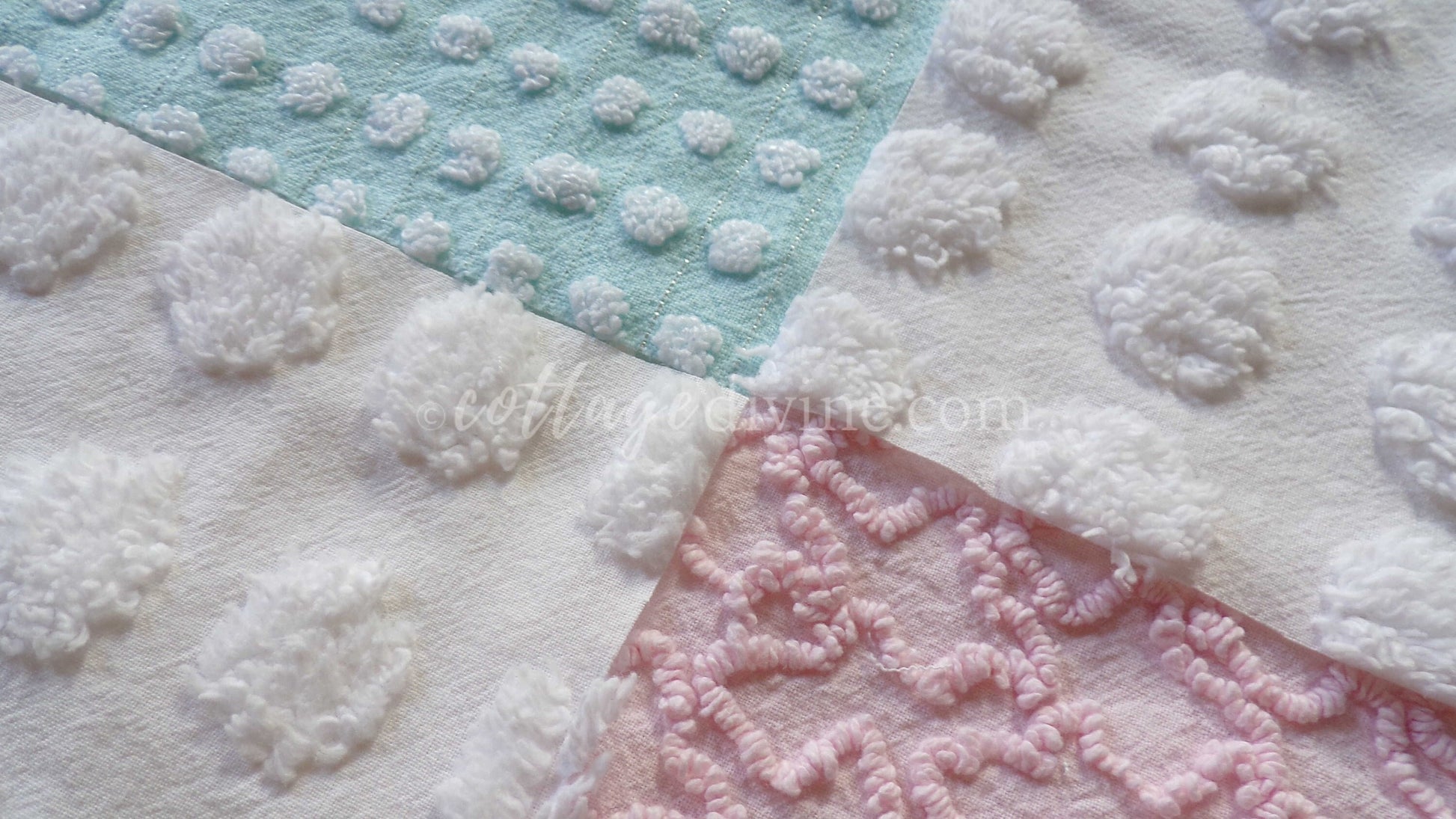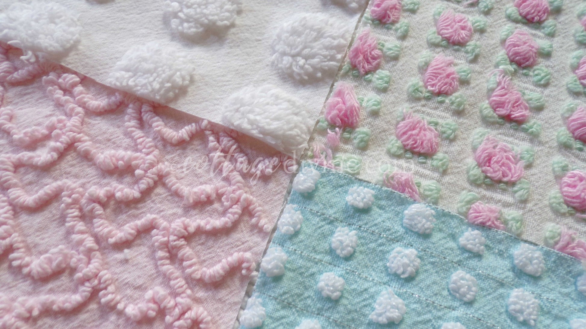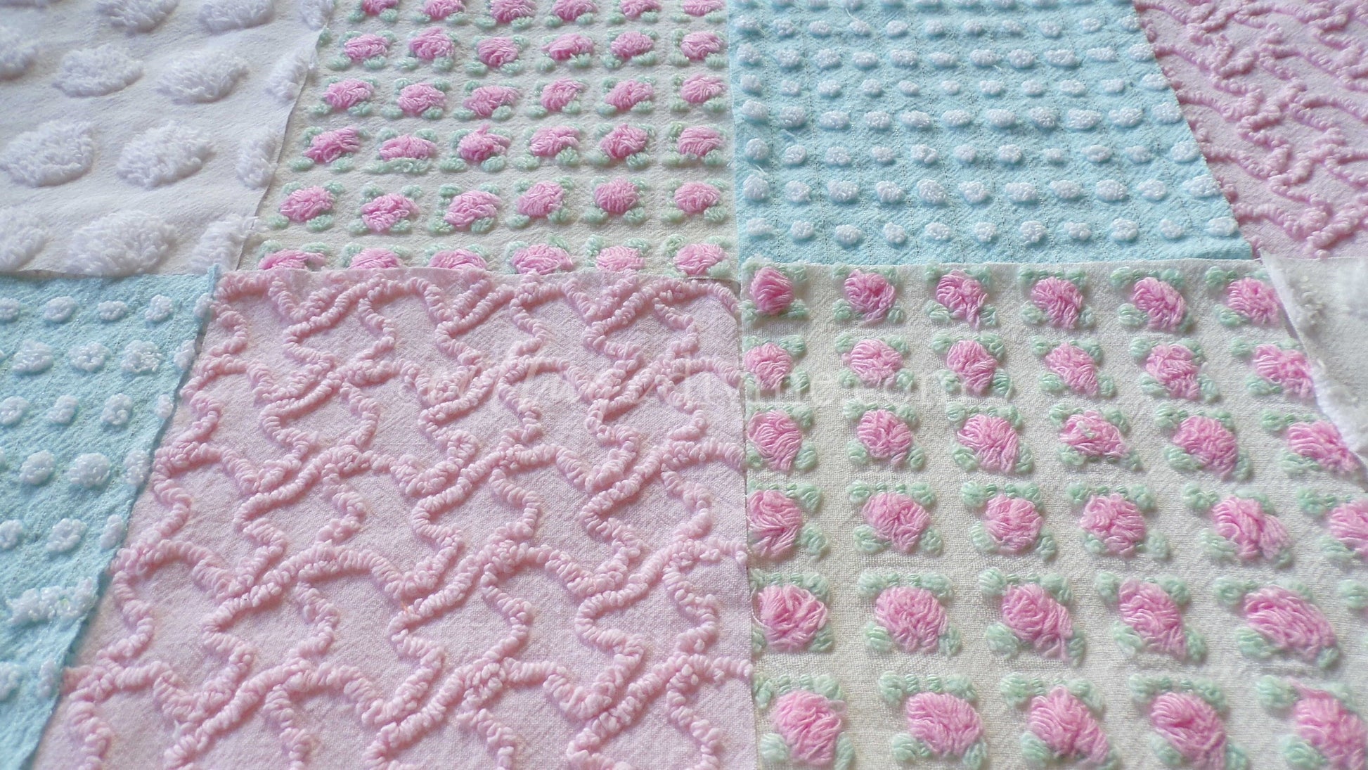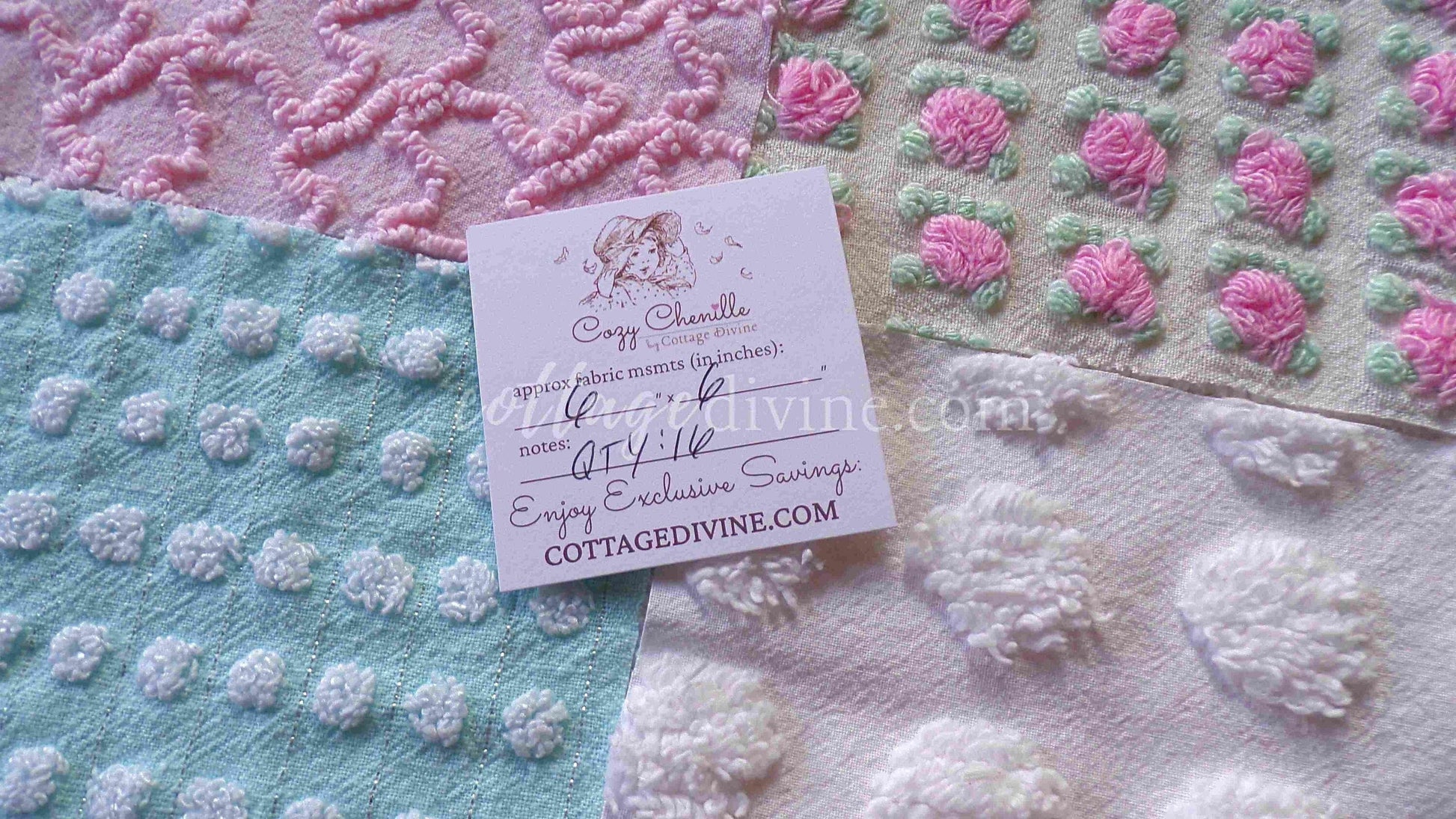 If your special little project needs an instant infusion of classic cottage chic, these pretty quilt squares could be a perfect choice..::total qty: 16 chenille quilt squares::size: 6" x 6" rotary cut