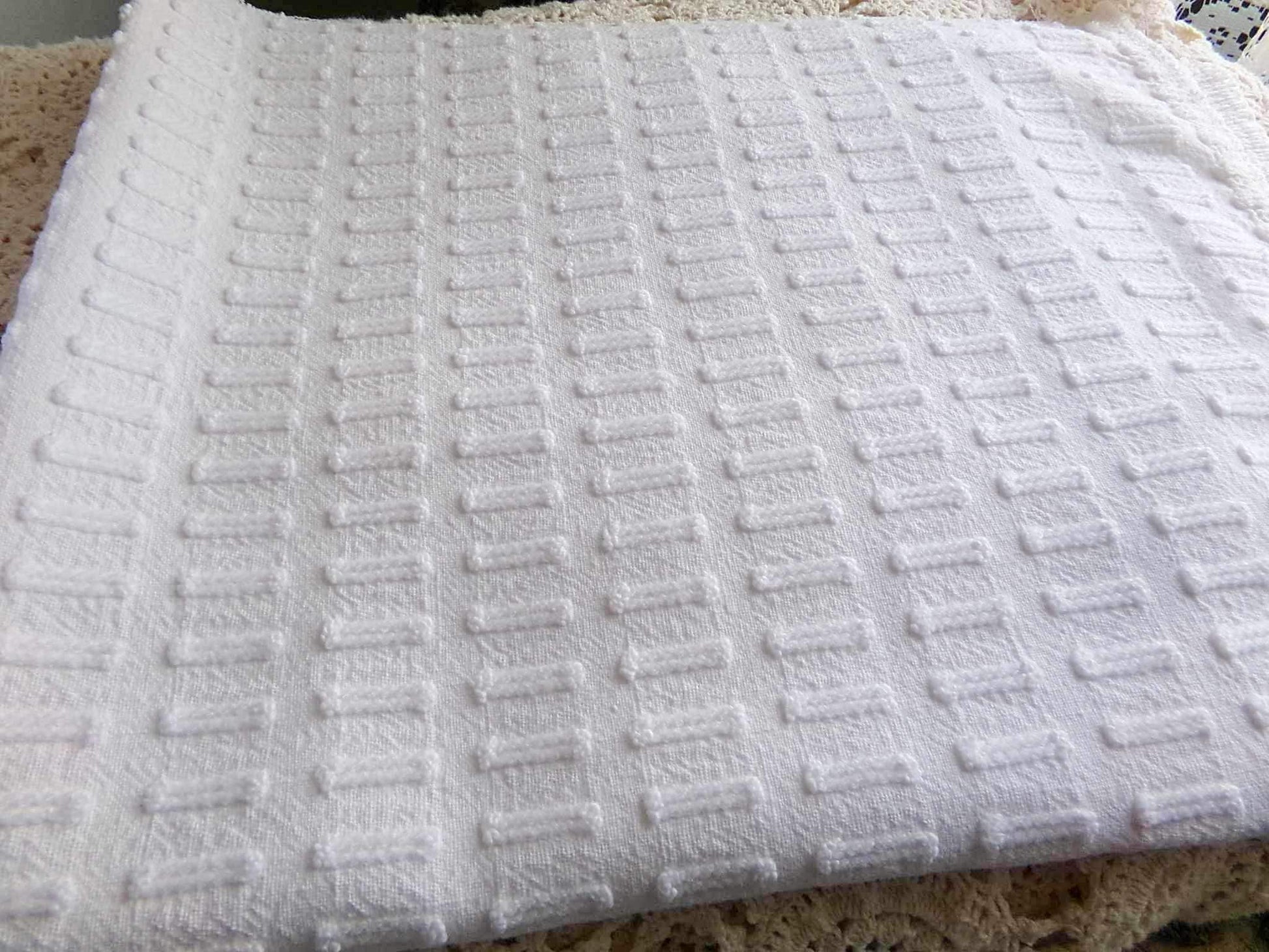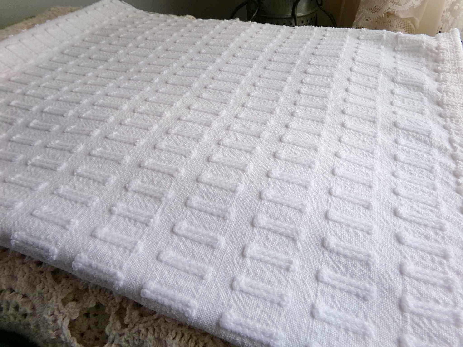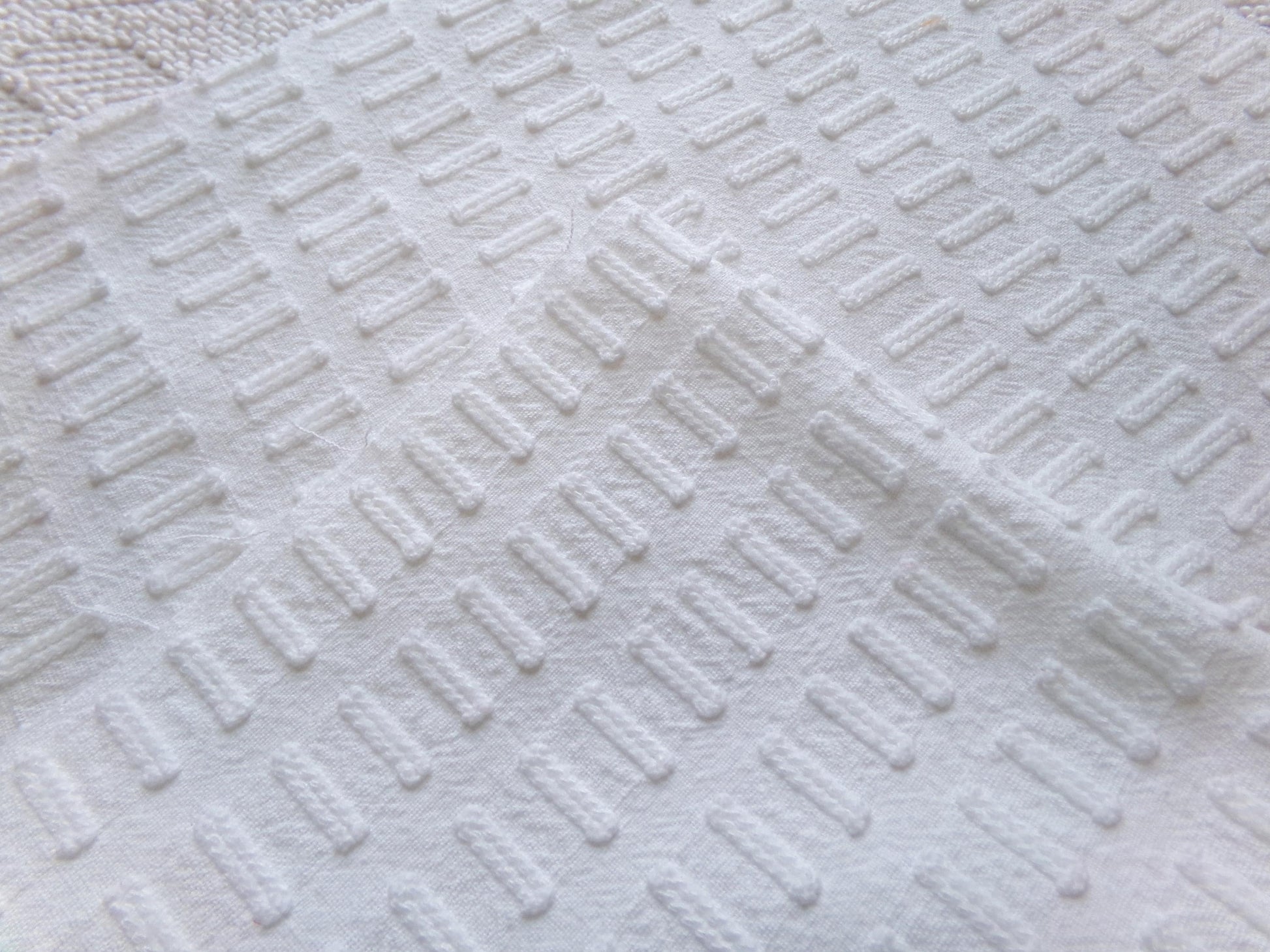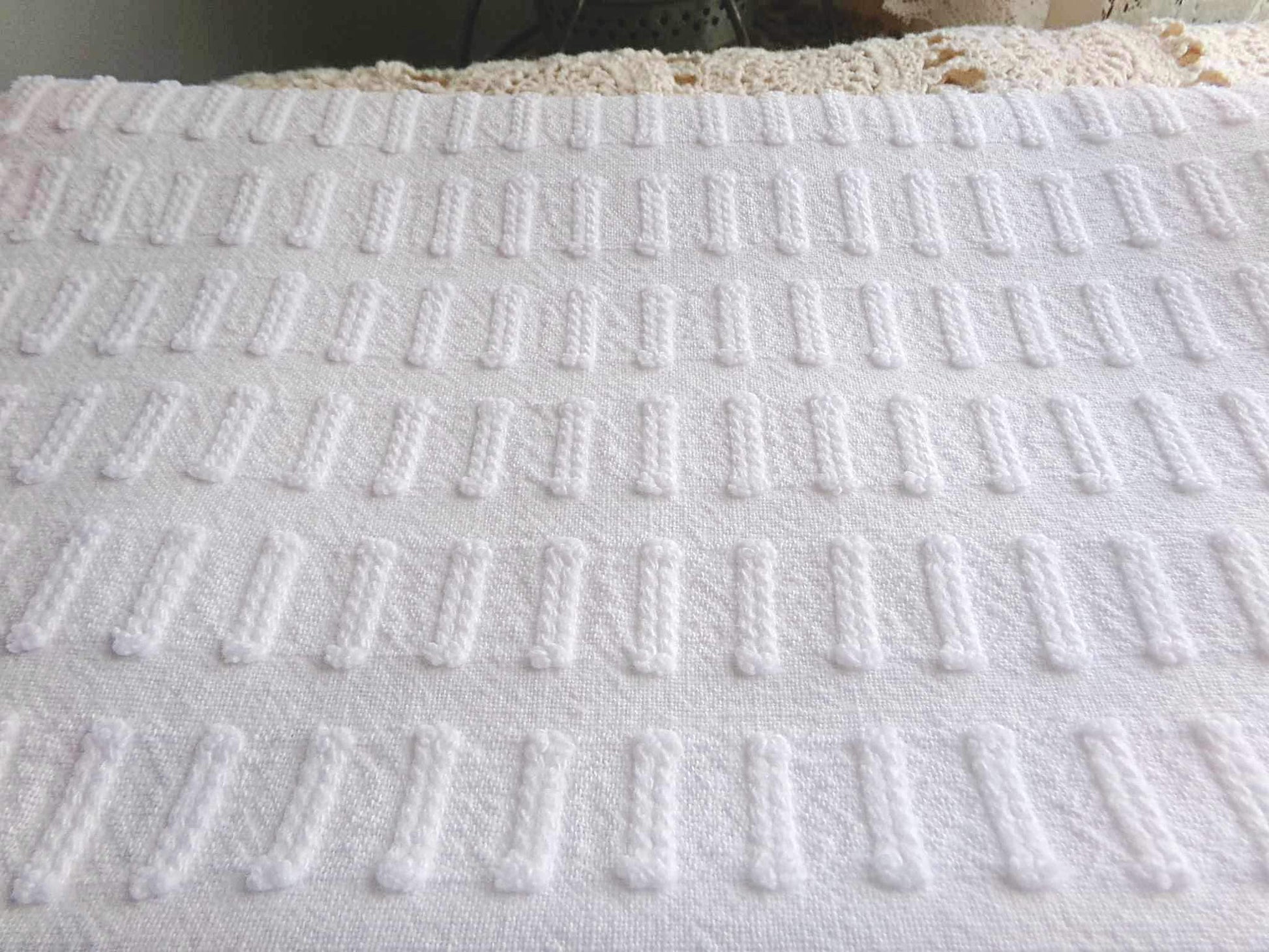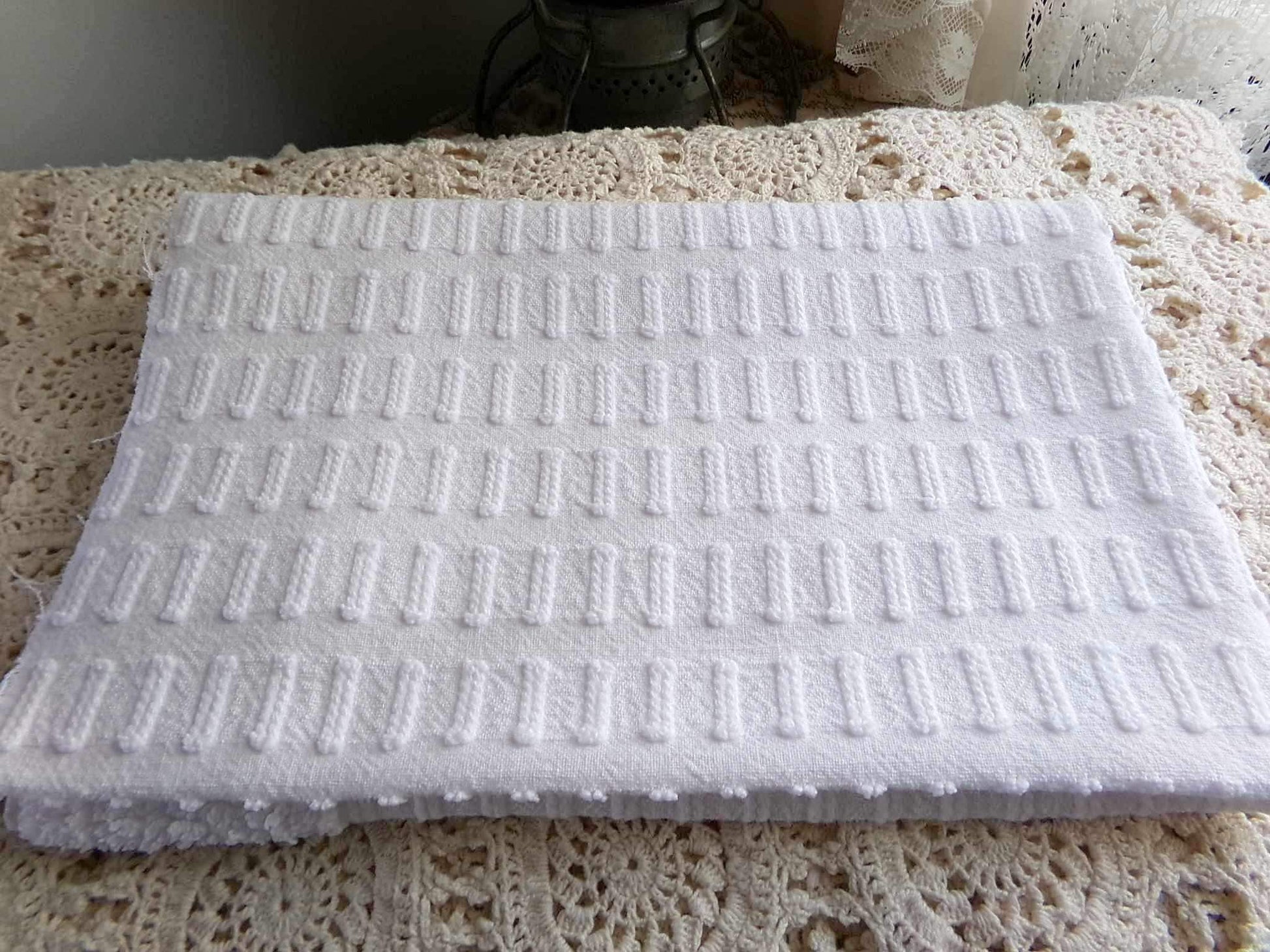 see more, cottagedivine.comClean crisp white vintage chenille fabric in a classic "buttonhole" pattern. This sewing material presents a great opportunity to add light texture to your project without overpowering it.