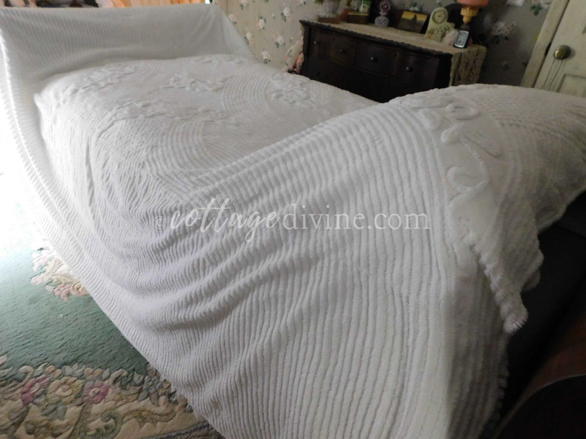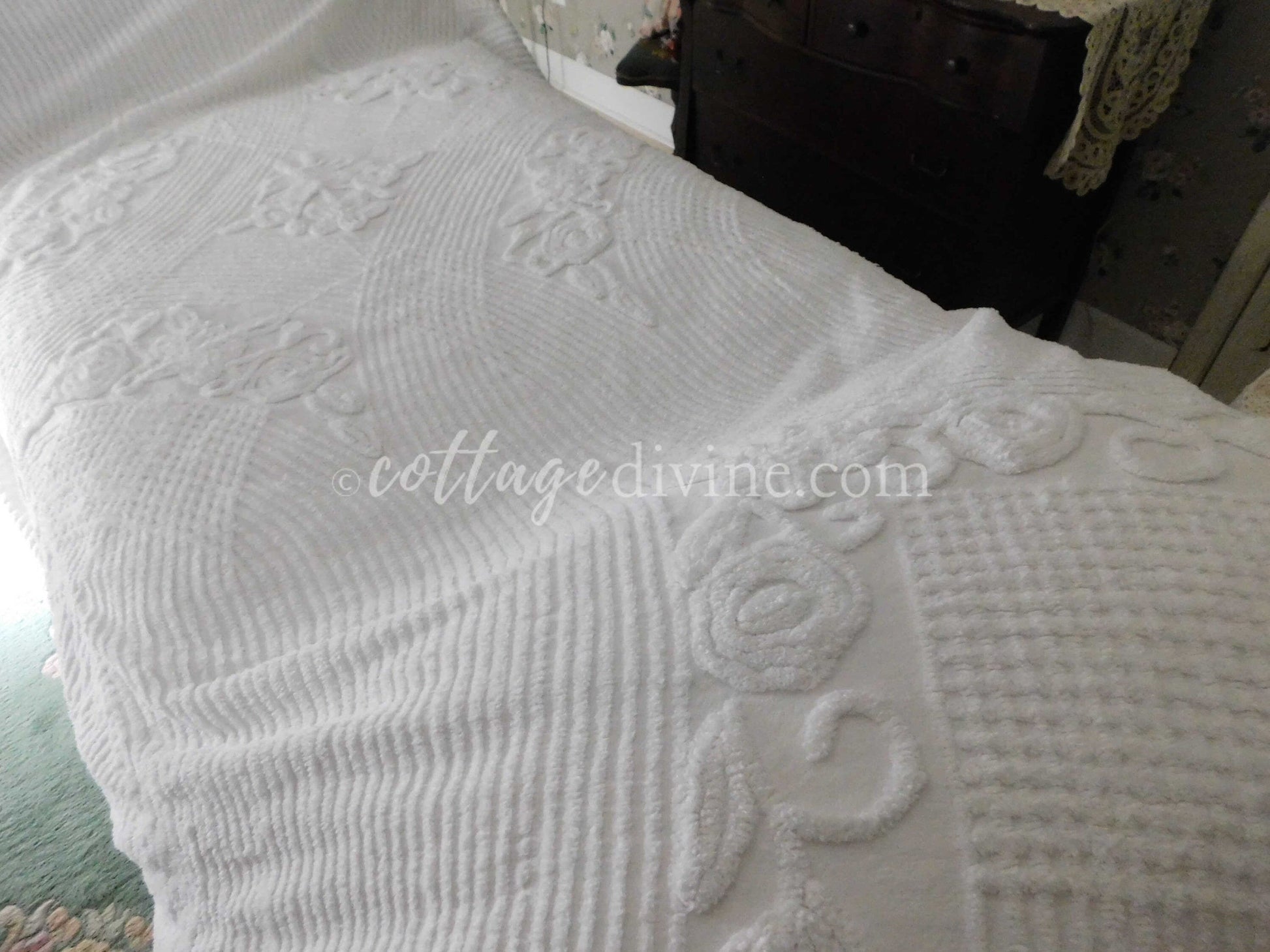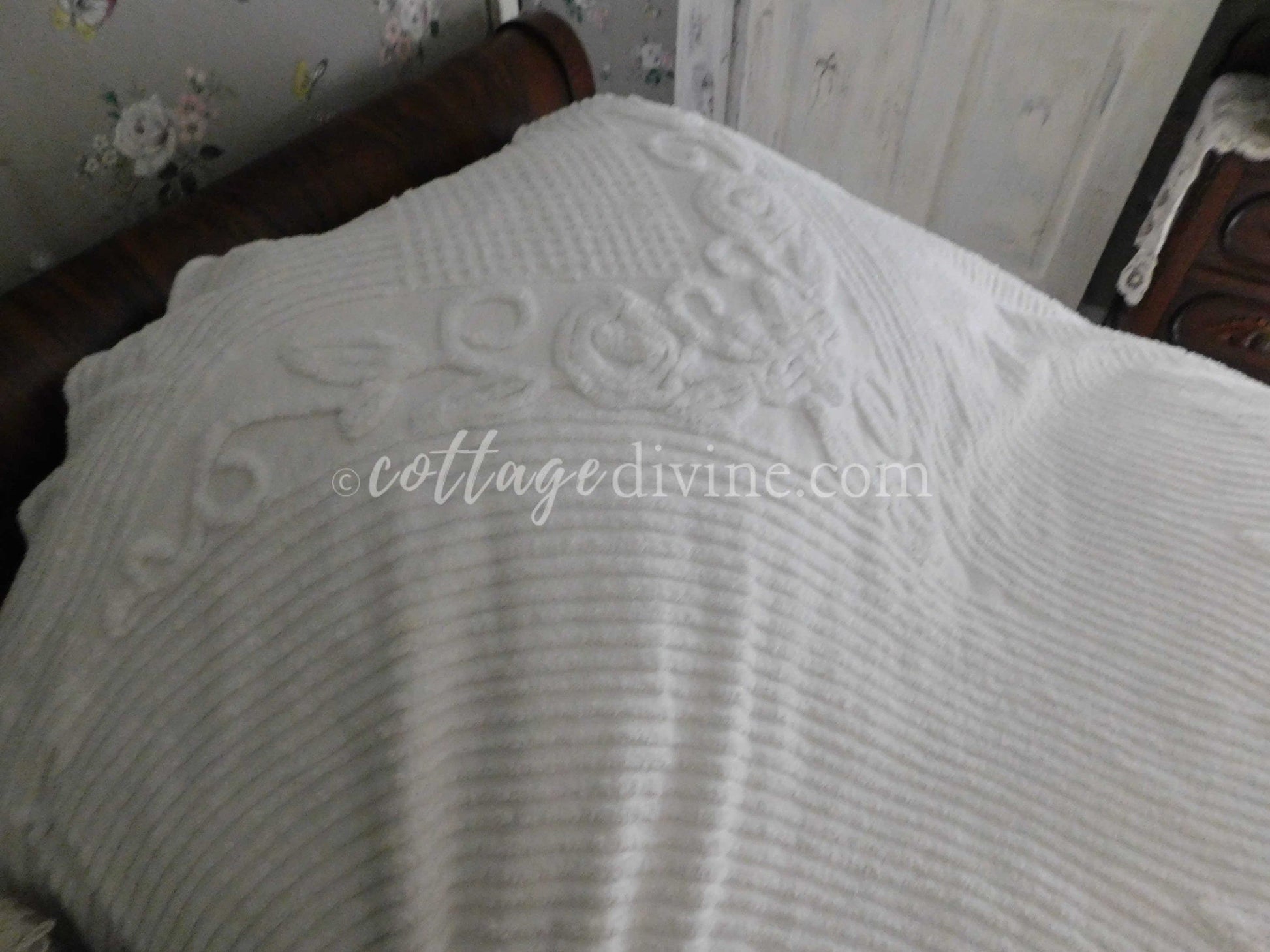 Shabby chic. Cottage style. Farmhouse chic. The Cottage Divine specializes in a blend of all three, emphasizing a curated selection of chenille bedspreads, robes, fabric, quilt squares & moreWhy vintage chenille? Because of its availability in an endless array of colors & textures...its unique ability to adapt to both vintage and modern settings...Wherever it is incorporated, chenille infuses an unmatched warmth & nostalgiaOh, one little mention: once it enchants you, a single piece of chenille will quickly multiply - and you'll never quite have enough......