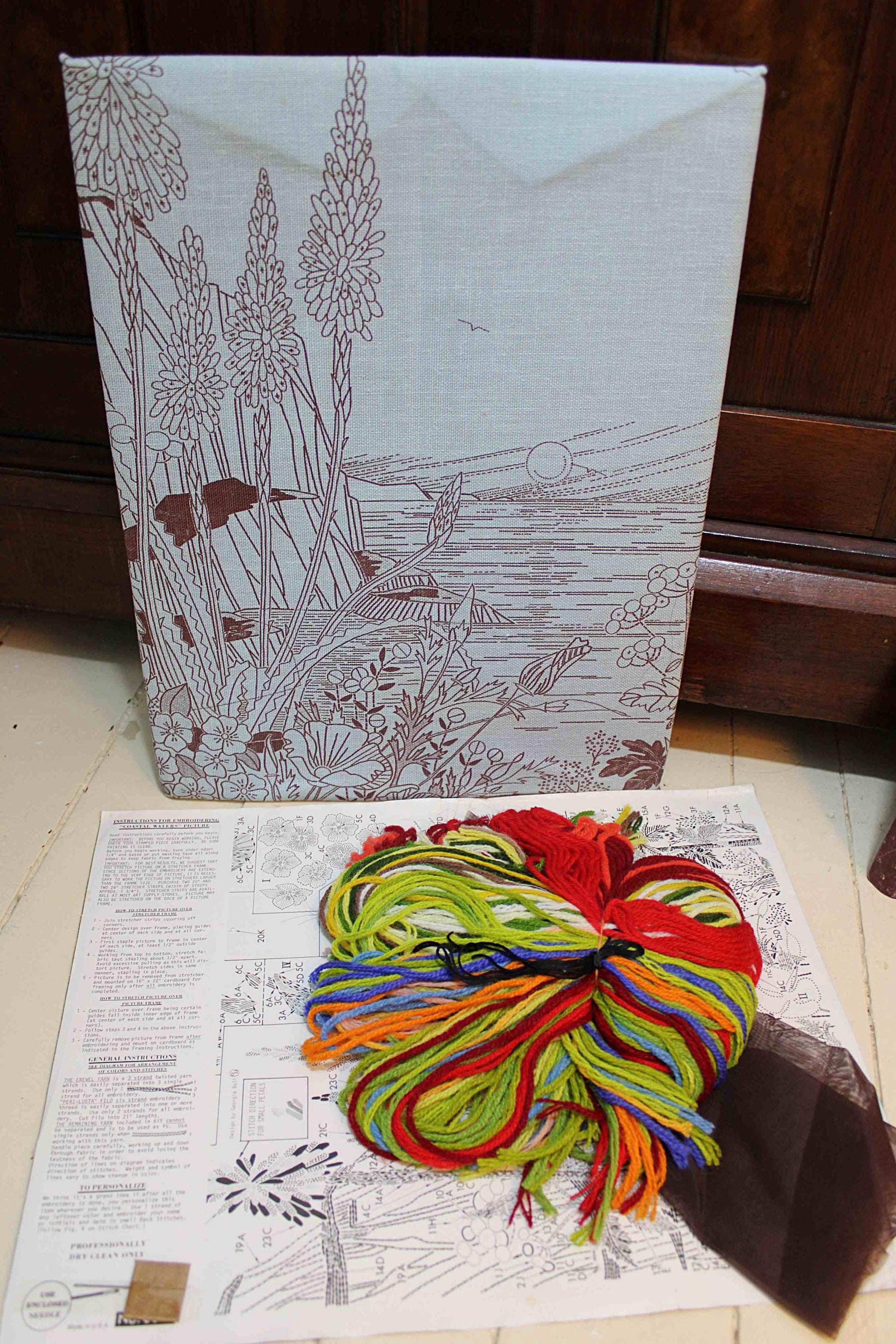 -This is a vintage embroidery kit that requires completion, not a finished piece.