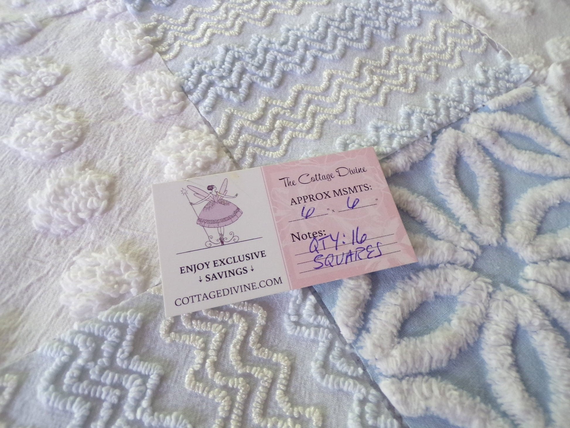 ::total qty: 16 chenille quilt squares::size: 6" x 6" rotary cut