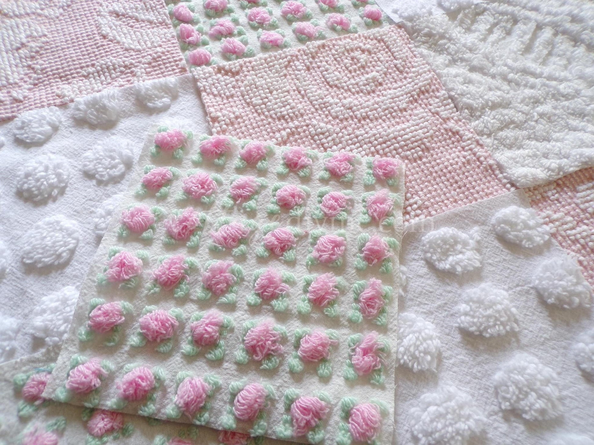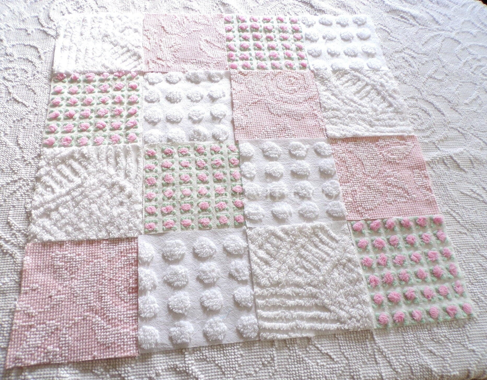 ::total qty: 16 chenille quilt squares::size: 6" x 6" rotary cut