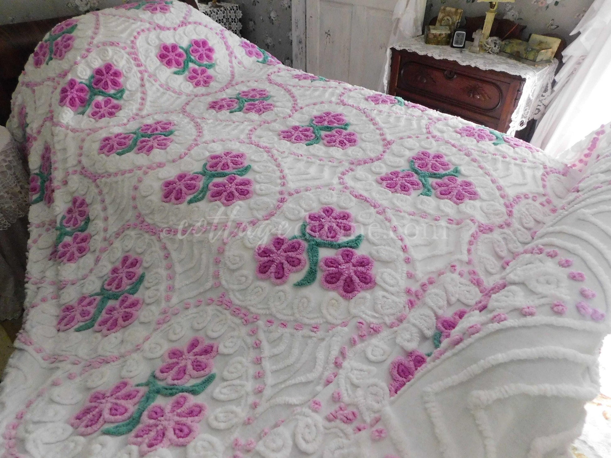 Shabby chic. Cottage style. Farmhouse chic. The Cottage Divine specializes in a blend of all three, emphasizing a curated selection of chenille bedspreads, robes, fabric, quilt squares & moreWhy vintage chenille? Because of its availability in an endless array of colors & textures...its unique ability to adapt to both vintage and modern settings...Wherever it is incorporated, chenille infuses an unmatched warmth & nostalgiaOh, one little mention: once it enchants you, a single piece of chenille will quickly multiply - and you'll never quite have enough......