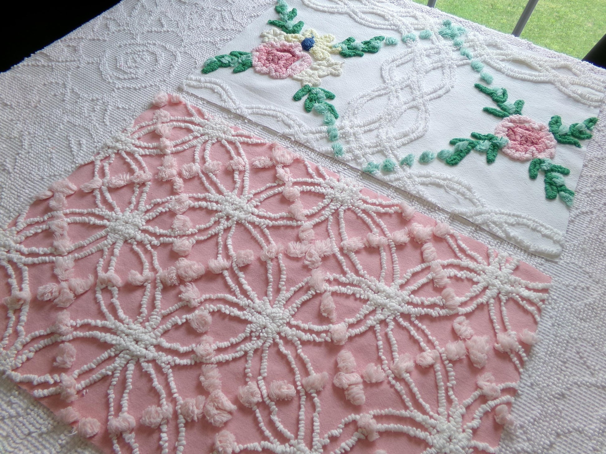 • 2 premium vintage chenille fabric pieces (NOT a whole bedspread)