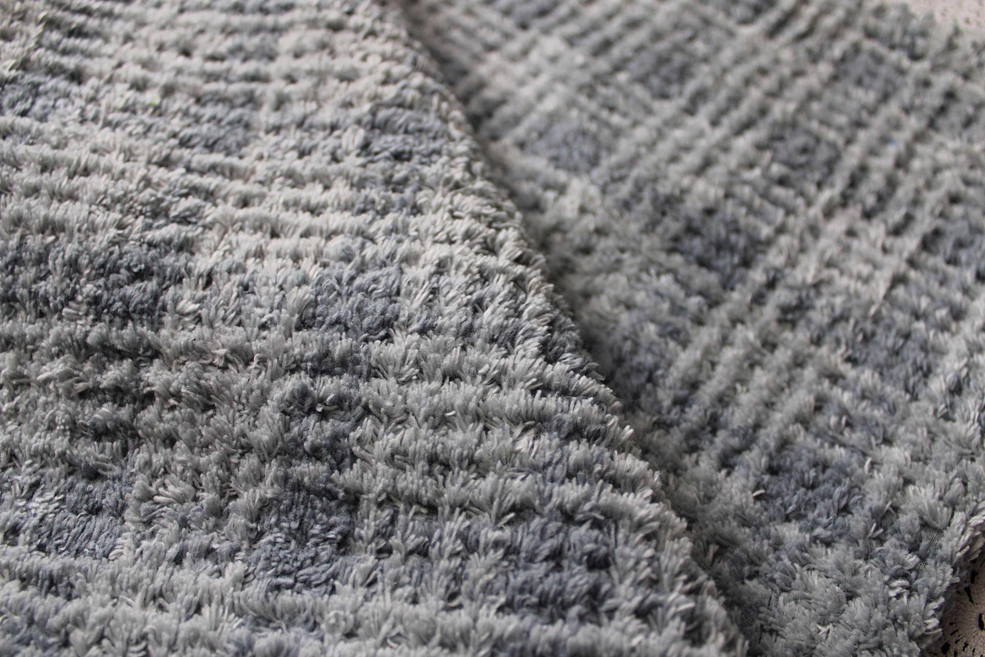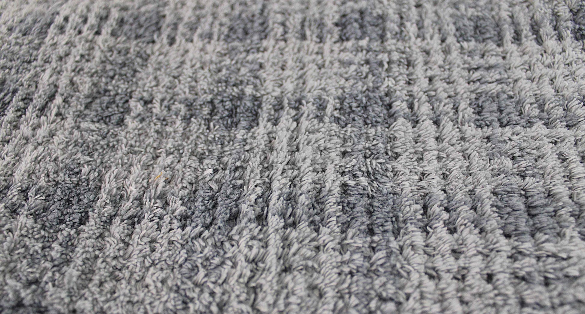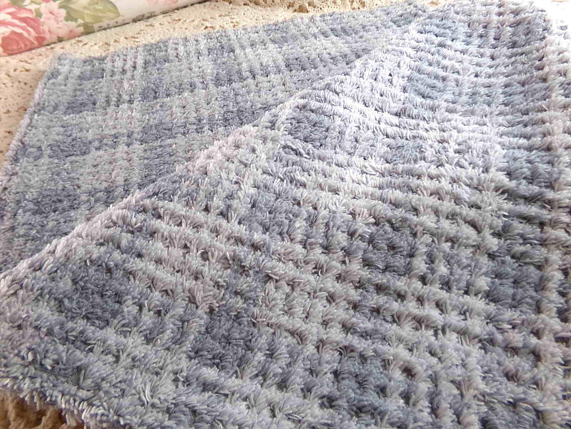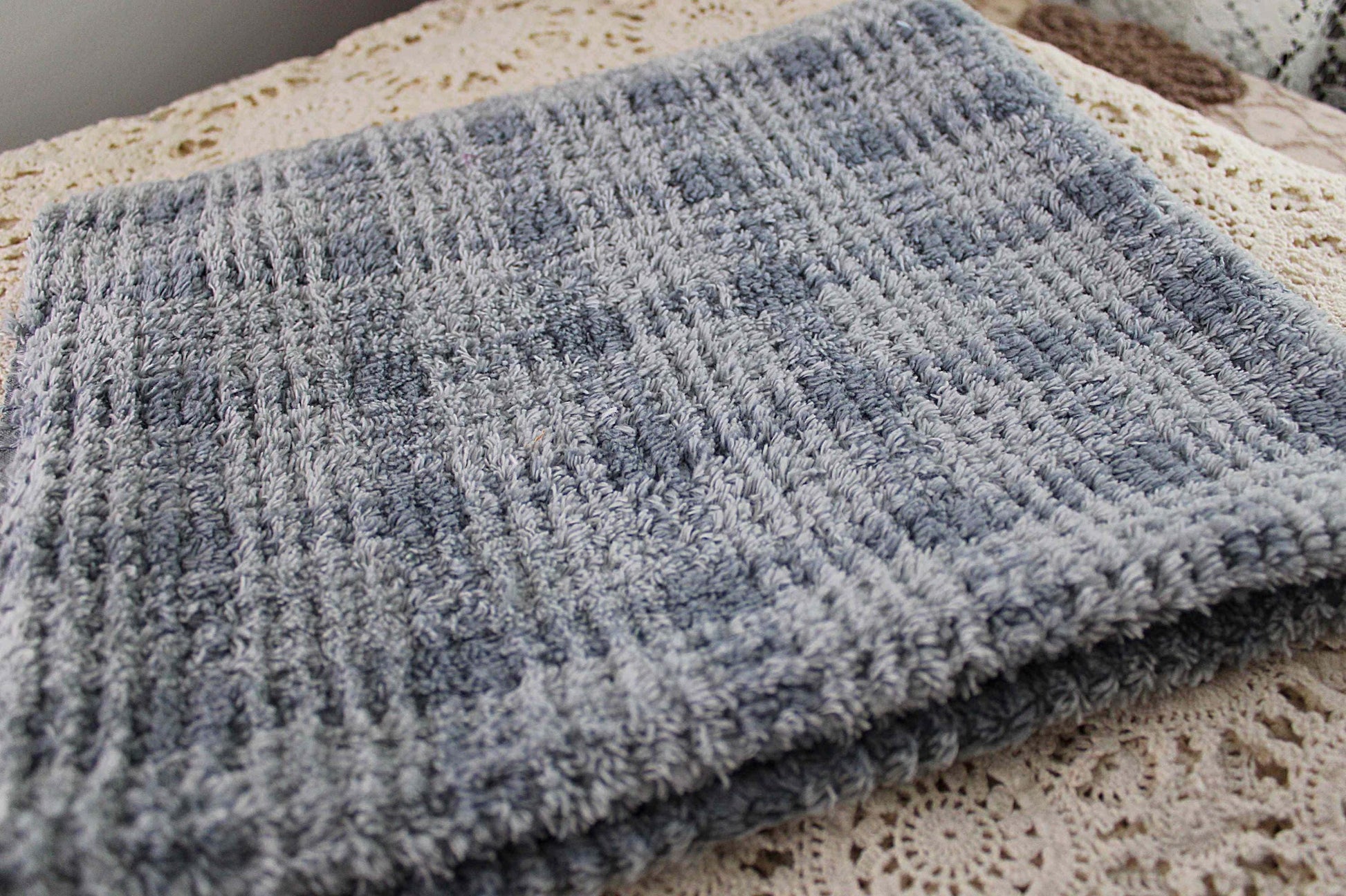 Cozy plush & soft, this moody grey plaid chenille fabric piece measures approx 20" x 25" inches. Features a contrast of stormy greys, ranging from charcoal to a rainy day mist gray.The chenille tufting forms a dense tufted plaid pattern. Very adaptive to light. This is vintage style chenille; expect this to be a lint shedder given the plush tufting.