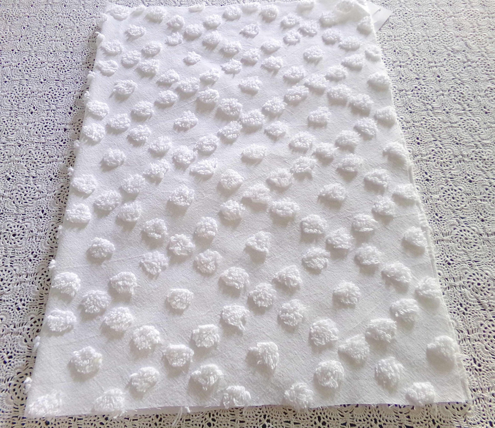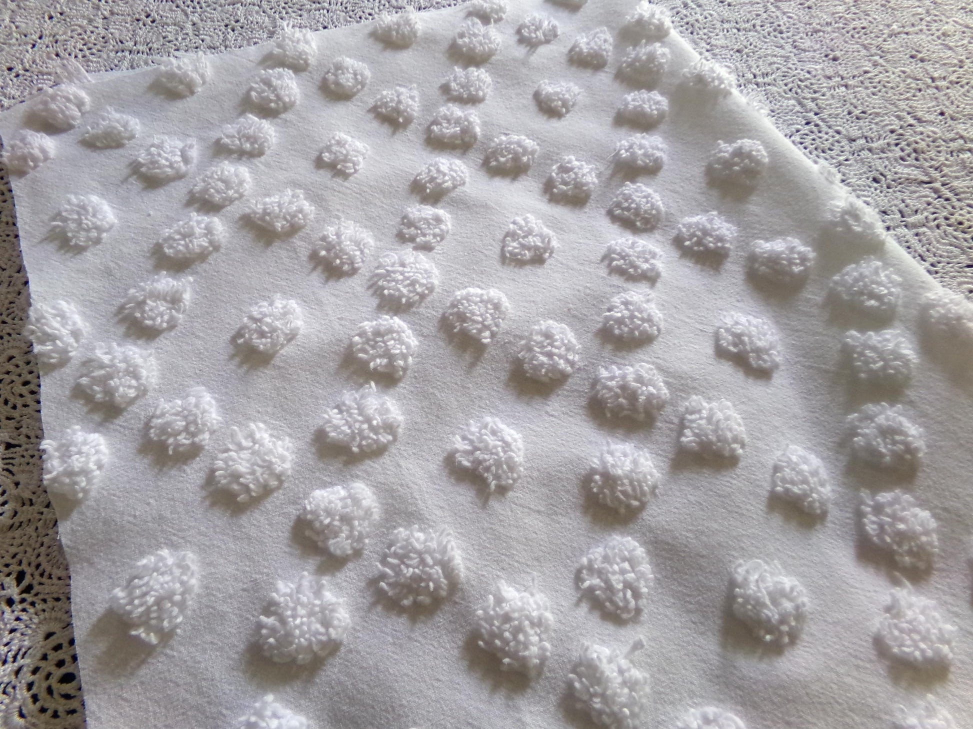 Classic, versatile vintage white chenille fabric with a unique twist: instead of the more commonly seen coin pops or mini dots, this fabric presents a diamond pattern. Ideal for use in an array of creative projects, from vintage to modern.Piece measures approx 19" x 28" inch. Lightweight, strong cotton fabric that is very easy to work with. White is fresh & bright. Few age marks as seen final img. ❄