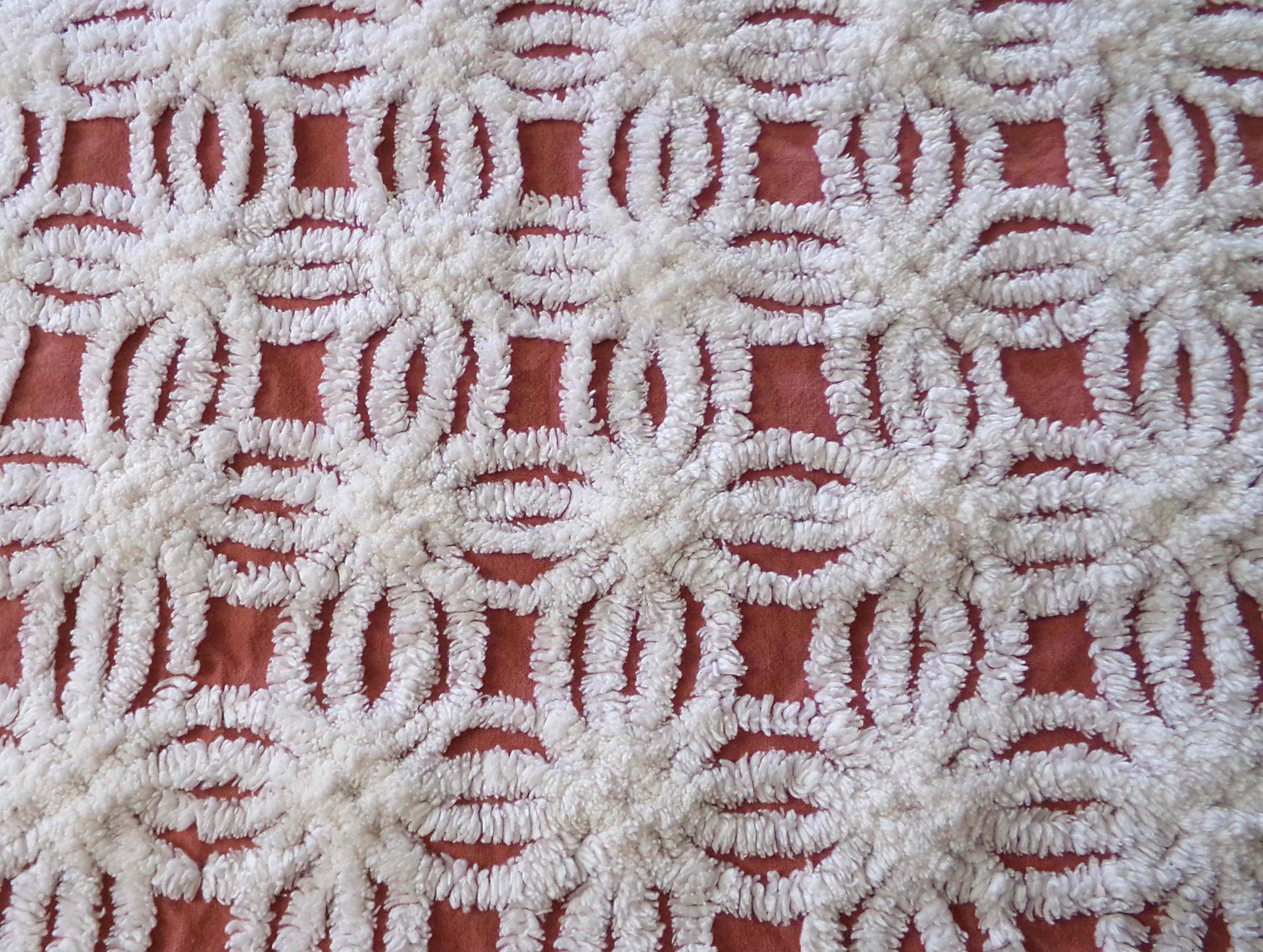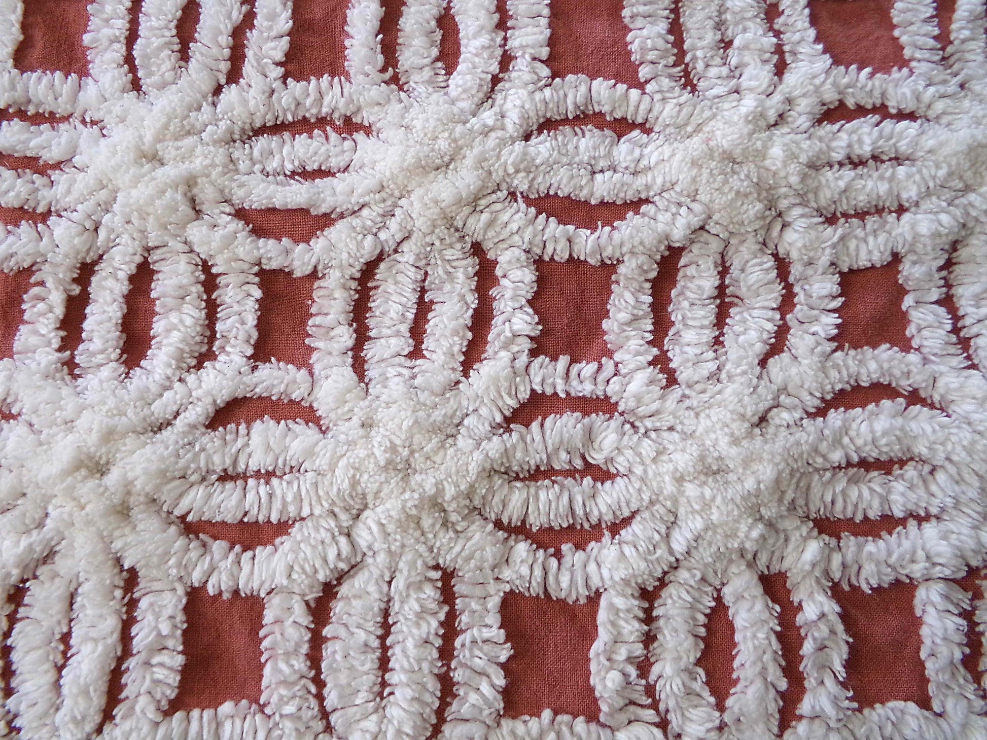 Bring boho style into your project with this vintage chenille fabric - in a great earthy colorway of warm deep terracotta clay. The fabric is tufted in a warm white geometric petal design. Excellent vintage quality.Approx 20" x 24" inch piece. Ideal in DIY pillows, quilts & more. 100% vintage cotton. Original fabric circa 1960s, manufactured by Hofmann Textilesw h a t - t o - k n o w