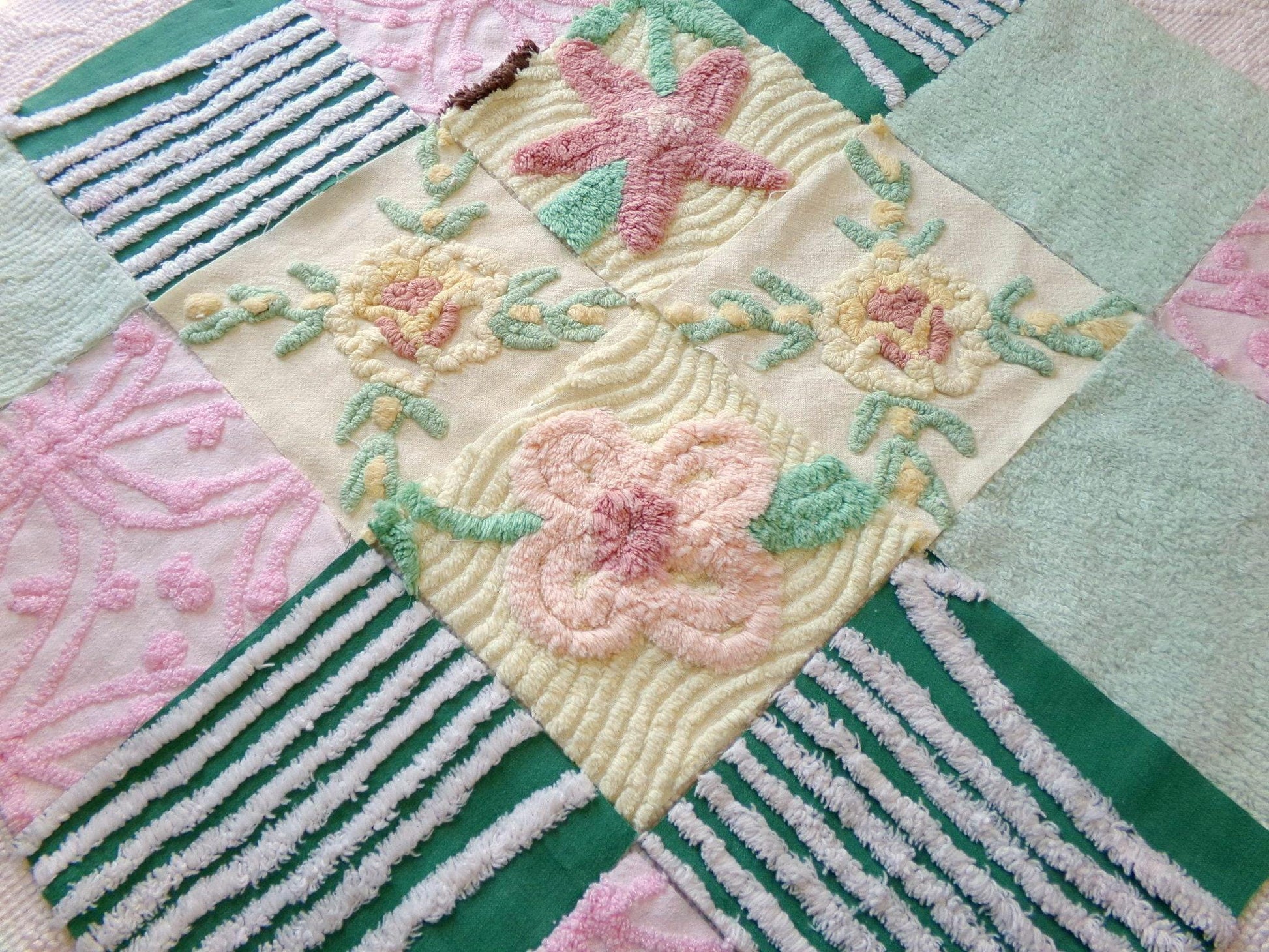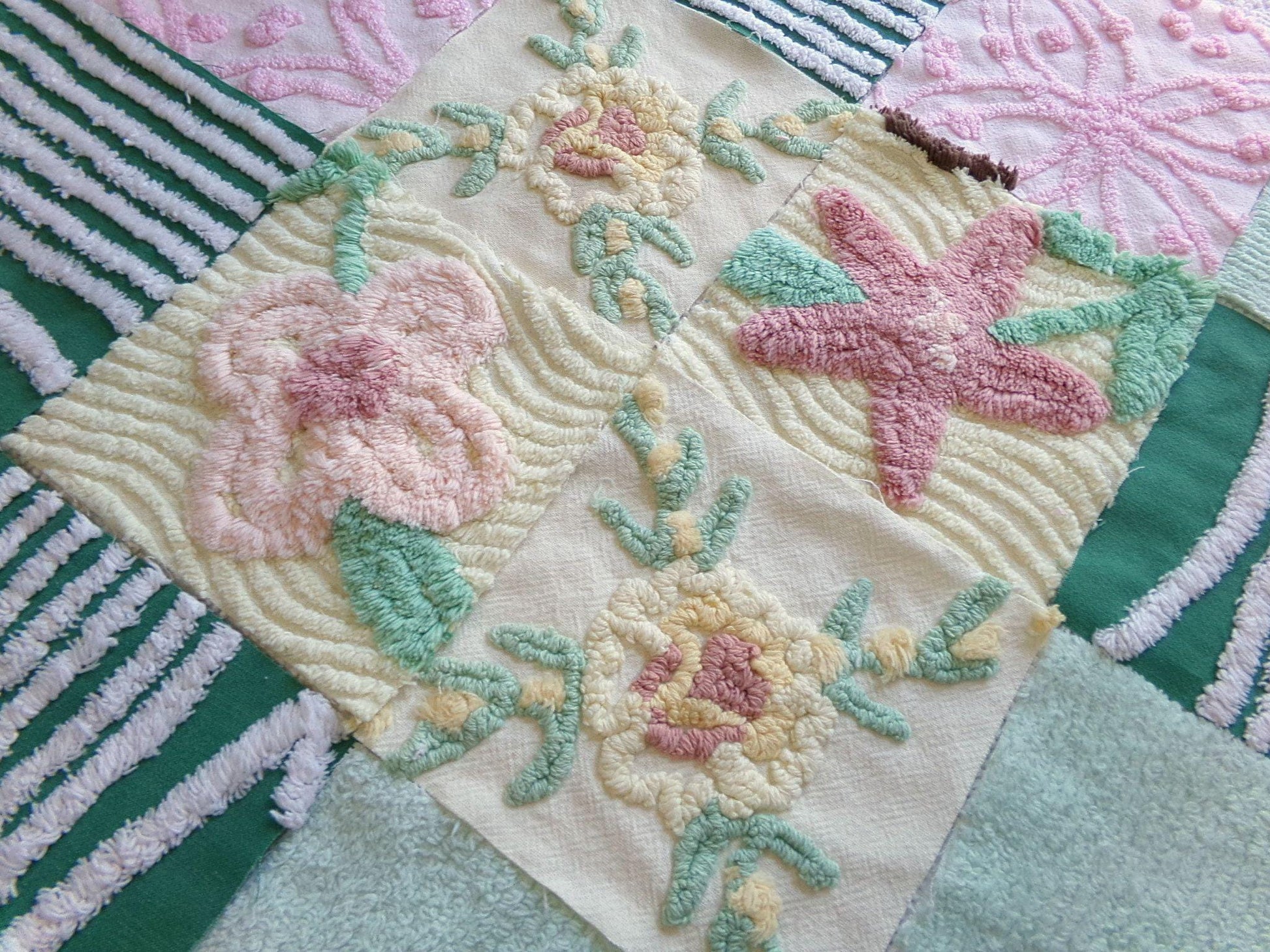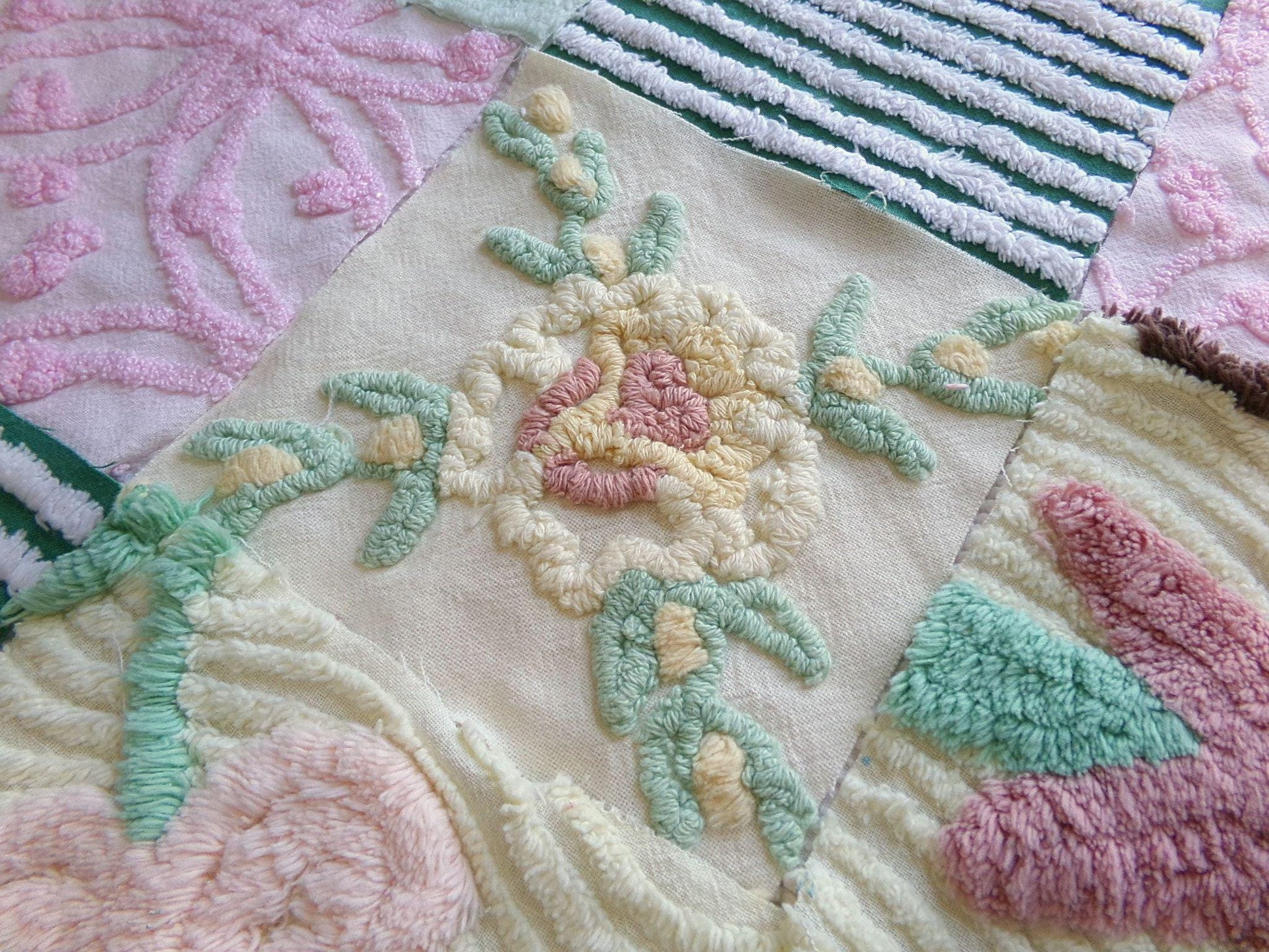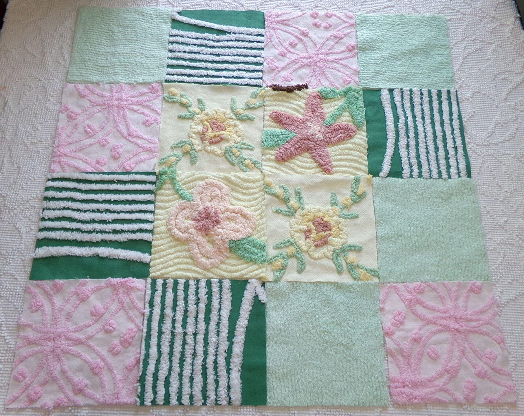 This assorted premium mix of fabric squares has been hand selected and rotary cut from original vintage chenille bedspreads. All are cotton or cotton blend. Ideal in DIY pillows & handmade quilts.