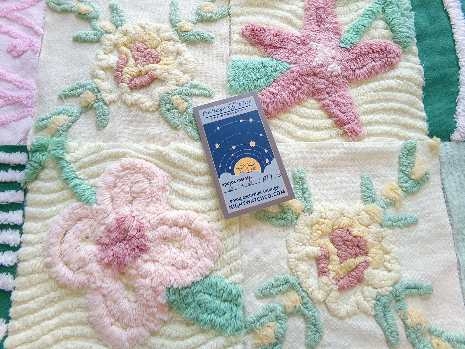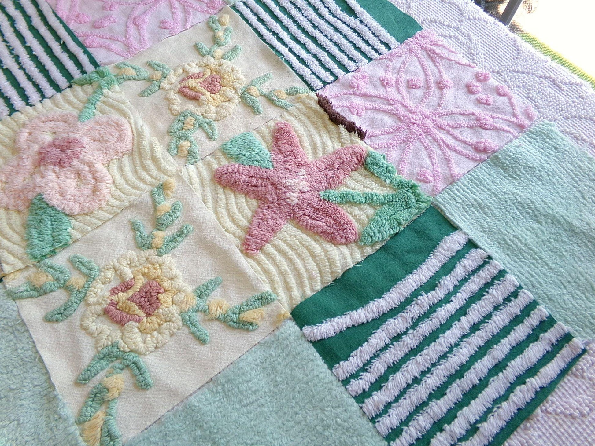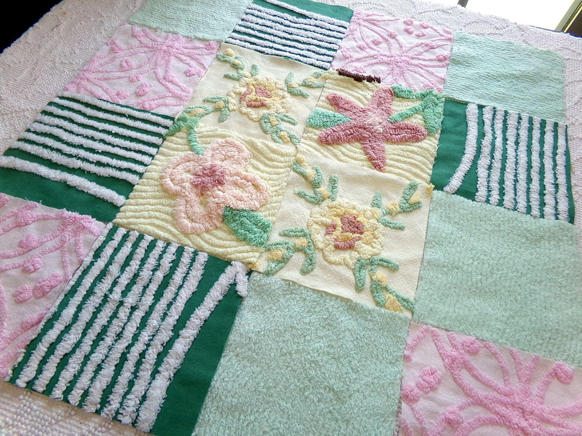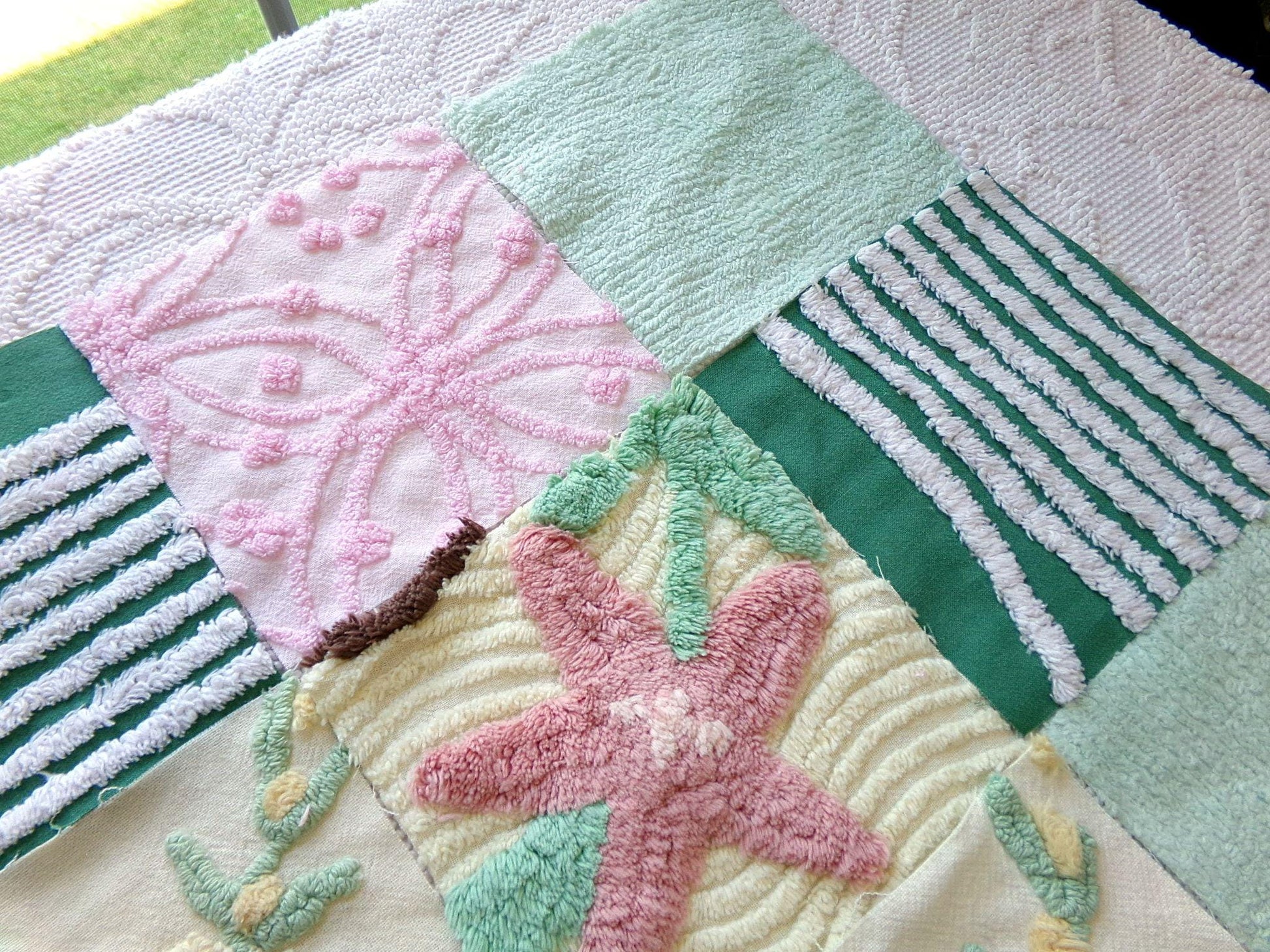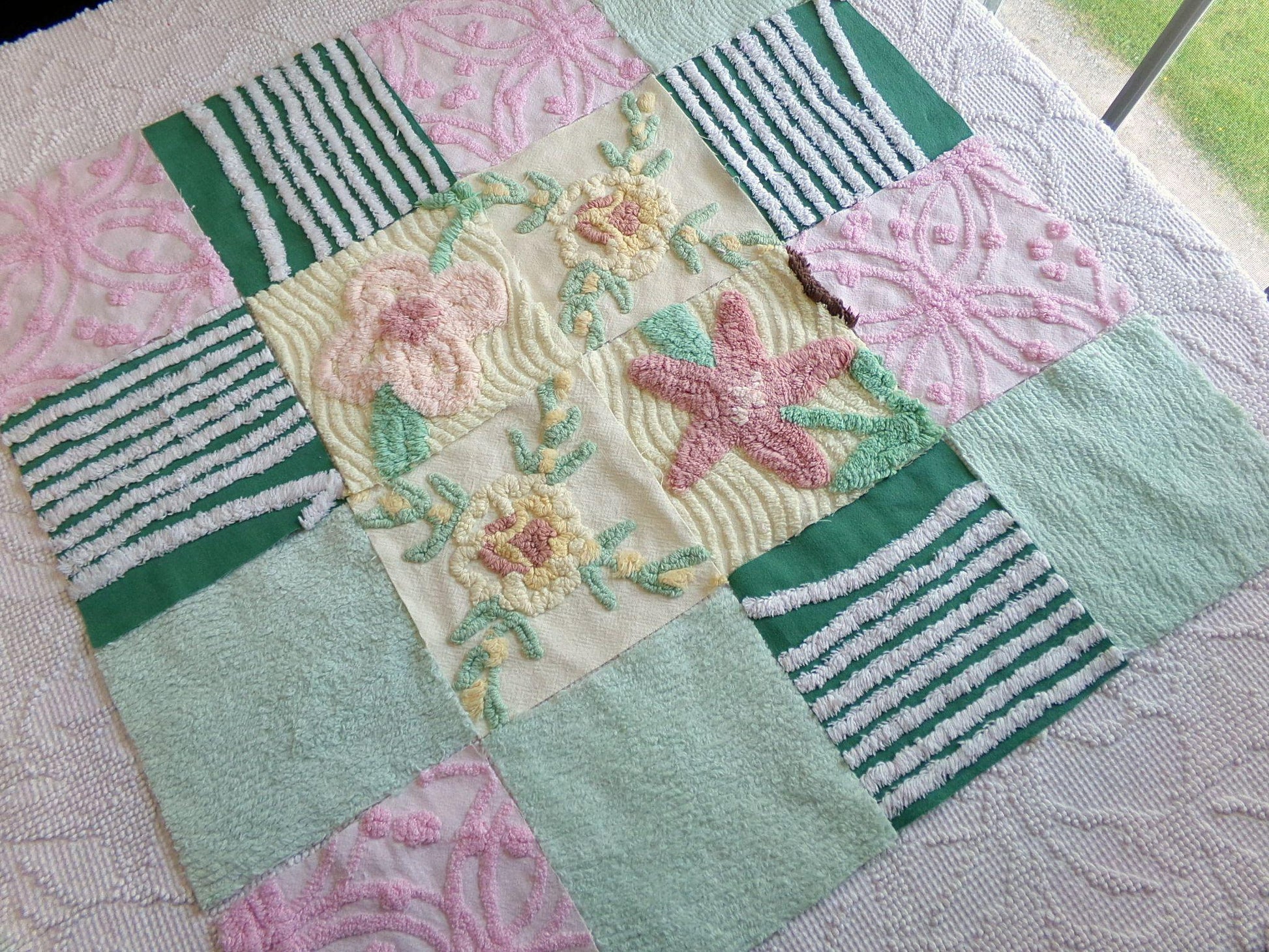 This assorted premium mix of fabric squares has been hand selected and rotary cut from original vintage chenille bedspreads. All are cotton or cotton blend. Ideal in DIY pillows & handmade quilts.