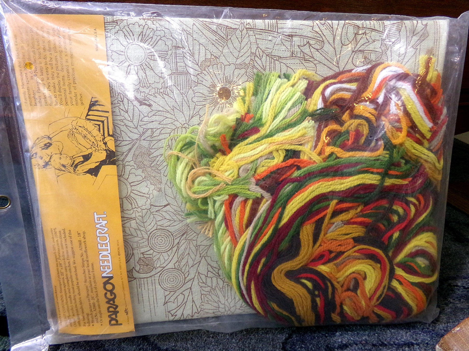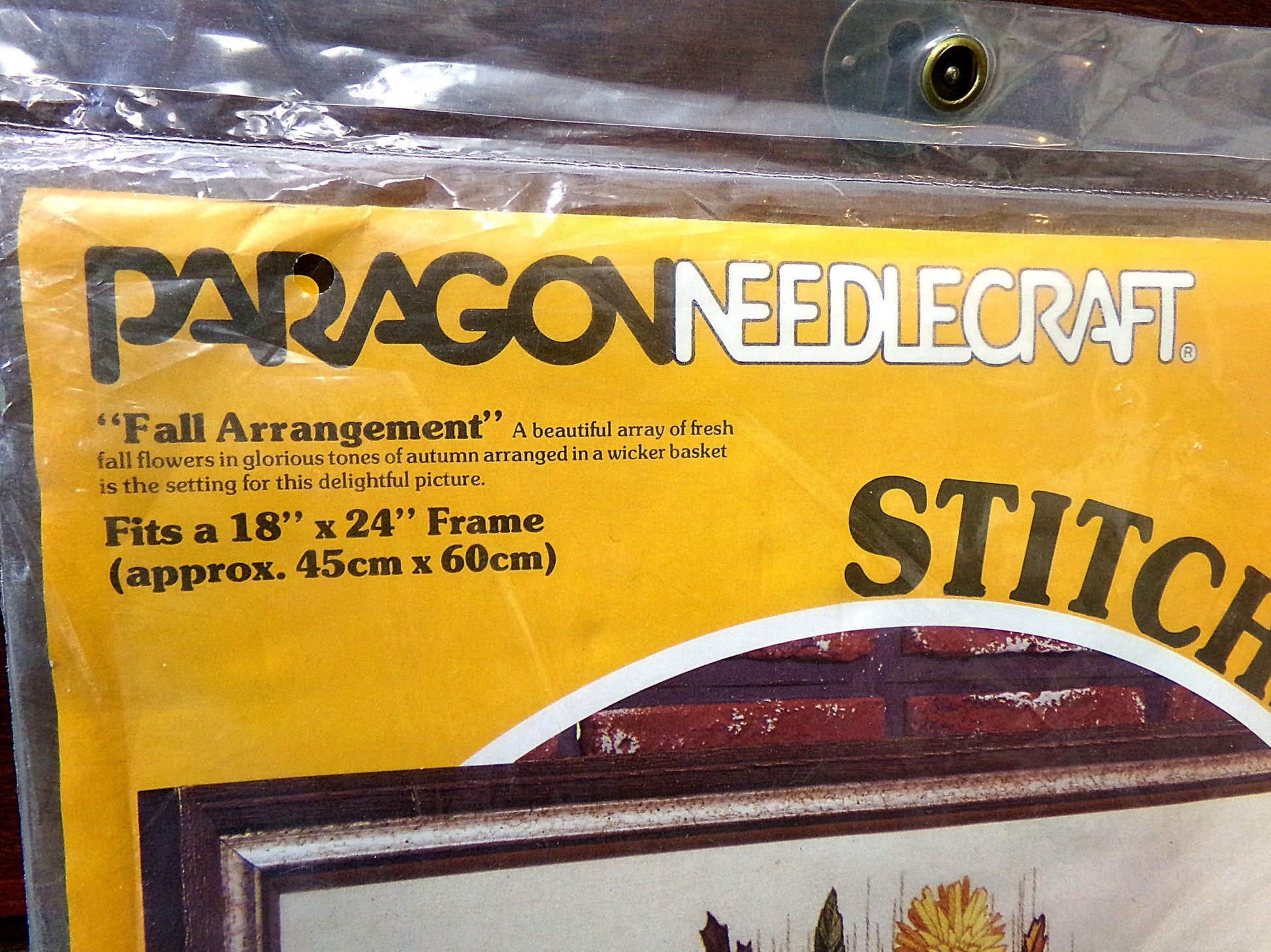 Embroider this stunning "FALL ARRANGEMENT," a vintage crewel stitchery kit by Paragon Needlecraft. "A beautiful array of fresh fall flowers in glorious tones of autumn arranged in a wicker basket is the setting for this delightful picture."• Paragon Needlecraft Stitchery Kit # 0810