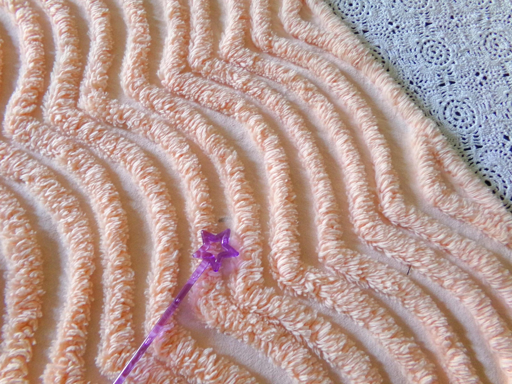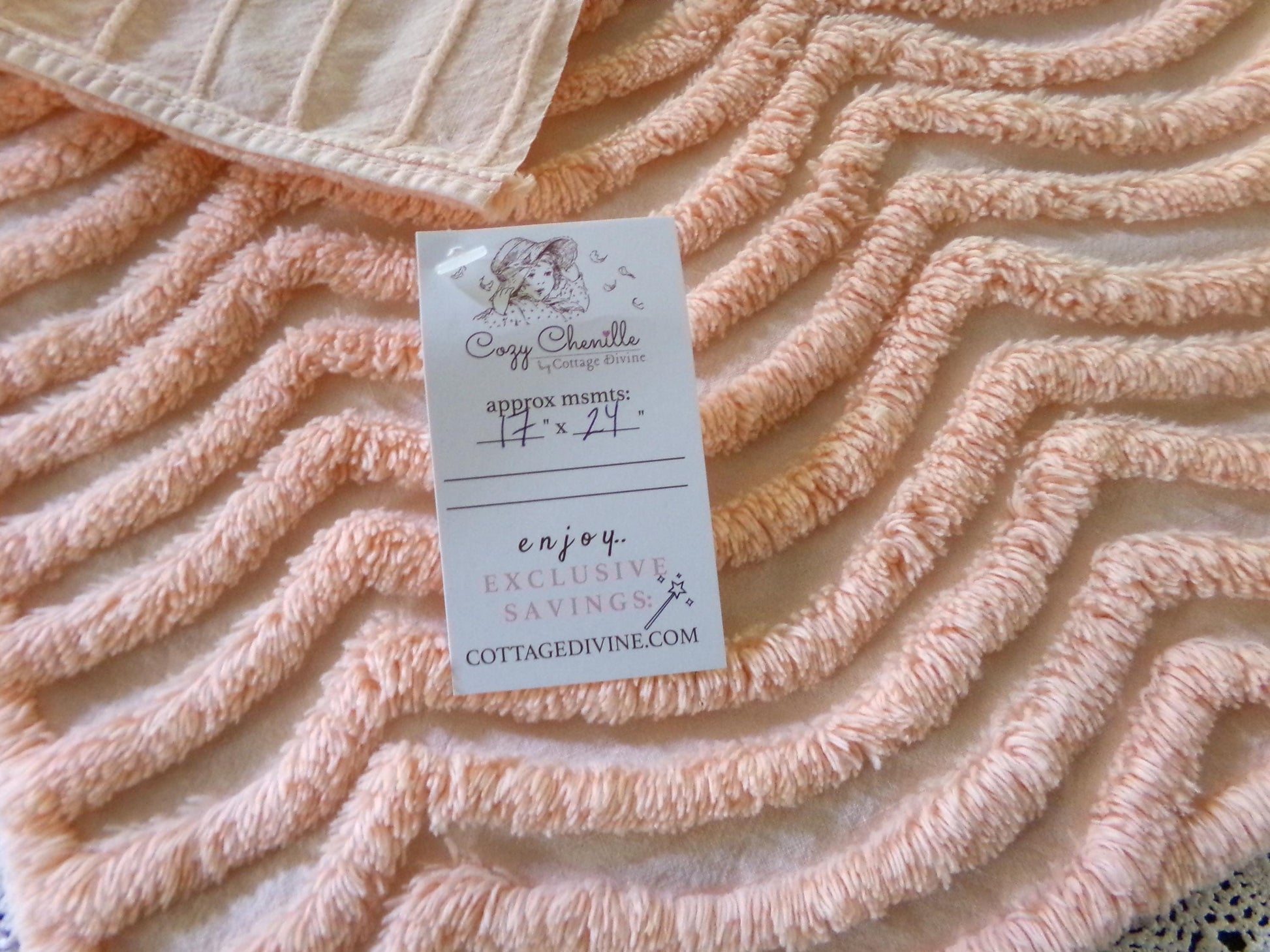 Ultra plush, luxurious vintage chenille material in a ribbed ripple wave design. The fabric features the most lovely shade of peach glow that exudes a sophisticated radiance.Piece measures about 17" x 24" inches. 100% cotton, 1950s era original. The bedspread this beautiful fabric was sourced from features a few little overshot dye marks from the factory, which you may notice. See final imgw h a t - t o - k n o w