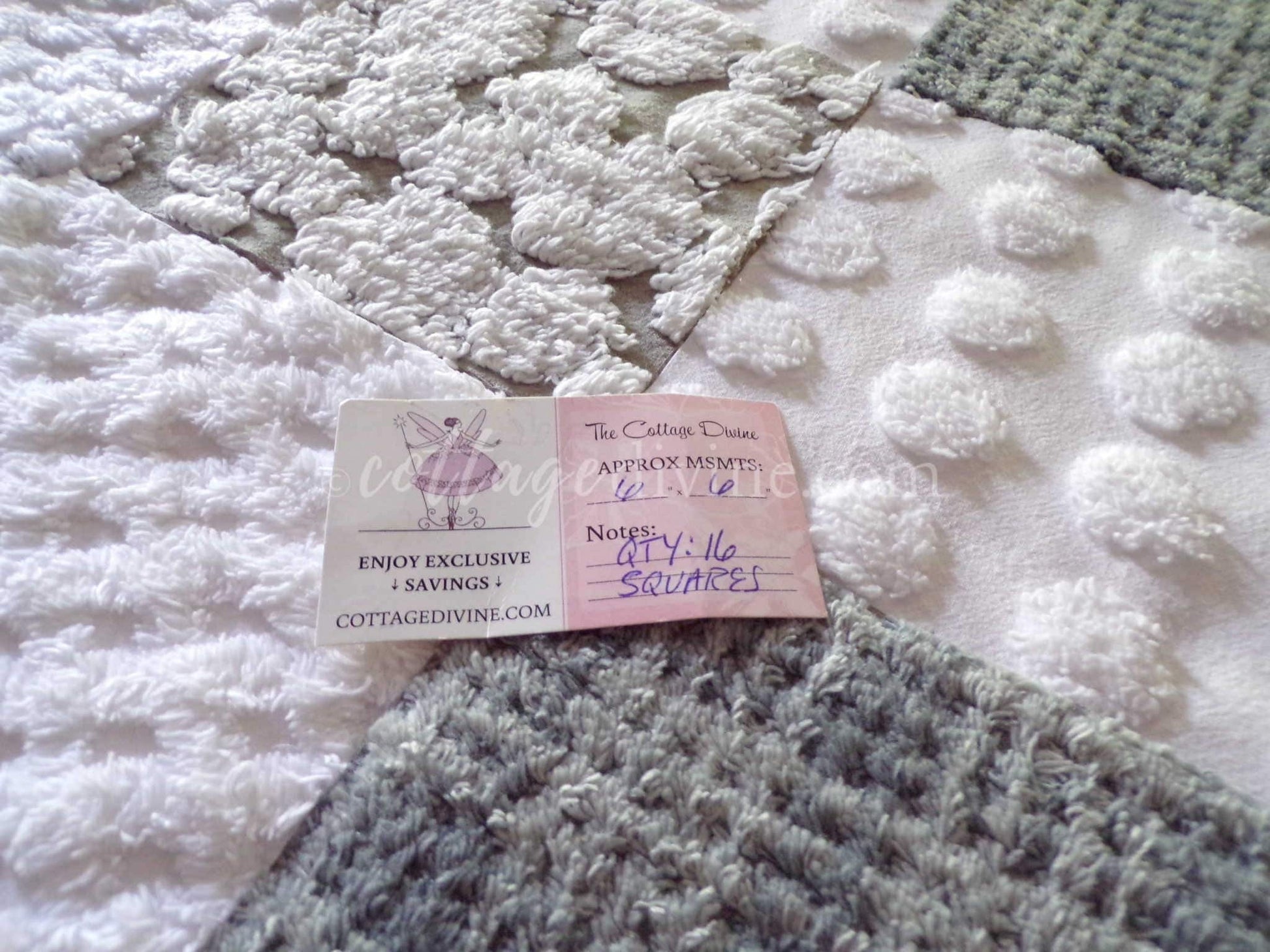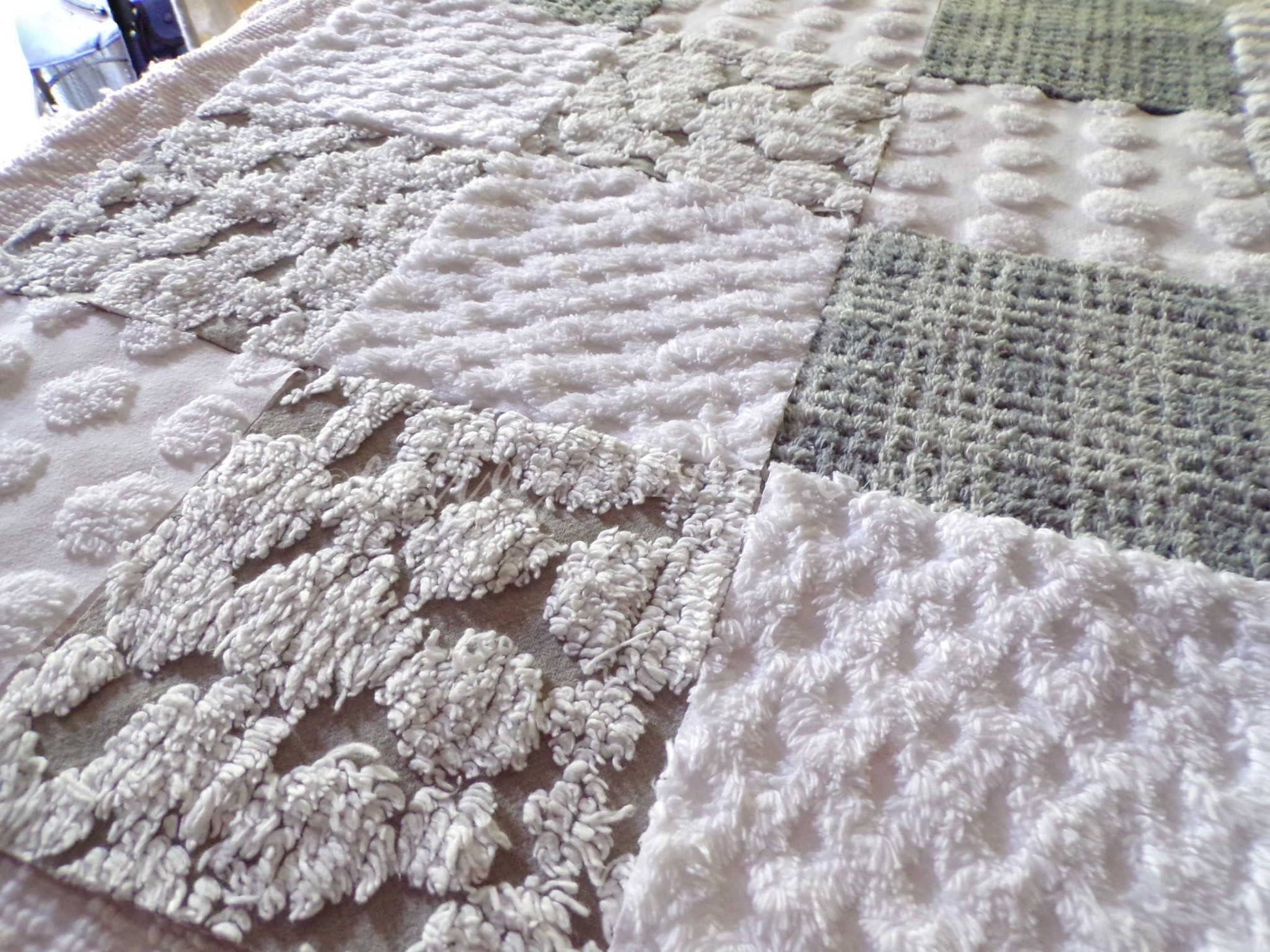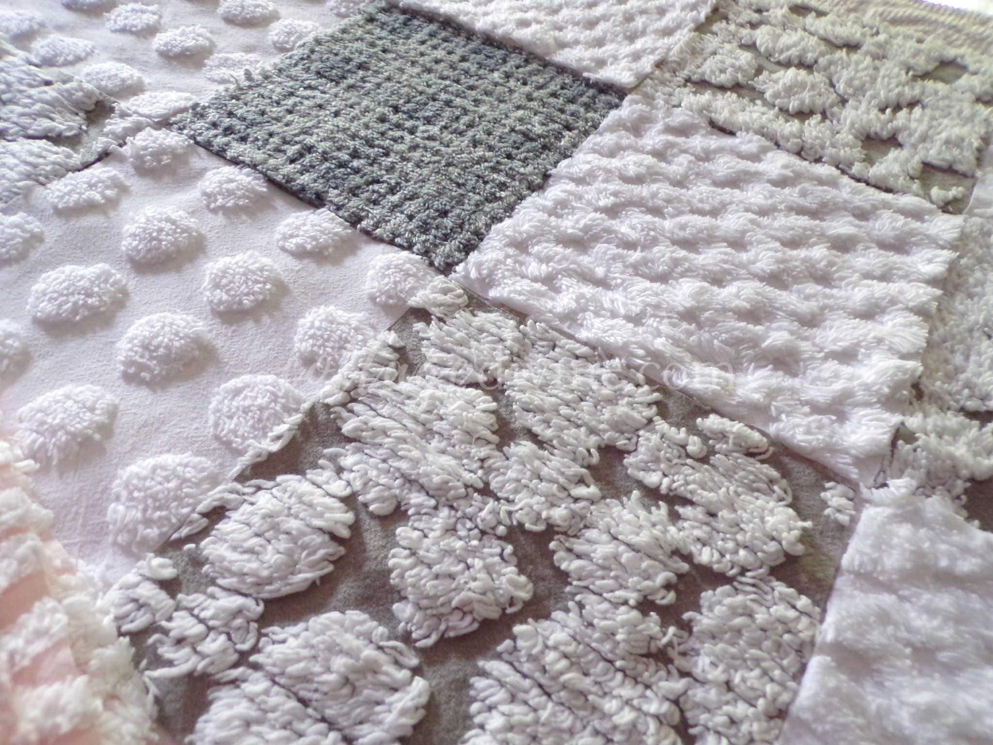 This assorted premium mix of fabric squares has been hand selected from original vintage chenille bedspreads. All are cotton or cotton blend. Ideal in DIY pillows & handmade quilts::this is a set of quilt blocks - not a finished product