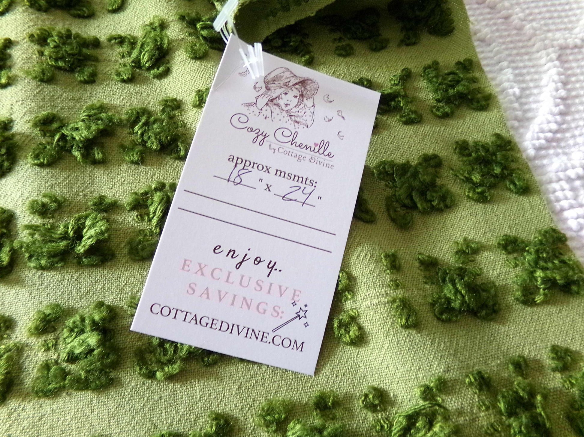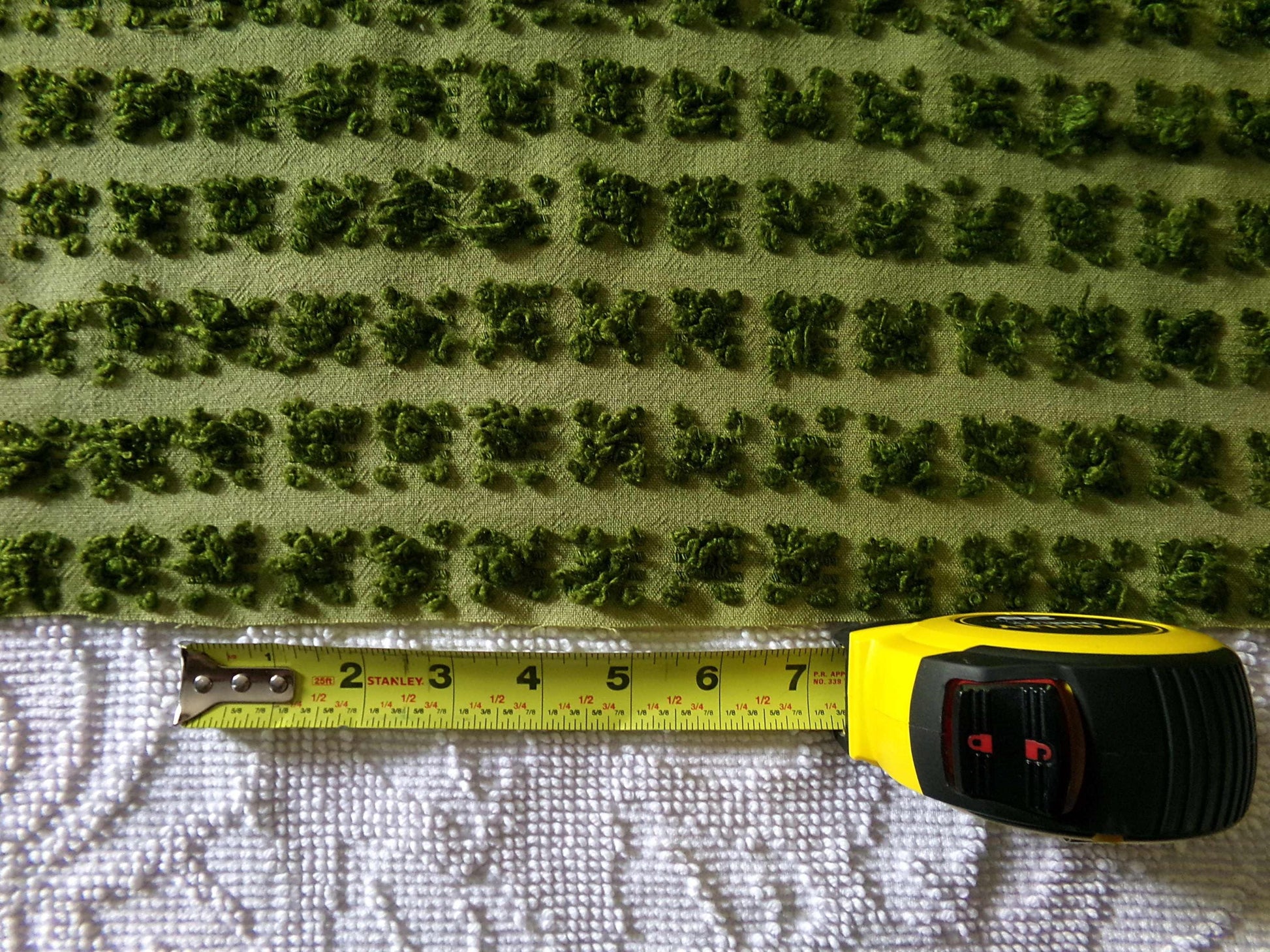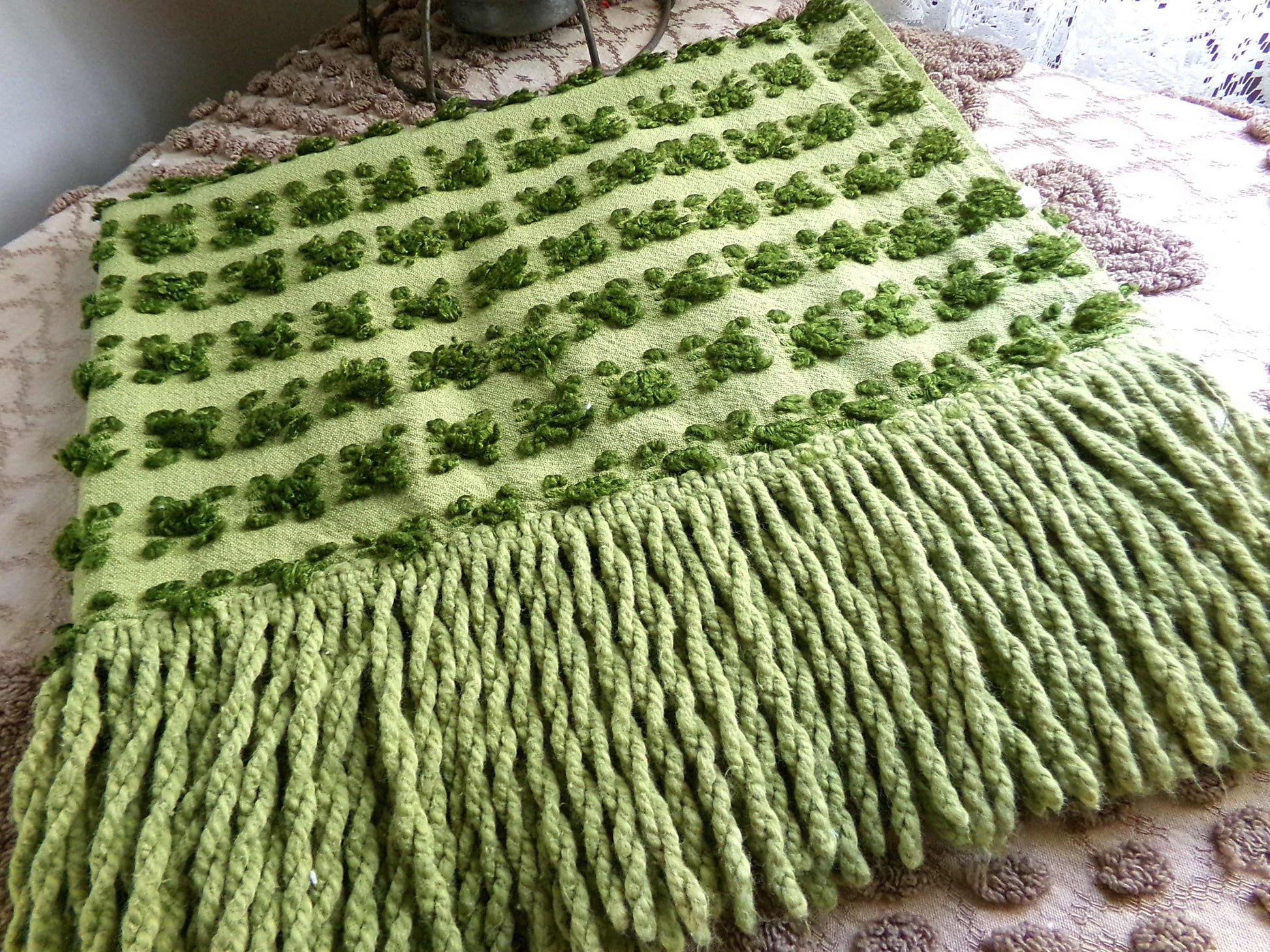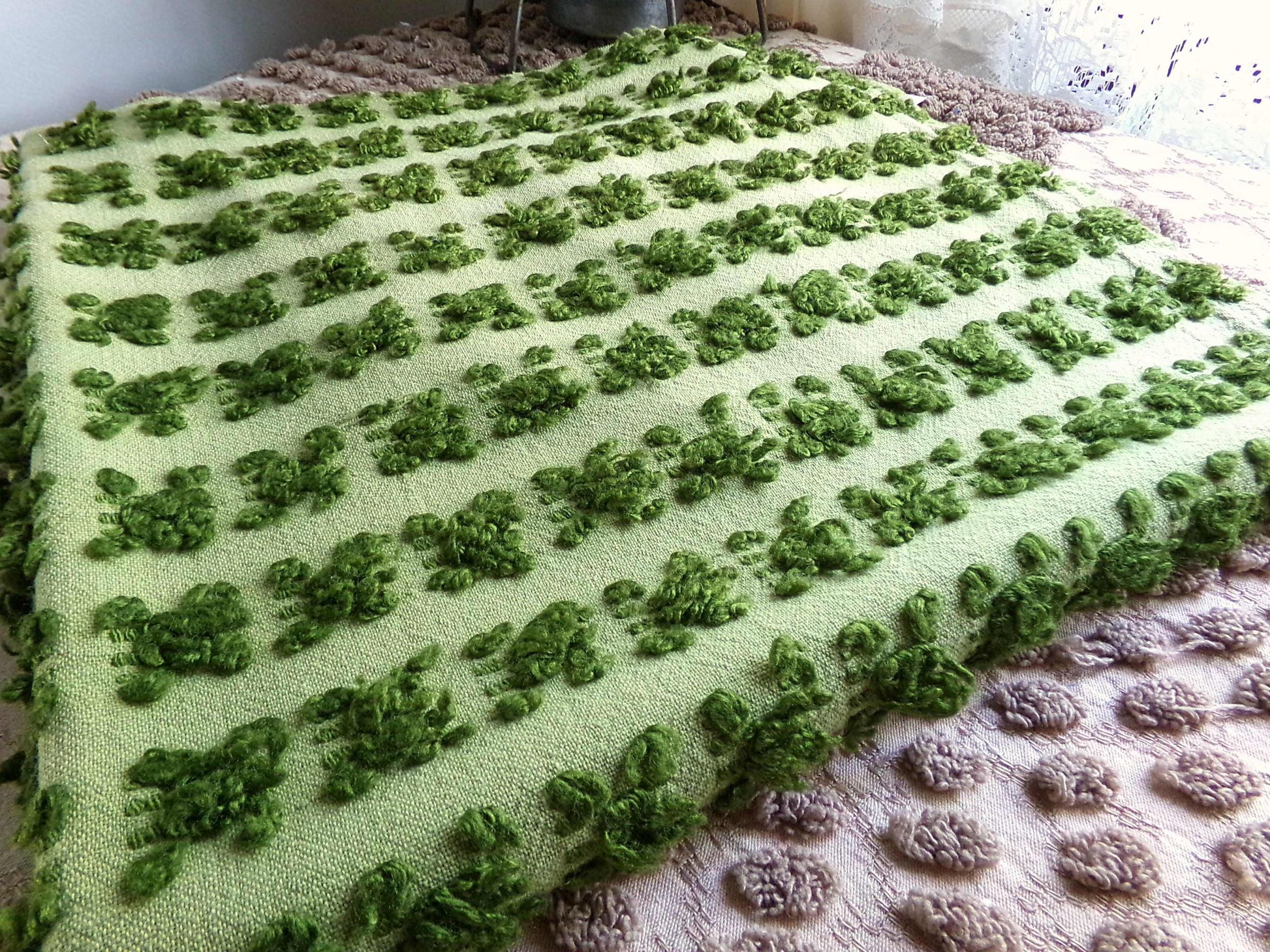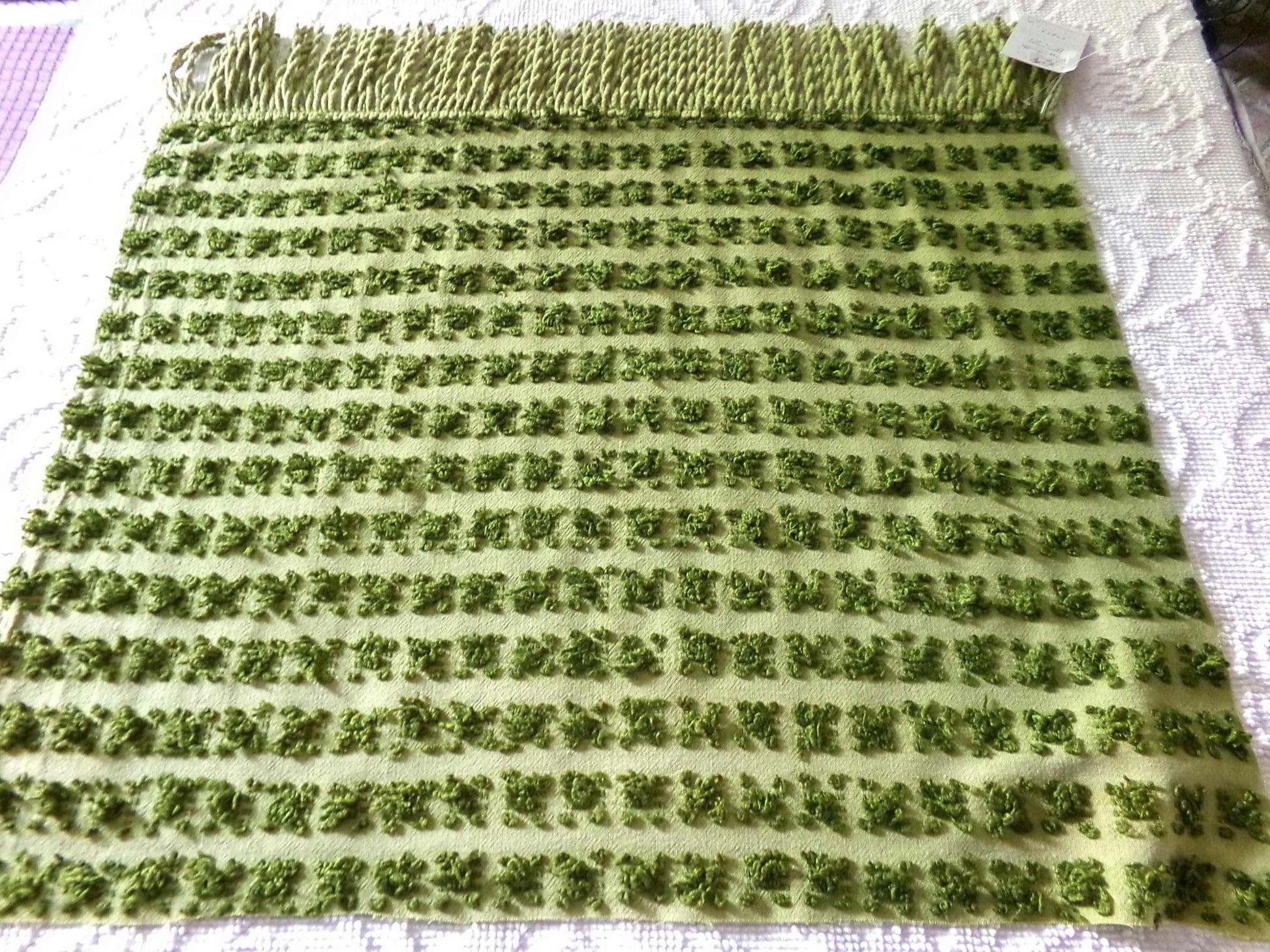 The epitome of hippie chic...very rare vintage chenille fabric in a tonal Grecian Green rosebud print. This fabric is just amazing...natural color variations to give natural patina, 3D raised rosebuds that pop against a lighter green bkgd...and that fringe accenting an edge...Lightweight cotton blend. Measures 24" x 18" inches. You'll spot a missing rosebud or two, which happened when the rosebud wasn't tufted at the factory (final img).What can you do with vintage fabric? Your inner artist is calling with so many creative possibilities: incorporate into handmade quilts, dress up a junk journal, design fun functional fabric patches & appliques, make your own DIY pillow covers, fashion makeup, essential oil bags & small totes, bring nostalgia to your scrapbooking proj, create a cute stuffed toy, craft 3D flowers, integrate into fiber art, textile arts & more..w h a t - t o - k n o w