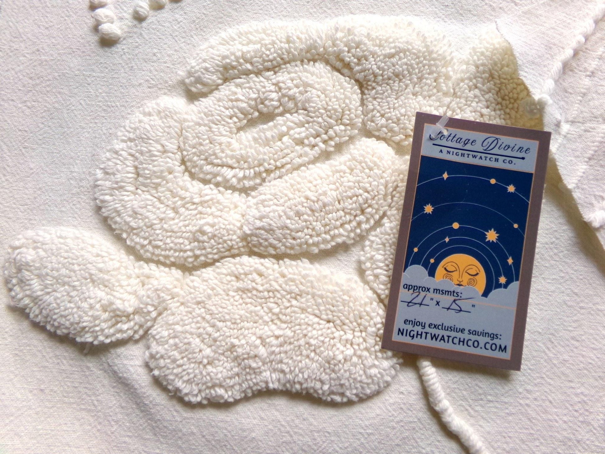 Imagine how beautiful your project will look with this heirloom quality piece of vintage chenille fabric. It features a large, heavily tufted pair of rose blooms on an ivory cream bkgd.Piece measures approx 21" x 15" inches. 100% cotton with plush tufting. In-person color is closes to img #3, a warm, soft ivory cream.