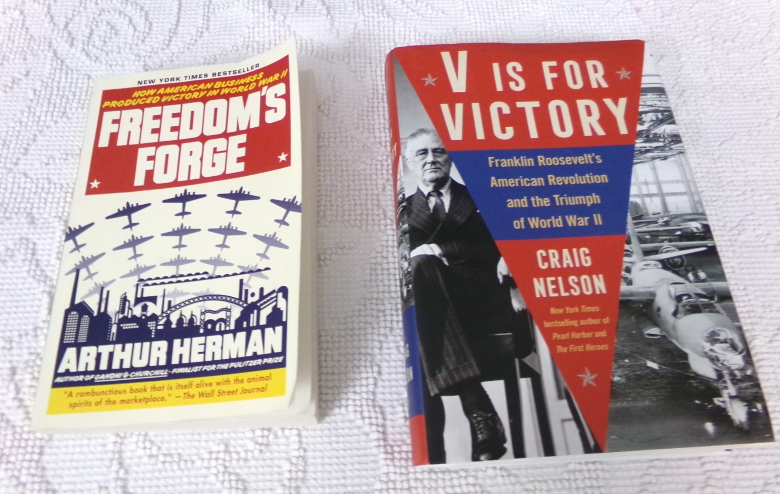 Lot of 2 books on how the United States won the victory in World War II1. Freedom's Forge by Arthur Herman: How American Business Produced Victory in World War II, paperback, good condition, 413 pages.
