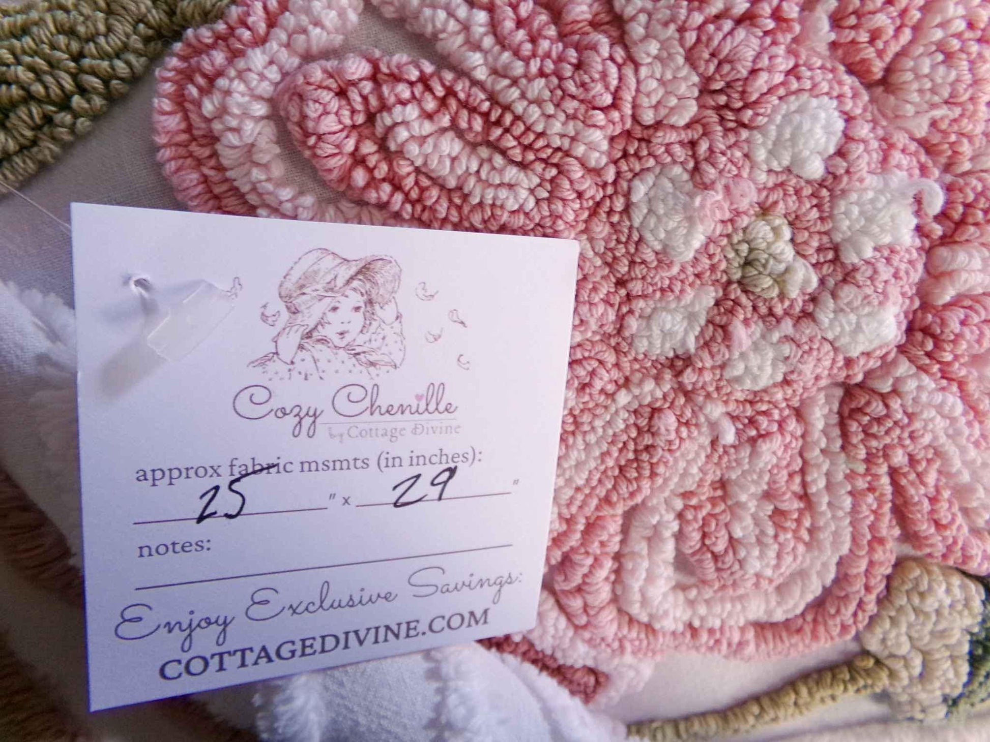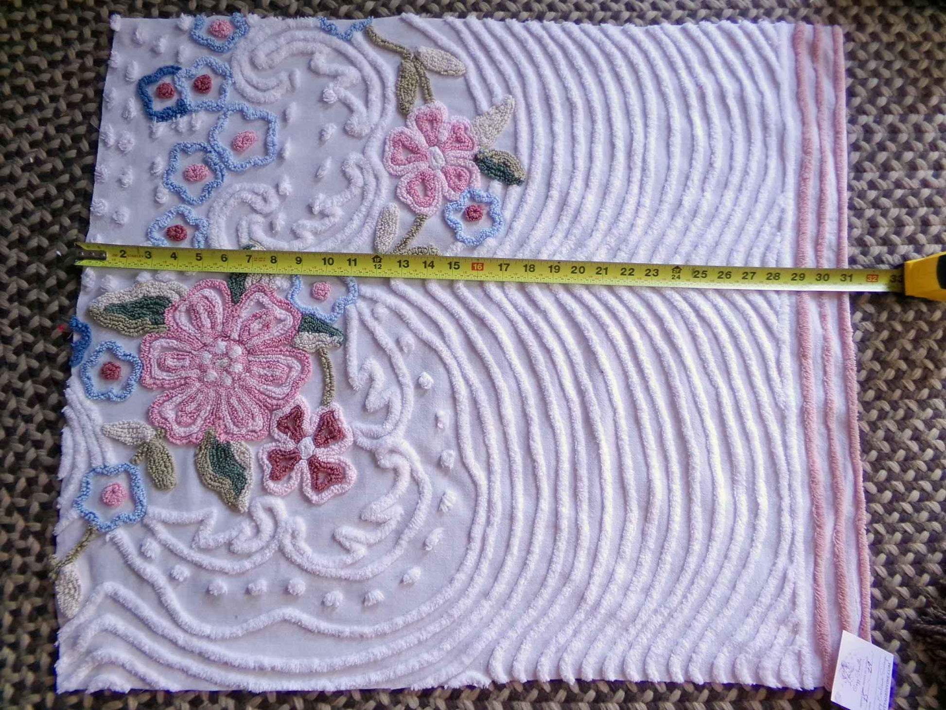 Dreamy cottage florals adorn this pretty piece of vintage chenille fabric. A beautiful choice to incorporate into your handmade quilt designs to add a fresh, cottage style essence.Very lightweight fabric measures 29" x 25" inches. Lovely tuft work, 100% cotton material original to the 1950s era. May have a few minor pinholes.