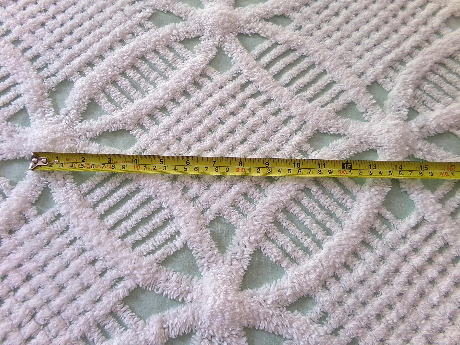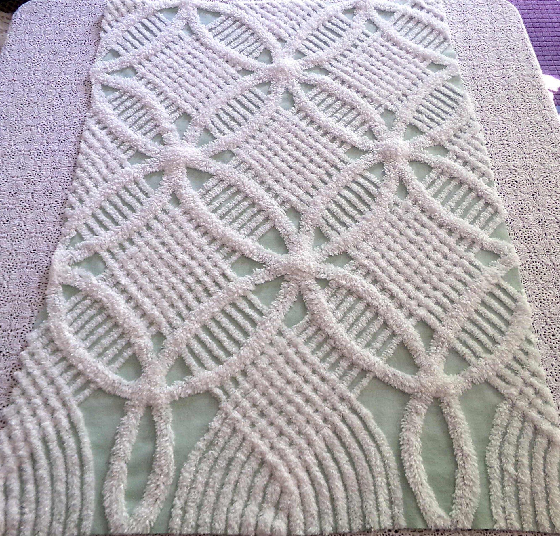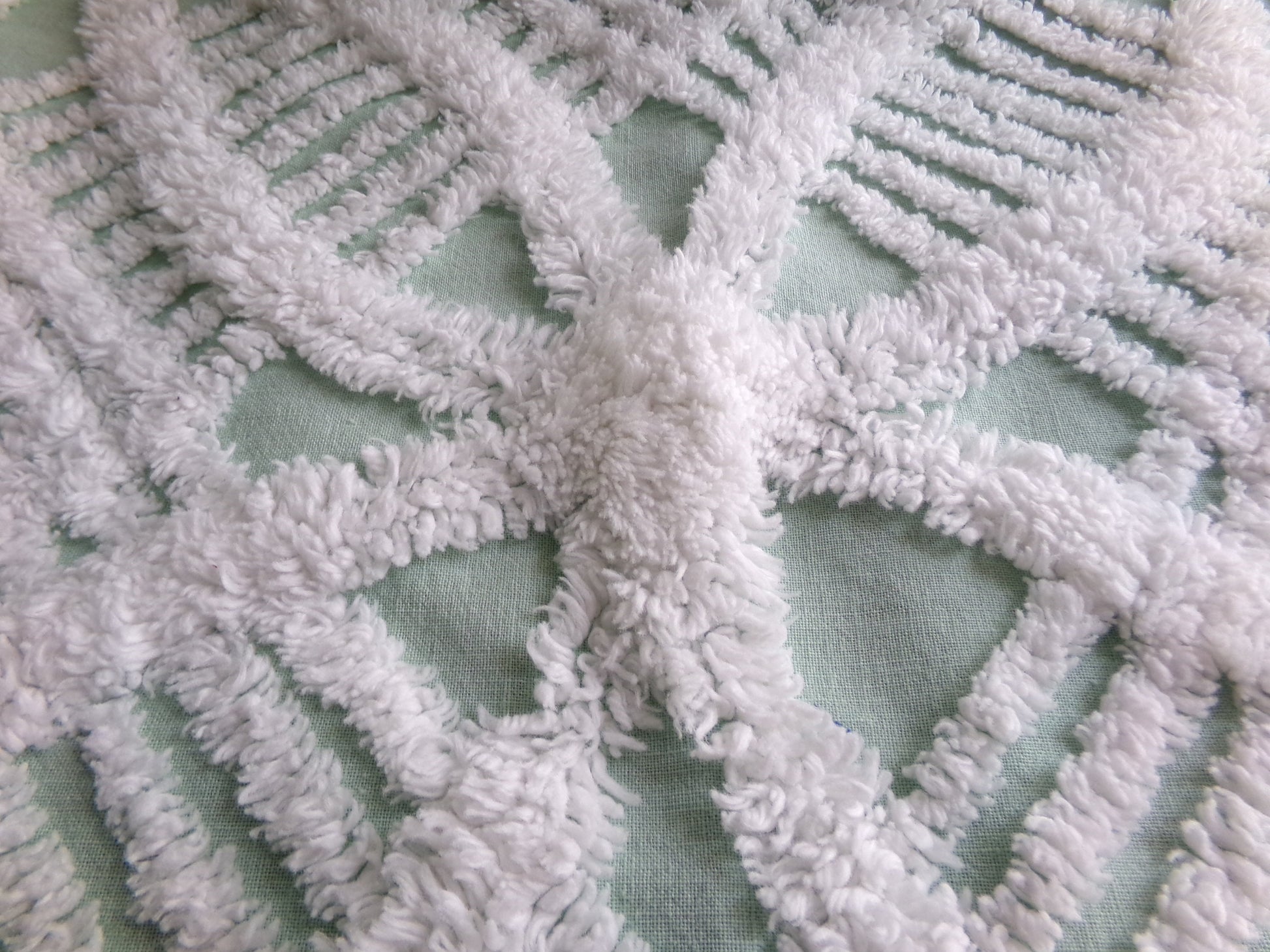 A classic pattern in vintage chenille fabric is all that much more pretty in a beautiful mint green color with white geometric wedding ring tufts...and it's waiting to charm its way into your pretty project.Approx 21" x 30" inches. Ideal in DIY pillows, quilts & more. 100% cotton. Original vintage fabric circa late 1950sw h a t - t o - k n o w