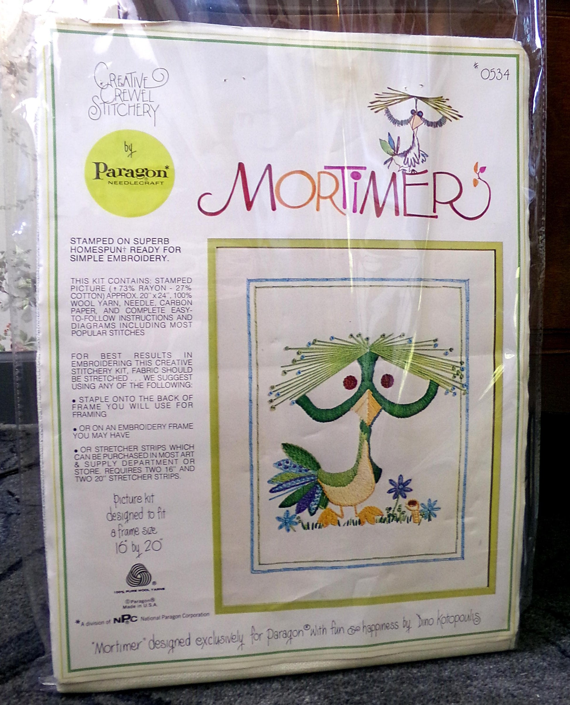 MORTIMER BIRD...This rare Paragon Crewel Stitchery is ready to be embroidered by you to bring a smile to anyone who sees it. If you're a fan of this design, you know how it's become nearly impossible to find in recent years.• Paragon Needlecraft Crewel kit # 0534