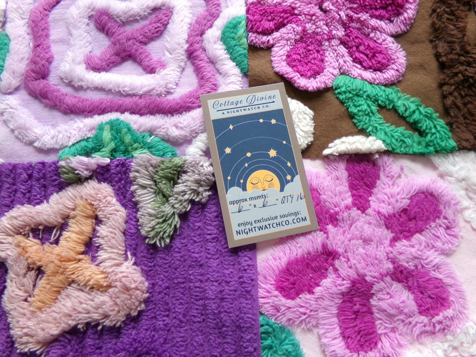 What will you create with this selection of chenille fabric squares? I've chosen a premium assortment of unusual colors & patterns to inspire your creativity. From tiny tufted ivy rosebuds to plush big flowers, this set has a range of great texture too.Use in quilt inlays, patchwork pillows, doll blankets, upcycle clothing designs & fiber arts of all kinds :)