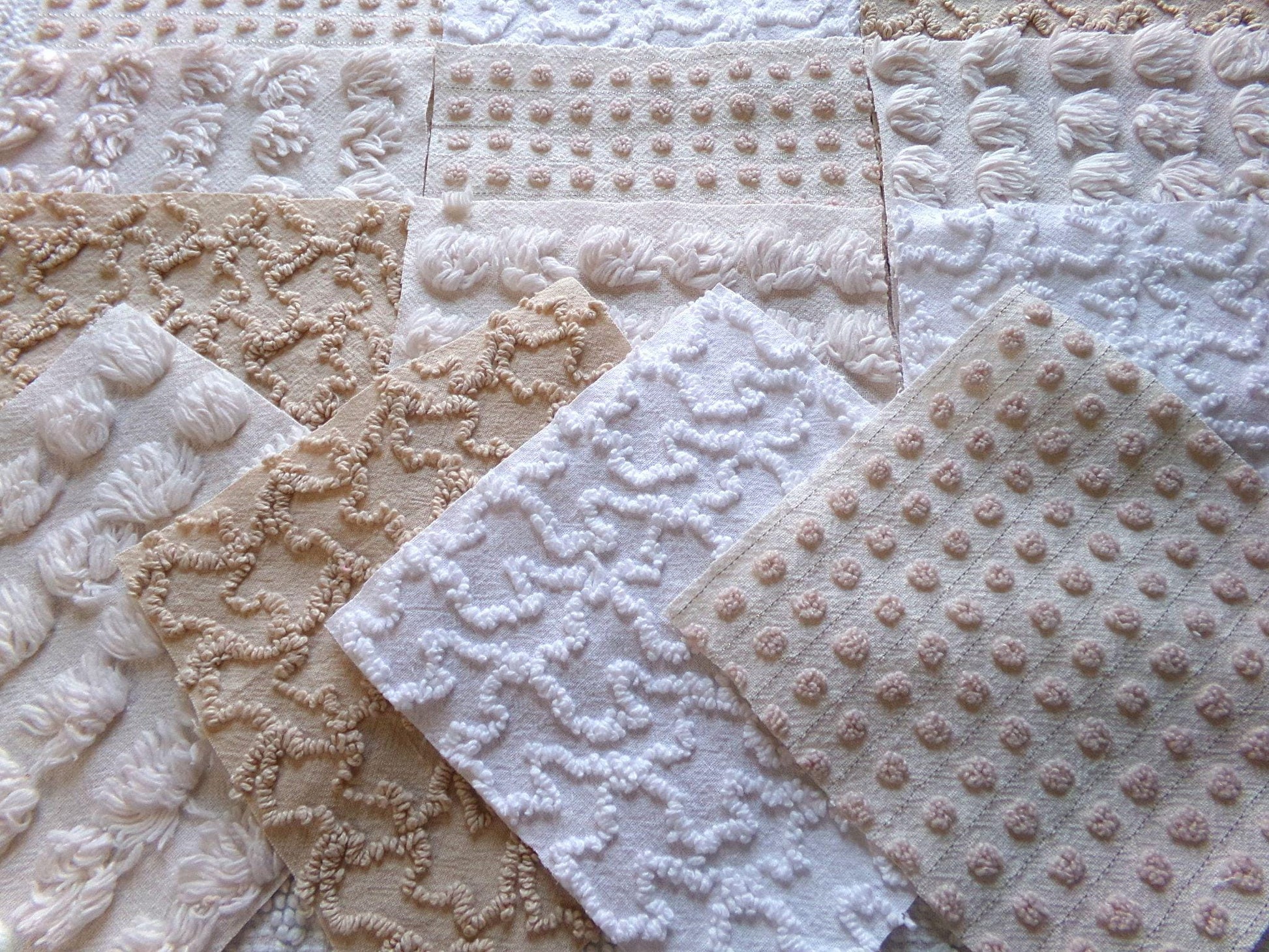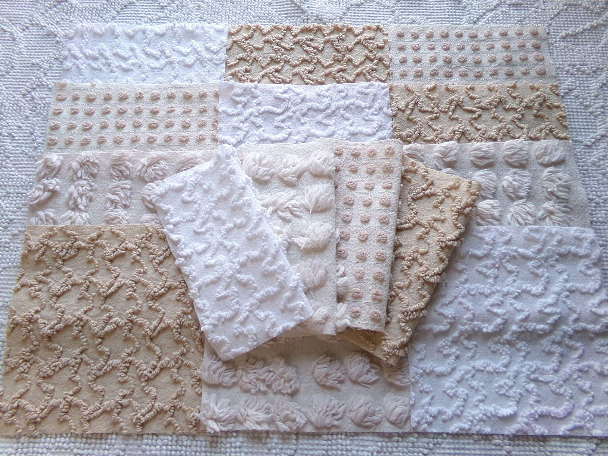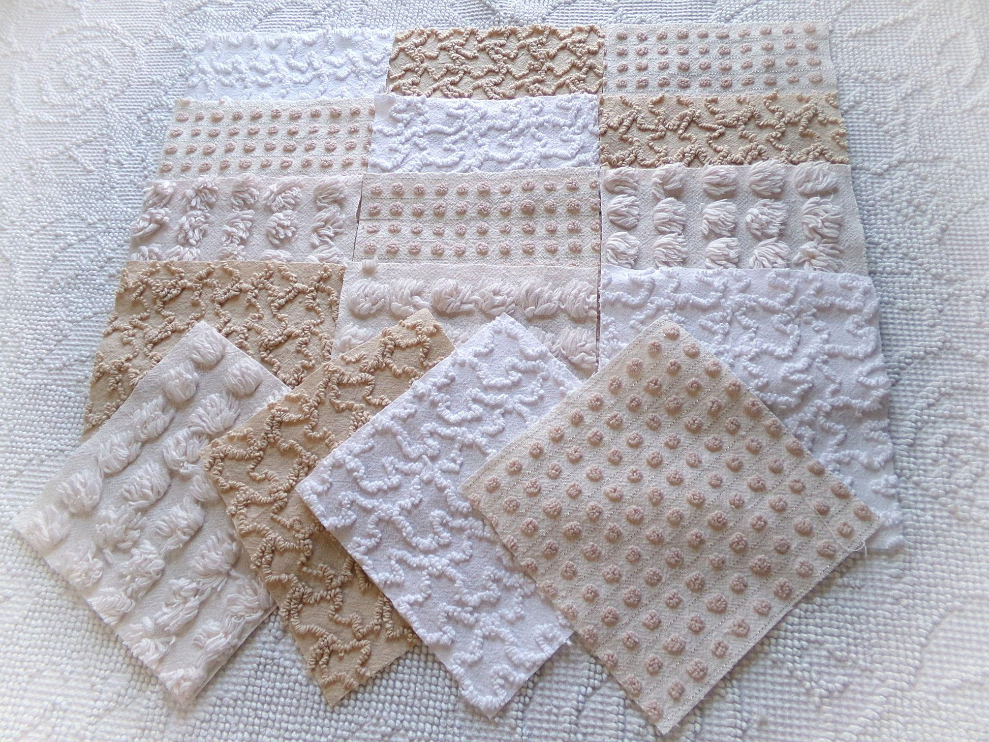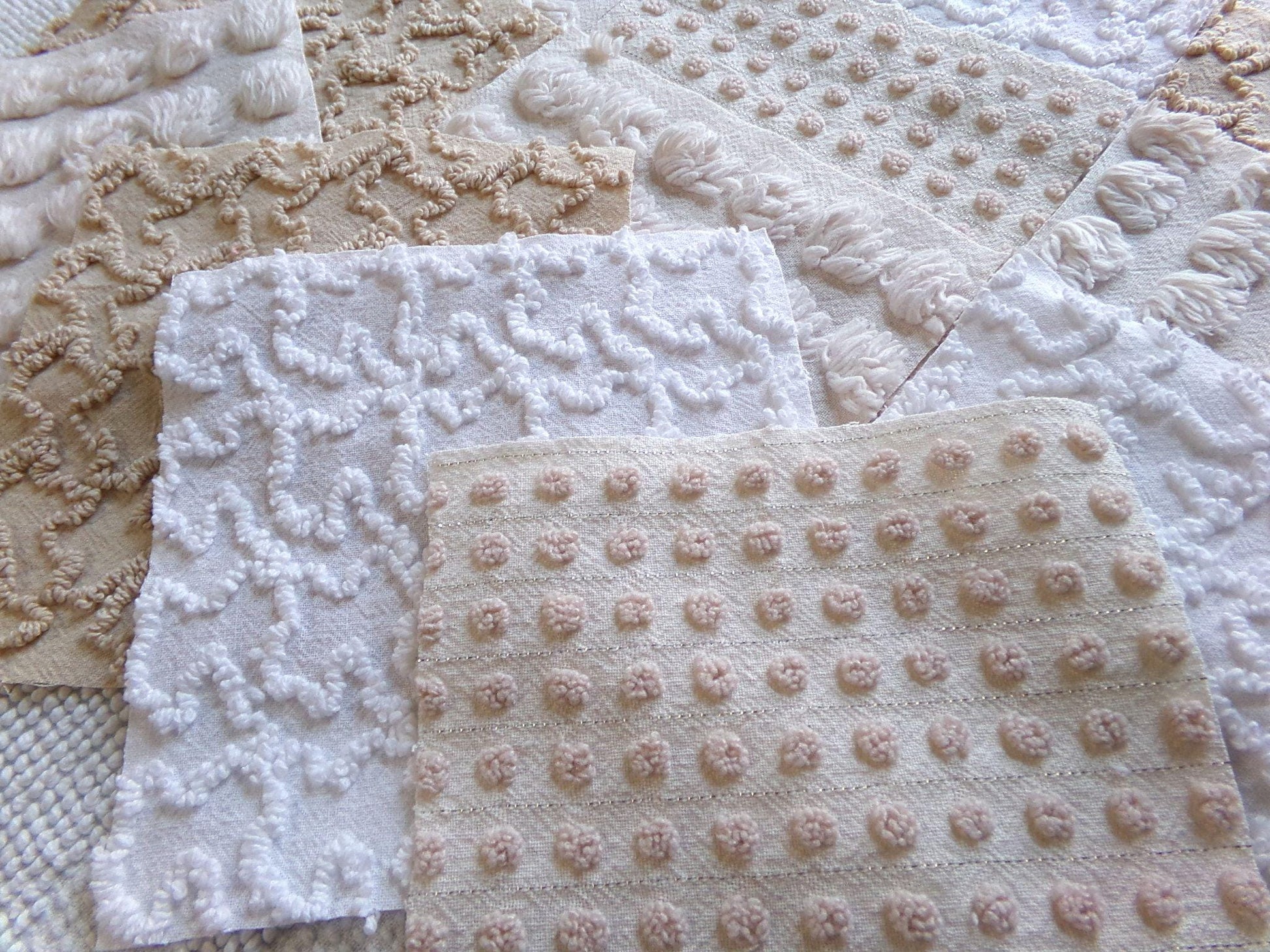 see more, cottagedivine.com"Neutral Modern" ... This is a great set of 16 vintage chenille fabric squares emphasizing timeless chic modern colors of natural nude, sand dune, white and hints of cream.
