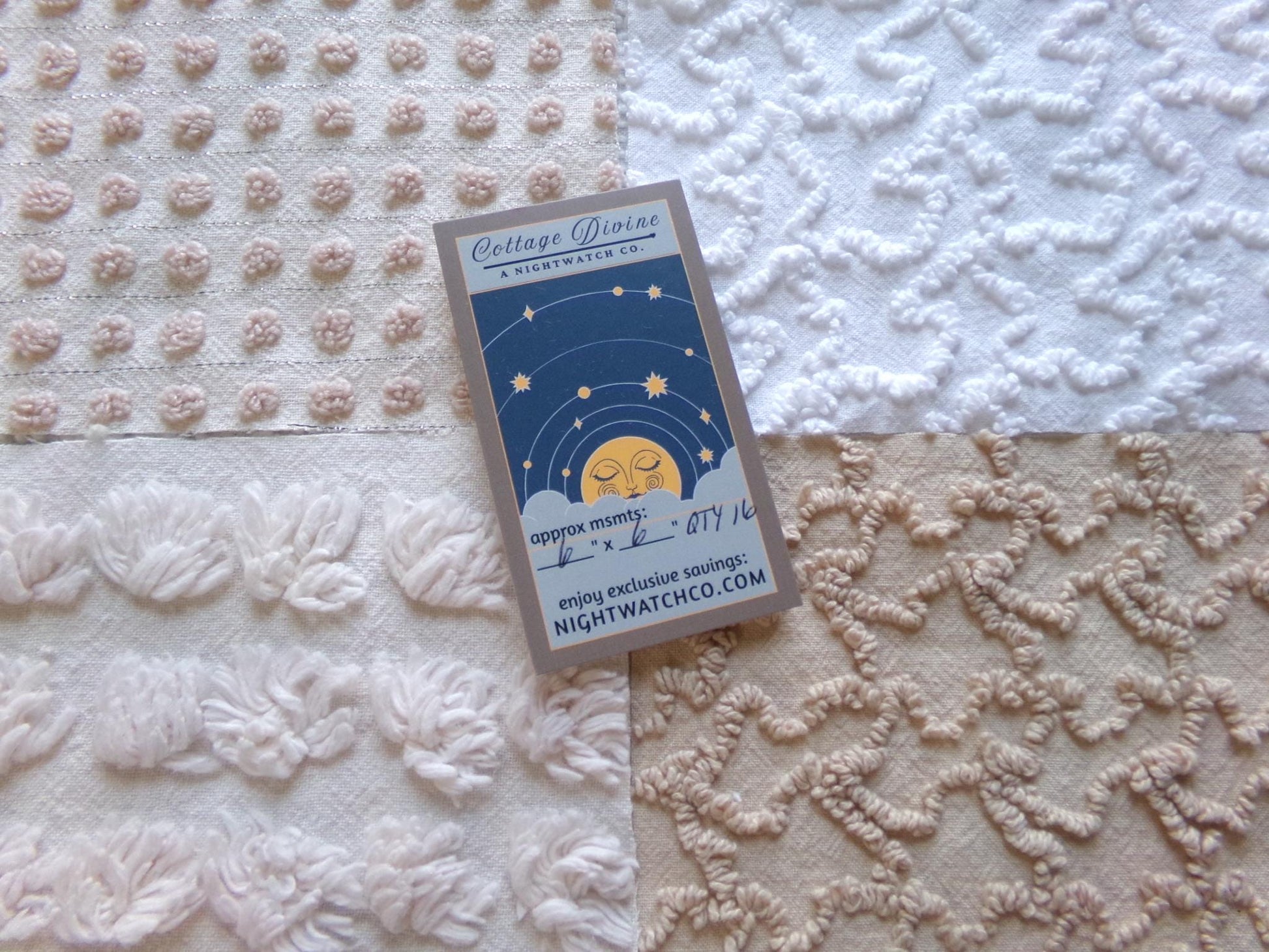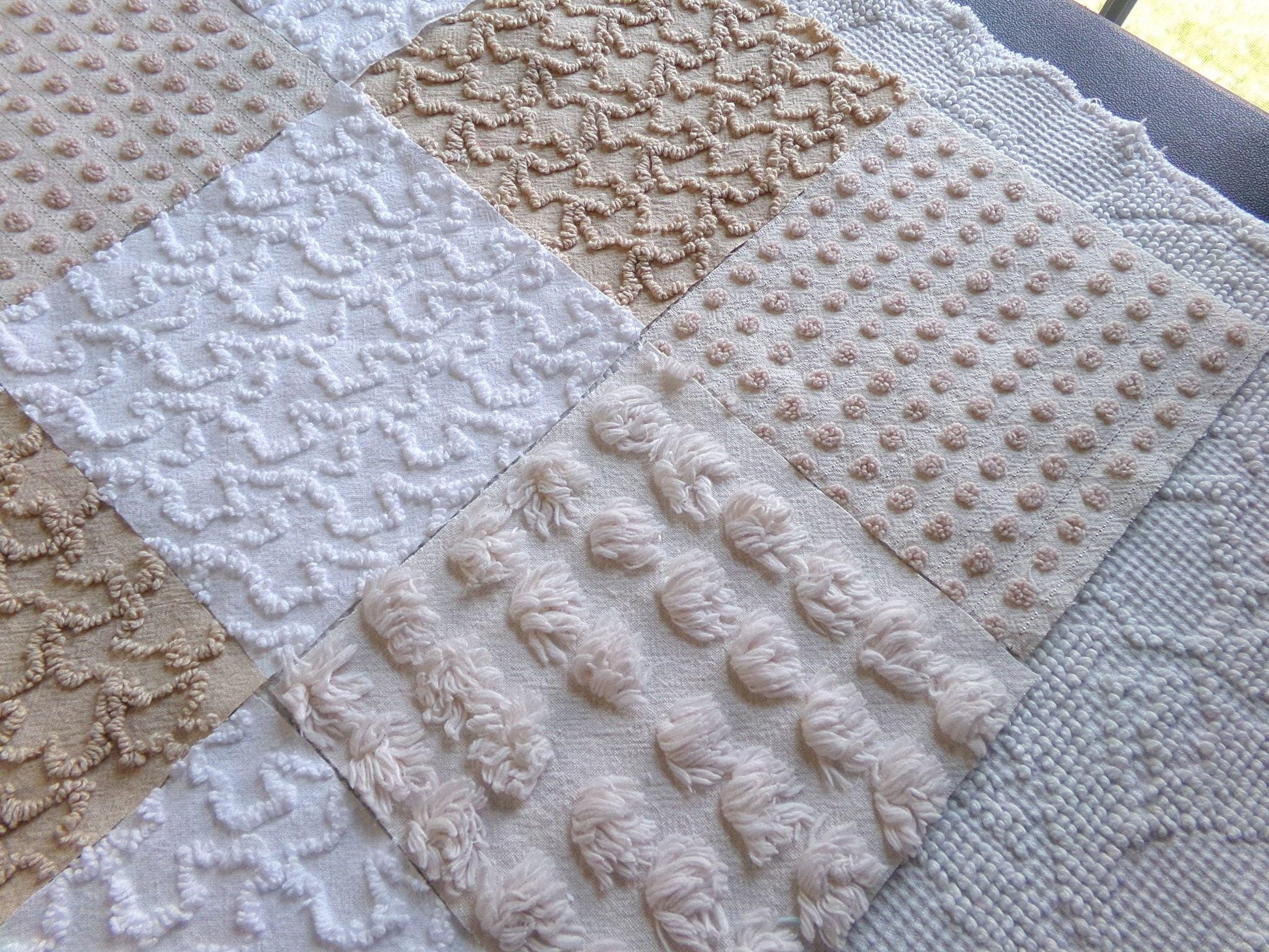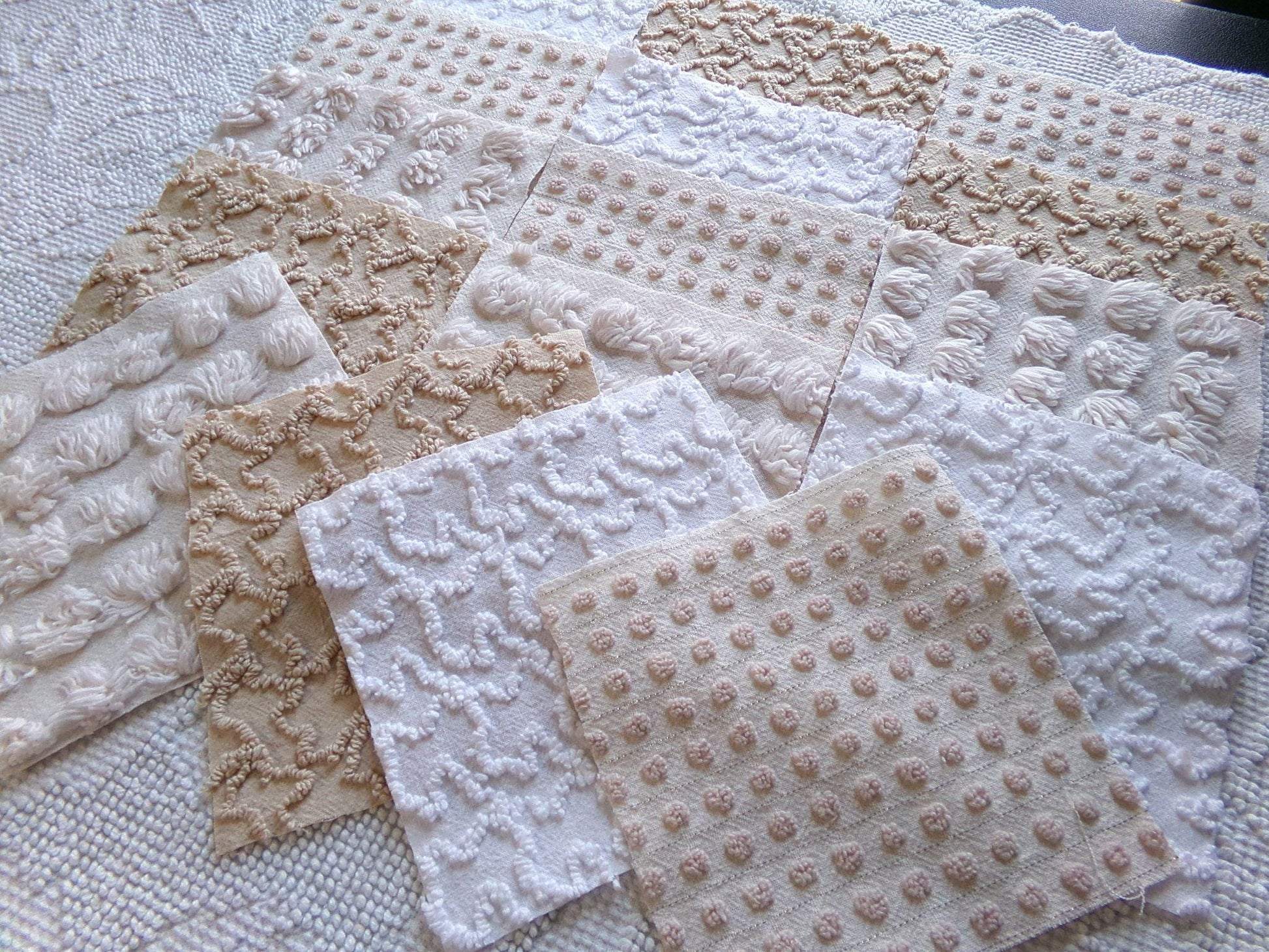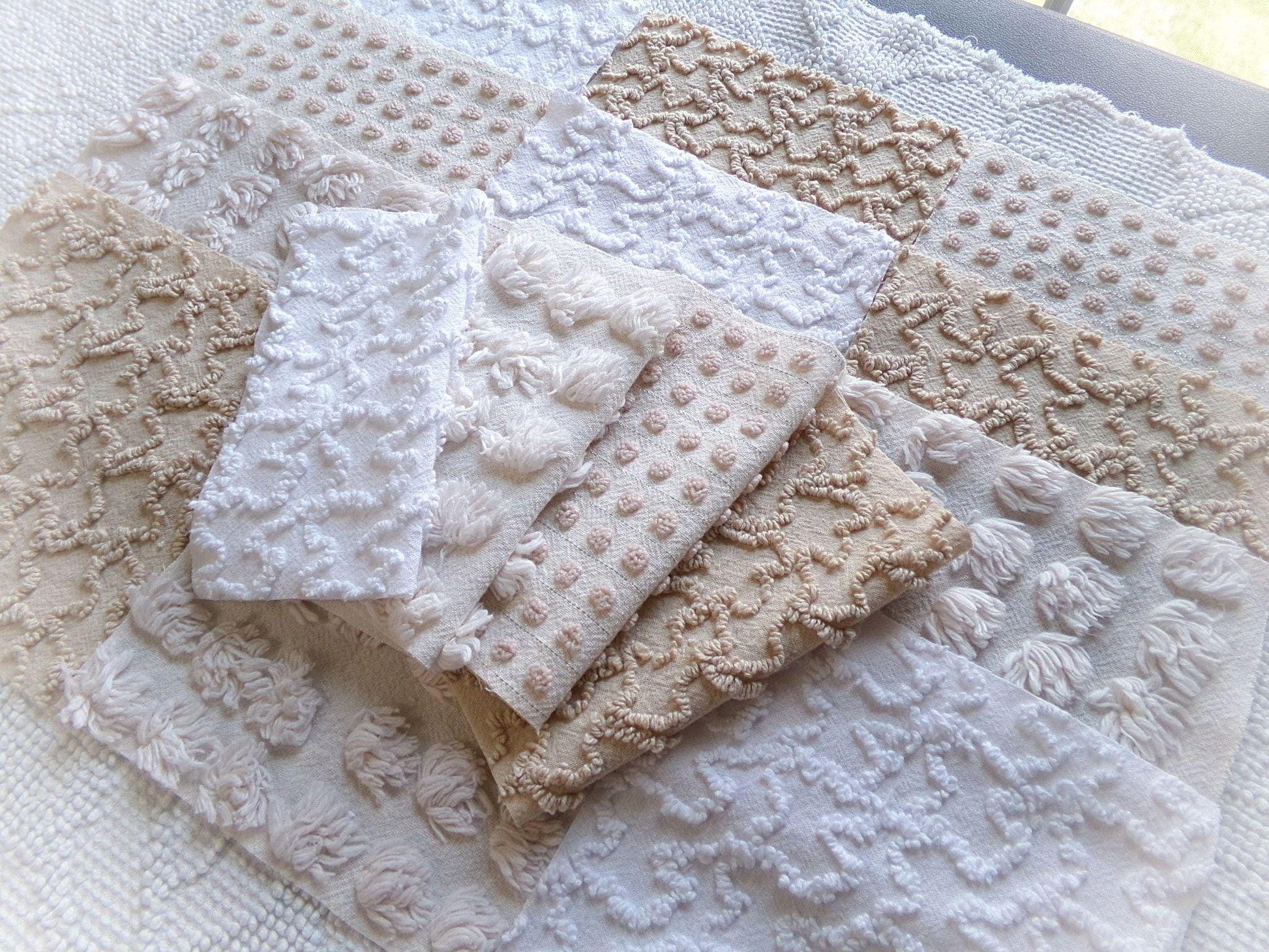 see more, cottagedivine.com"Neutral Modern" ... This is a great set of 16 vintage chenille fabric squares emphasizing timeless chic modern colors of natural nude, sand dune, white and hints of cream.