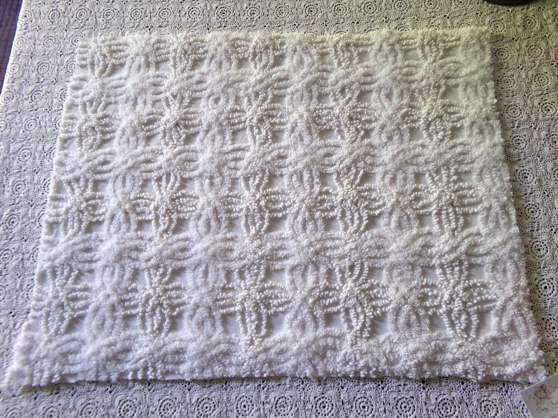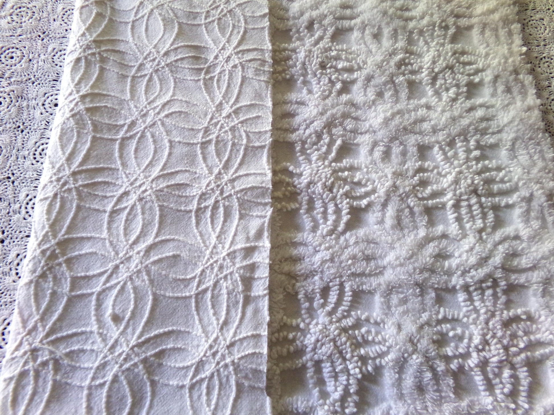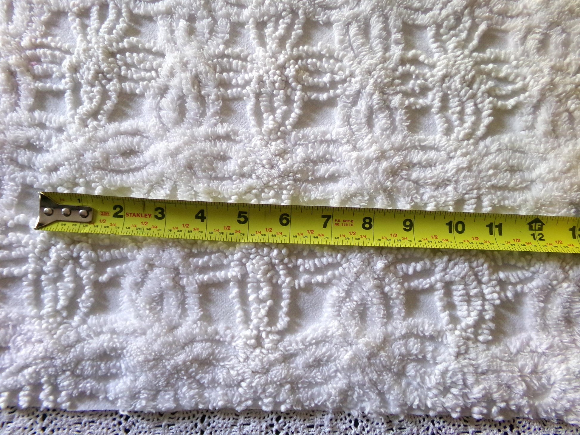 A gorgeous approx 18" x 23.5" inch piece of vintage chenille fabric, featuring a heavenly wedding ring pattern in a duo of needletuft work and traditional chenille tufting. This gives an incredible depth & dimension not typically seen even with some of the more elaborate wedding ring patternsIn average light, I'd consider this to be a creamy antique white - not super bright optic white. Ultra plush with dense tufting, this is an exquisite piece to inspire a special project..w h a t - t o - k n o w-this is a vintage fabric piece, not an entire bedspread