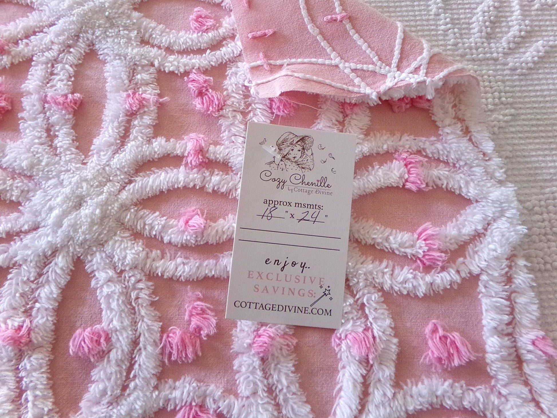 What will you create with this pretty chenille fabric? It's in a perfectly pink colorway, with plush white tufted wedding rings accented by sprinkle pink pops. Feminine, fun and fabulous. Approx 18" x 24" inch piece. Lightweight cotton original fabric from an early Morgan Jones chenille bedspread. w h y - v i n t a g e? Incorporating vintage fabric into your project brings unique benefits: an unparalleled charm, a whisper of nostalgia...a deep-rooted history embedded in every fiber. Not only is the quality often superior to modern, vintage fabric is a sustainable choice - an eco-friendly option that stands out in a world consumed by mass-produced goods. For your next cherished design, think vintage 3 w h a t - t o - k n o w - this is a vintage fabric piece, not an entire bedspread - expect vtg attributes such as age spots, pulled threads, color variances, etc. - items are laundered/stored near fragranced products - combined shipping available; overages over $1 refunded t h e - c o t t a g e - d i v i n e From the tiniest quilt square to elaborately tufted chenille bedspreads & lovingly handcrafted robes, we are committed to honoring the legacy of this beloved textile.