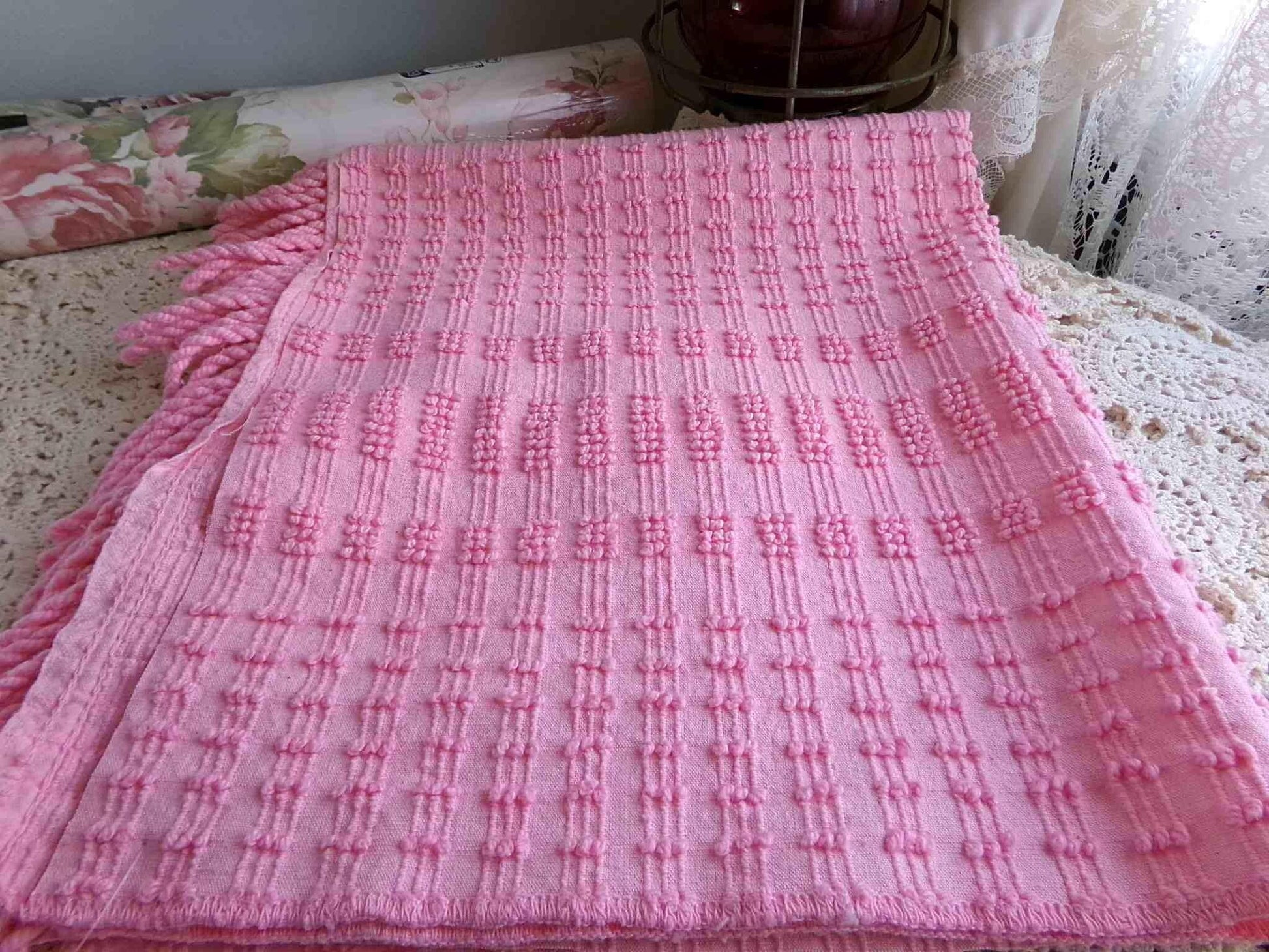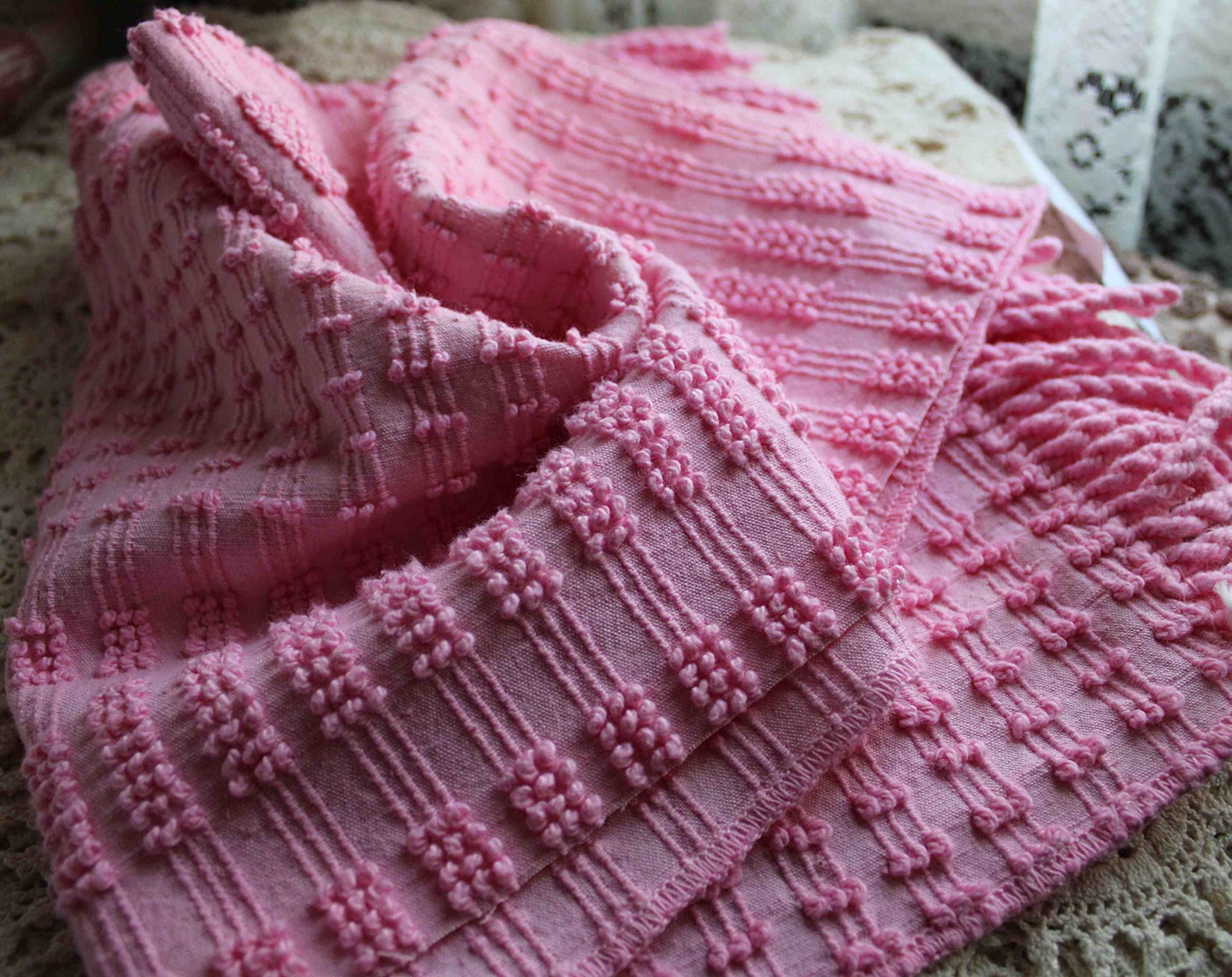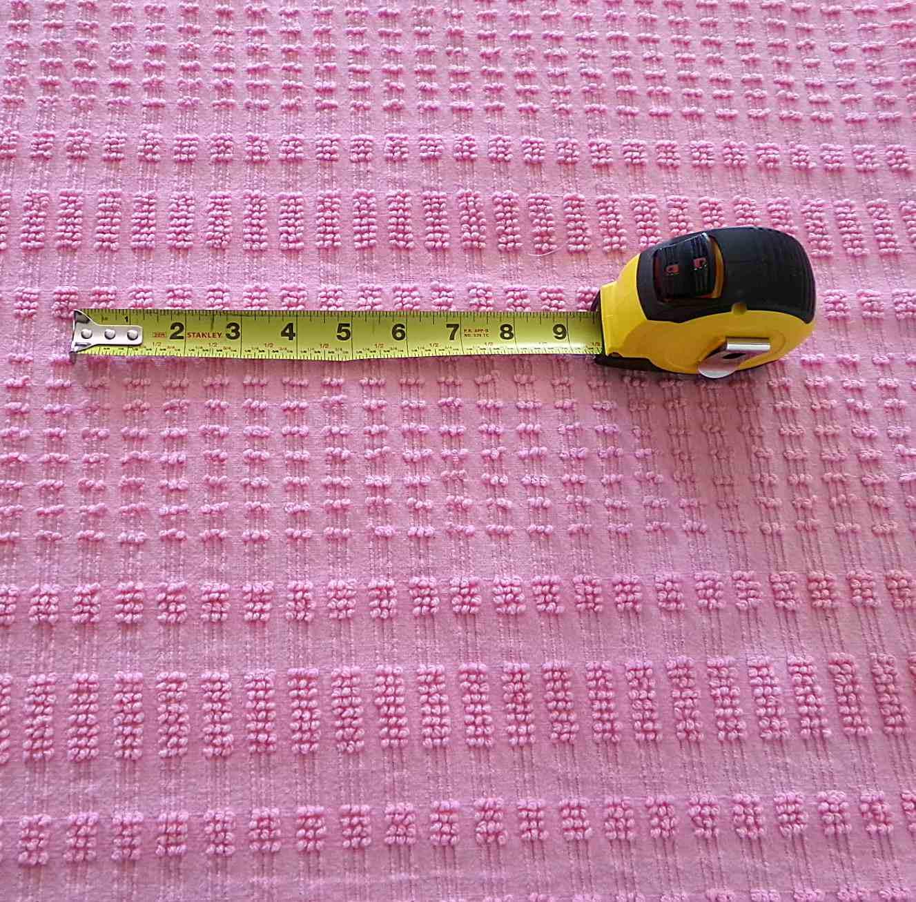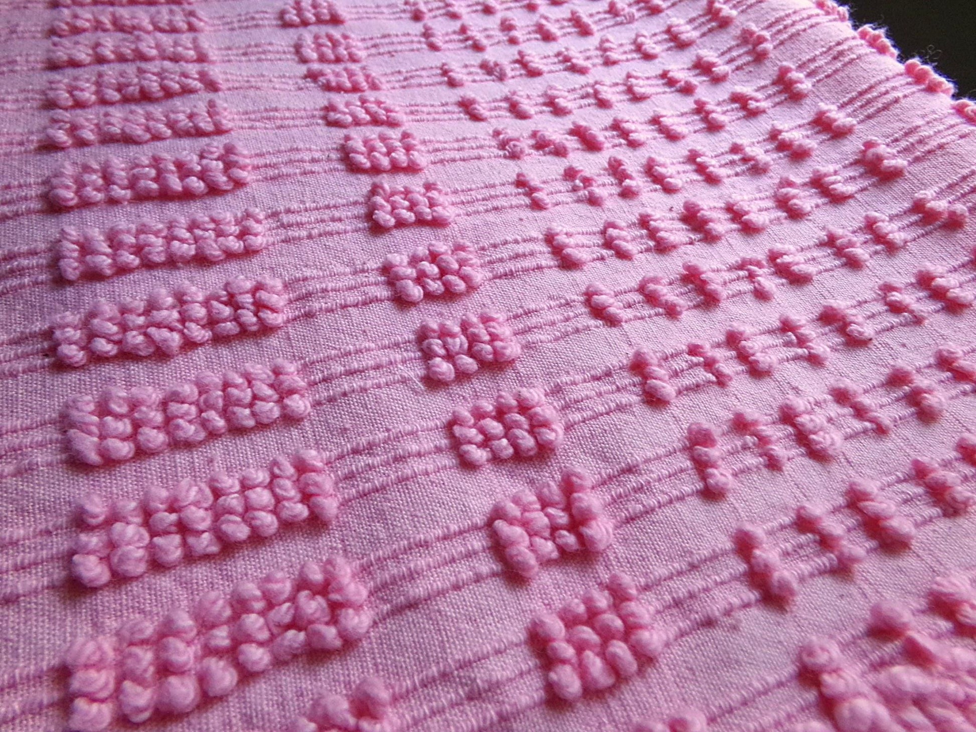 Add pretty pink color and great nubby texture to your sewing project with this 20" x 24" inch piece of vintage chenille fabric. An interesting design of raised, texturized "pearl" pops connected by skinny lines creates a very unique presentation. Beautiful rich shade of feminine pink.100% strong cotton, this fabric was sourced from a never used, NOS vintage Canada-made chenille woven hobnail bedspread. Excellent quality. All photos taken in natural light.