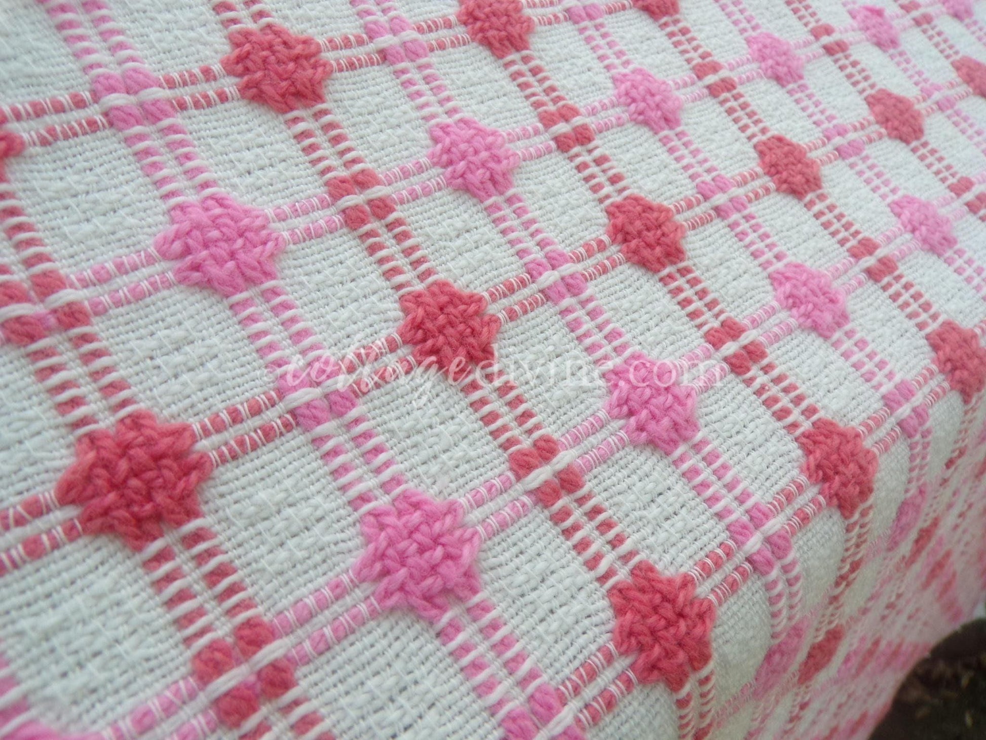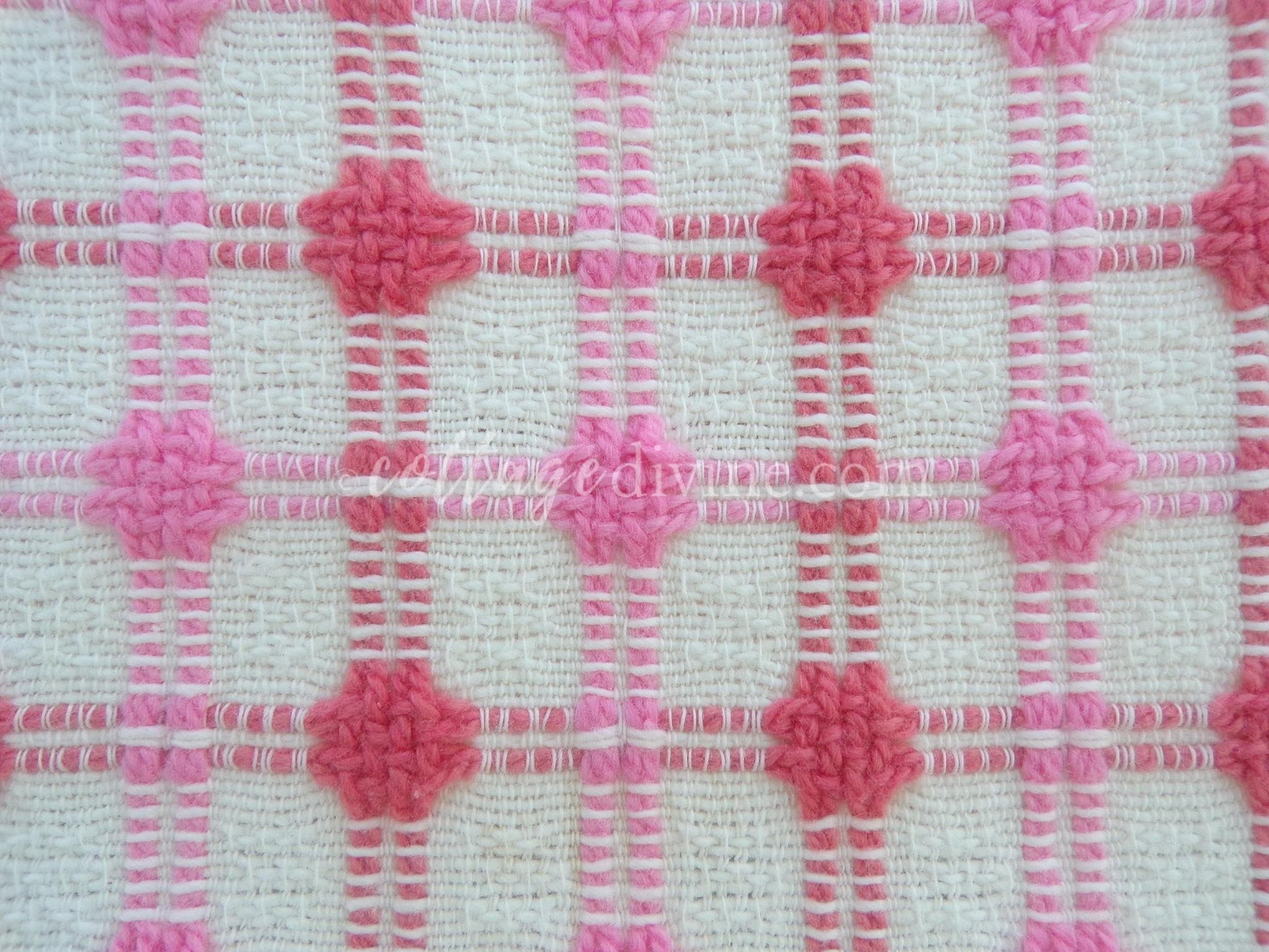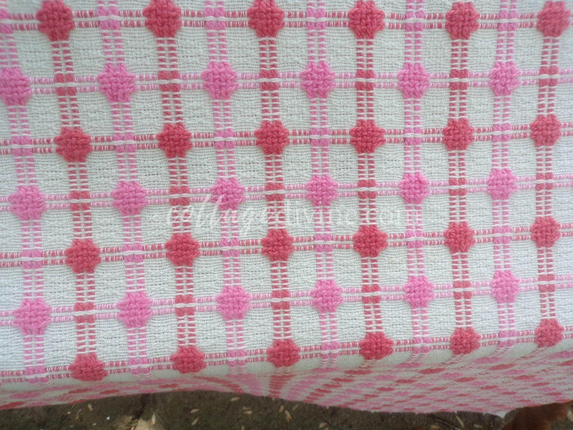 Yummy coordinating shades of strawberry pink in a seldom seen, fun retro pattern make this woven fabric a standout. Love those lightly raised chenille tufted circular candy dots...Measures approx 18" x 24" inches.This is a primarily woven fabric sourced from an original Bates bedspread - only the dots are chenille. This makes it much different from more traditional chenille in both texture and presentation. Strong fabric ideal in a range of creative designs.