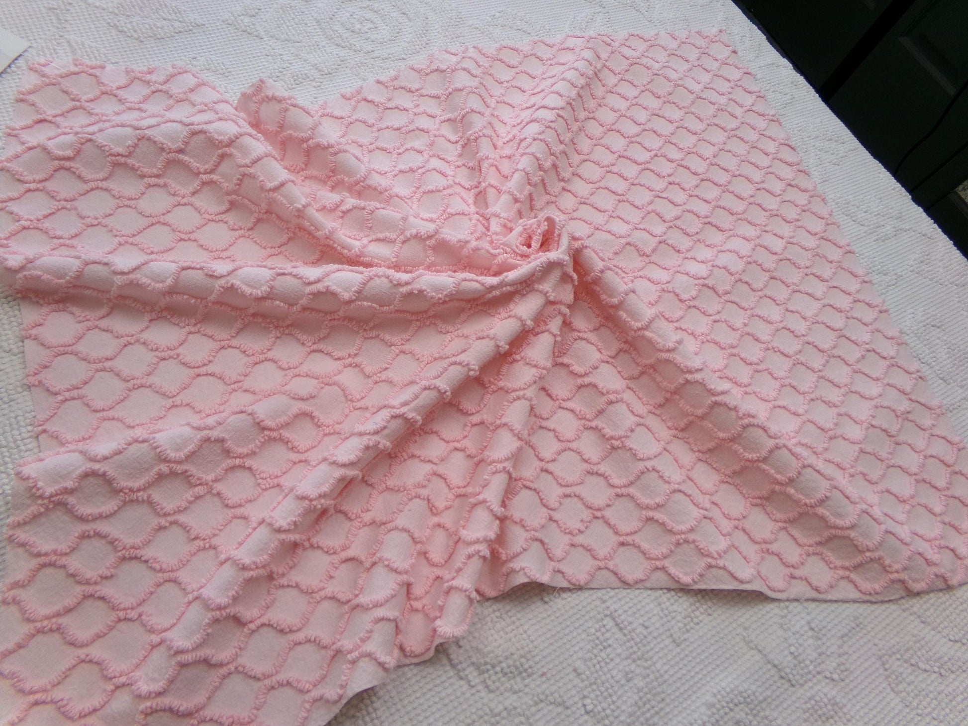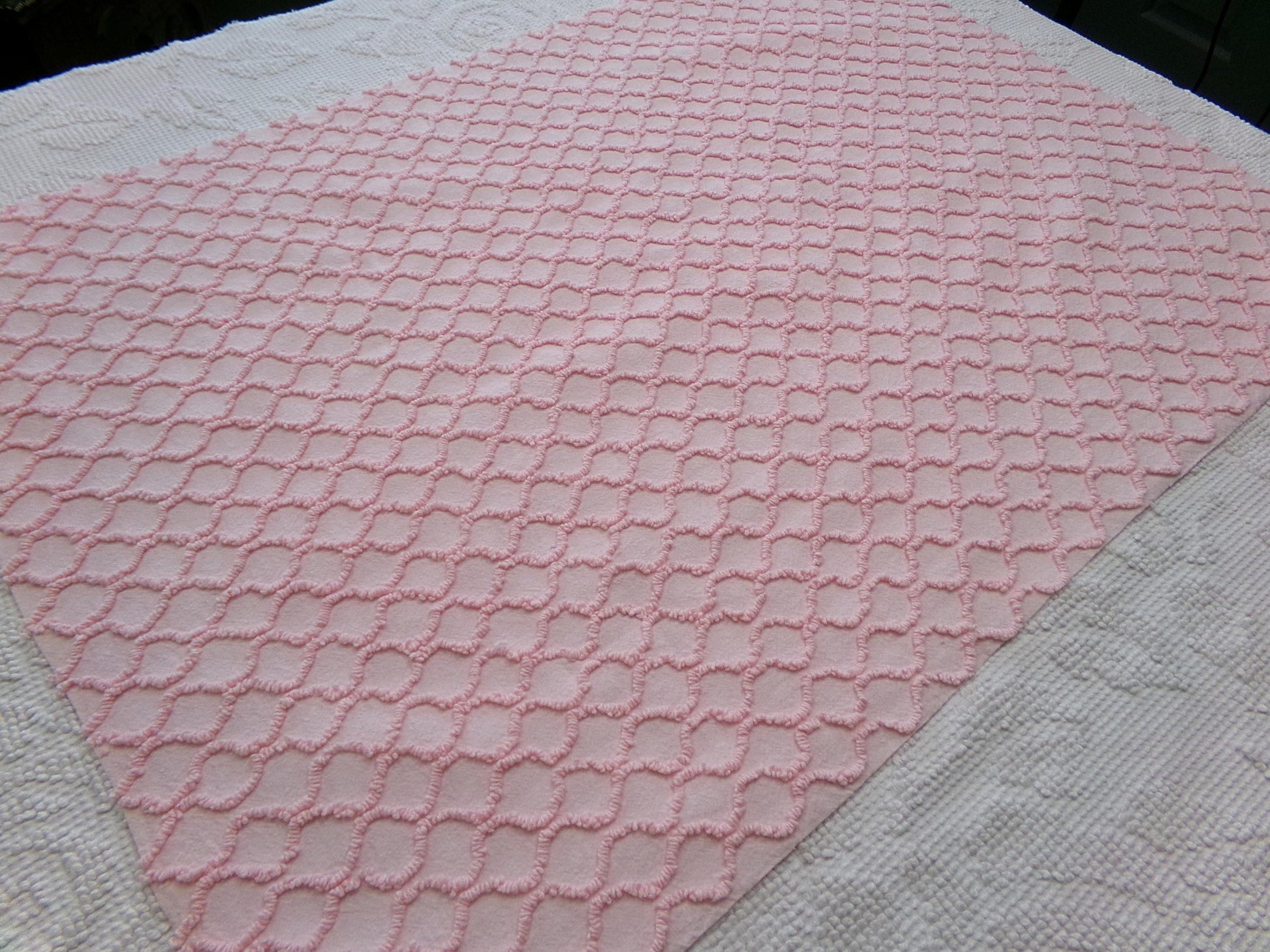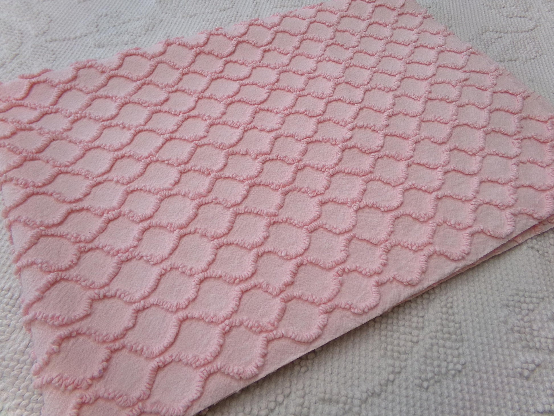 Vintage chenille fabric in a wonderful shade of precious pink, delicately tufted with texturized eternity link designs. Sew easy to work with; it's an ideal fabric for feminine, cottage style, shabby chic projects because it offers the right amount of texture and a beautiful color without overpowering.Key highlights: