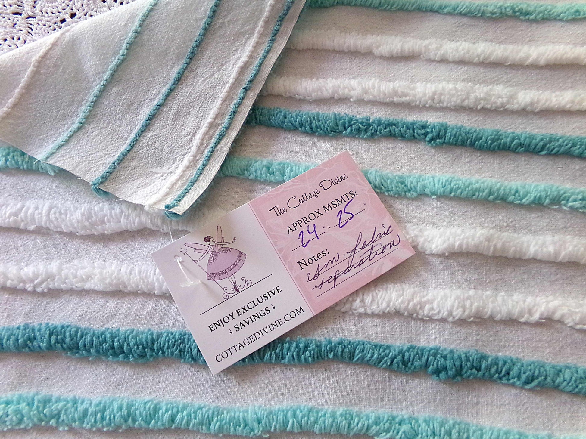 Envision this pretty chenille fabric inspiring your special project. Its unique design gives Midcentury Modern meets cottage chic vibes. Bow swags are the highlight, accented by contrast wideset stripe lines and a diamond waffle design.Approx 24" x 25" inch piece. Lightweight 100% cotton. Two-tone green characteristic of the MCM era on a white bkgd...small fabric separations, final imgs