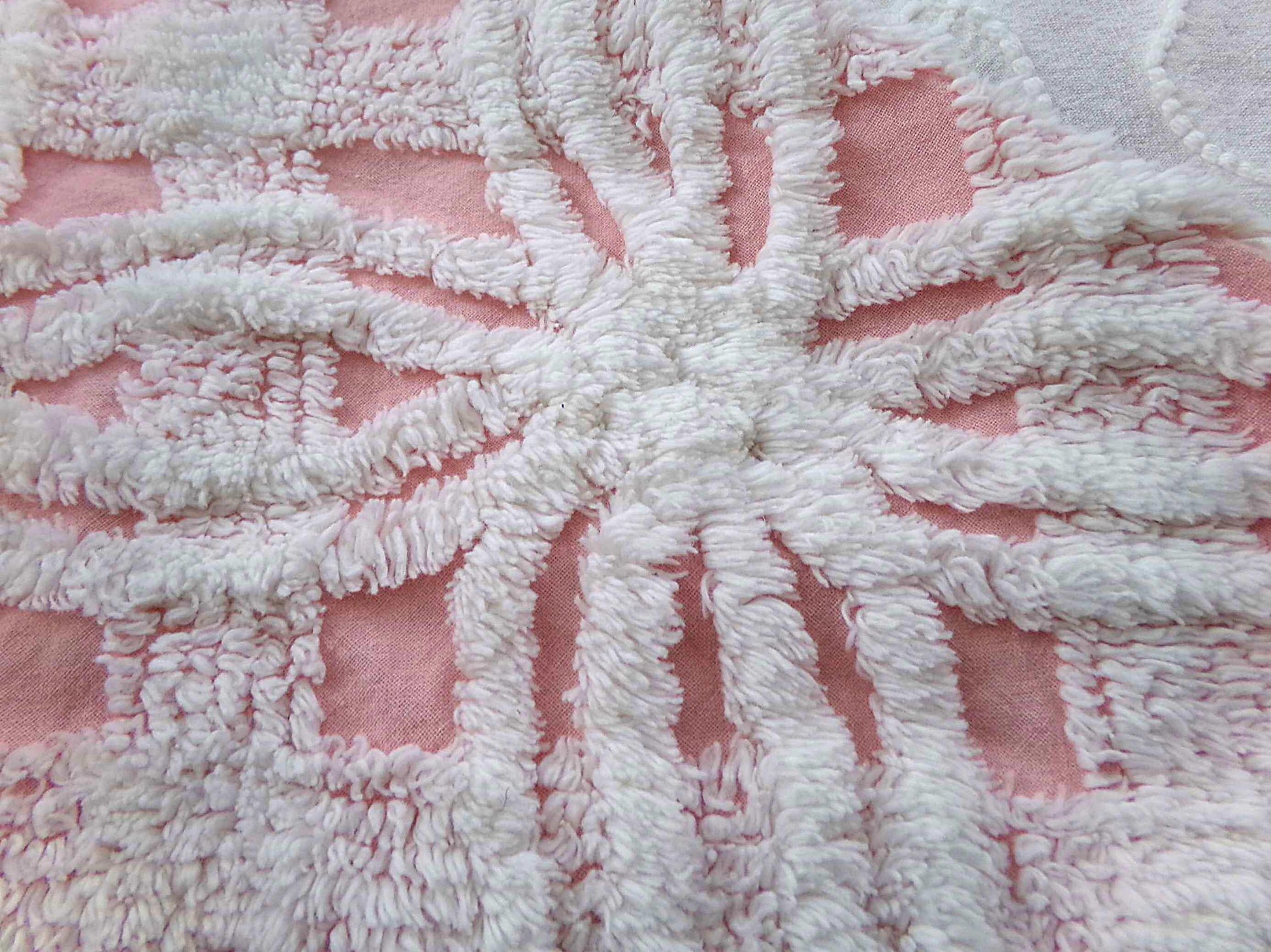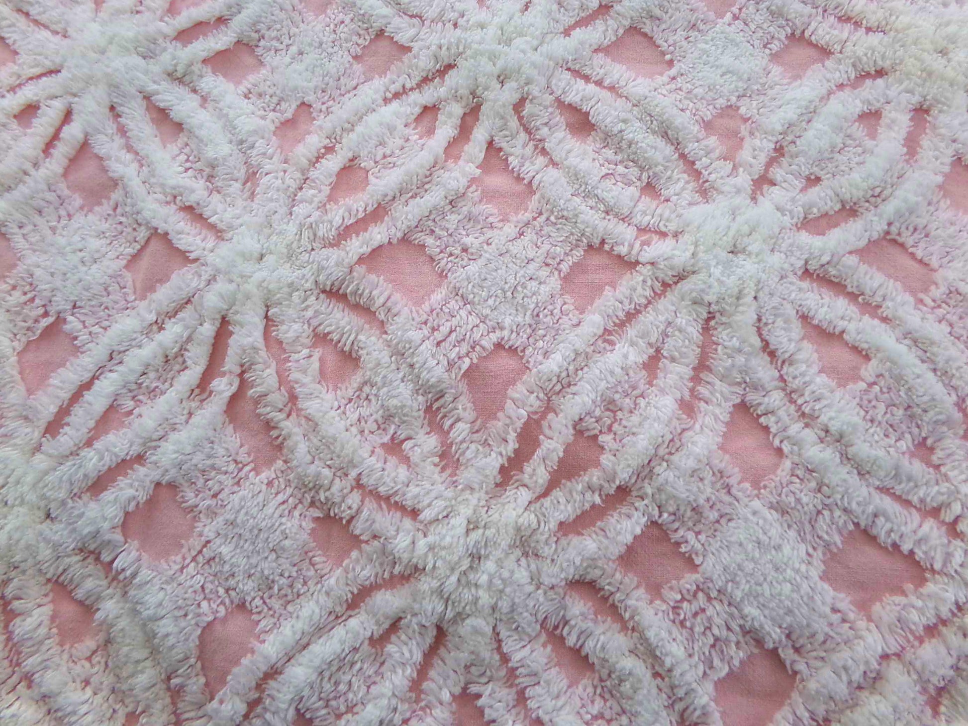 This popular pink & white fabric is a long-time favorite among quilters, who love it for the classic design and feminine colorway. Raised white "spider tufts" are intersected by thick cross lines for a striking visual presentation. Piece measures approx 24" x 20" inches. 100% quality vintage cotton. w h y - v i n t a g e? Incorporating vintage fabric into your project brings unique benefits: an unparalleled charm, a whisper of nostalgia...a deep-rooted history embedded in every fiber. Not only is the quality often superior to modern, vintage fabric is a sustainable choice - an eco-friendly option that stands out in a world consumed by mass-produced goods. For your next cherished design, think vintage 3 w h a t - t o - k n o w - this is a vintage fabric piece, not an entire bedspread - expect vtg attributes such as age spots, pulled threads, color variances, etc. - items are laundered/stored near fragranced products -ALWAYS color test fabric to ensure it doesn't run. Most vintage fabrics ARE NOT colorfast; this is a particular risk in vintage reds, bright pinks, indigo blues & other vivid colors. - combined shipping available; overages over $1 refunded t h e - c o t t a g e - d i v i n e From the tiniest quilt square to elaborately tufted chenille bedspreads & lovingly handcrafted robes, we are committed to honoring the legacy of this beloved textile.