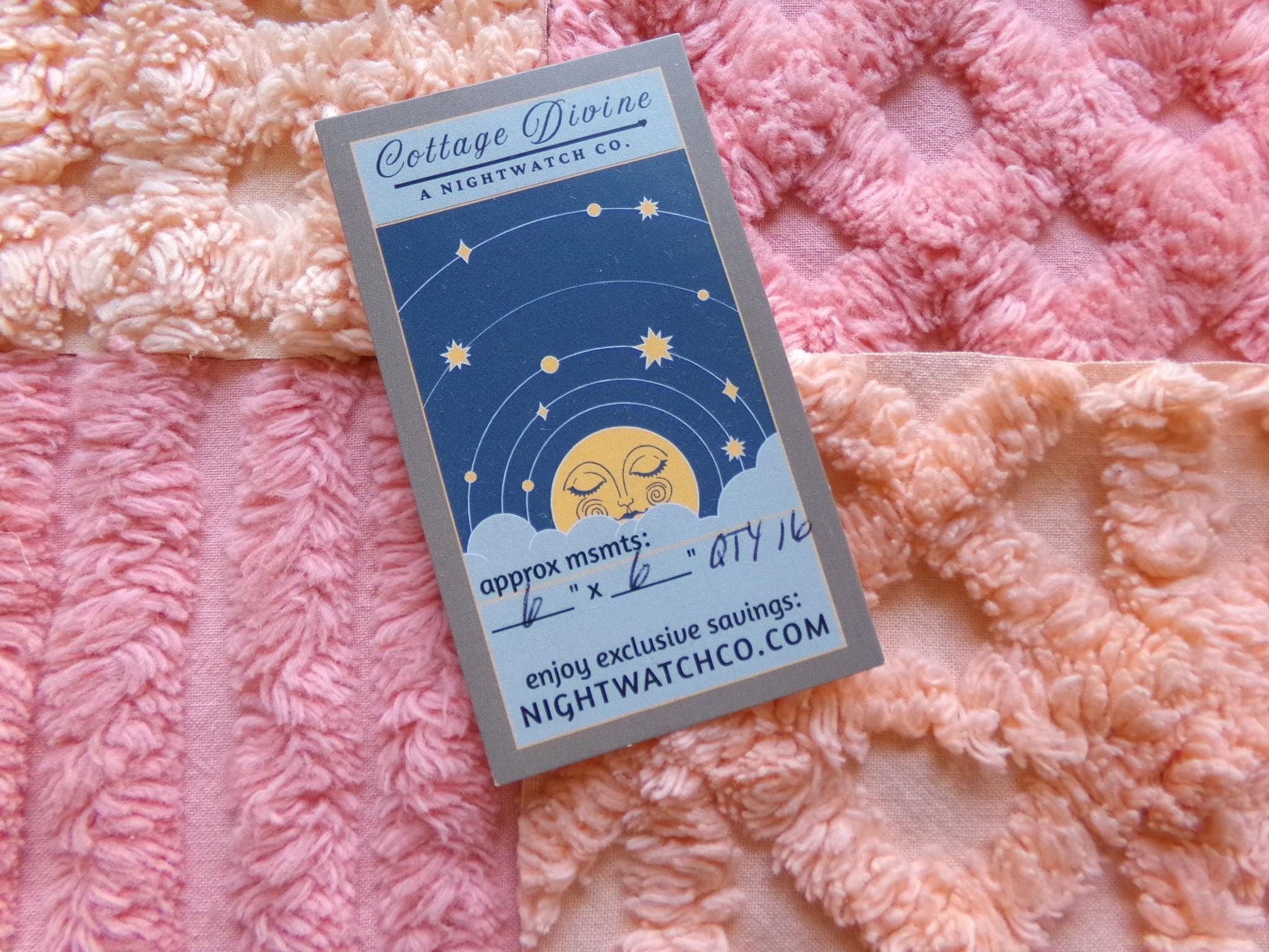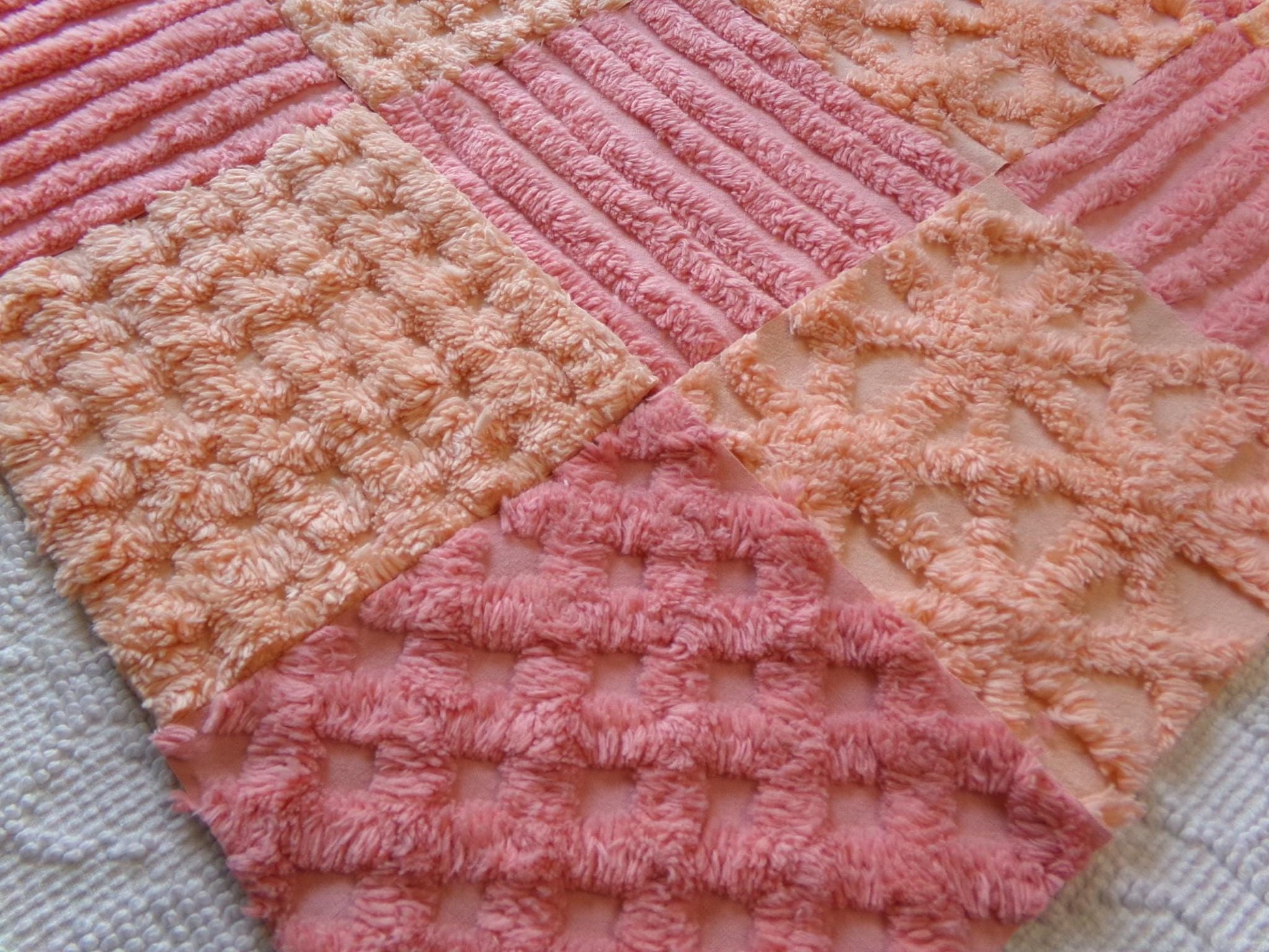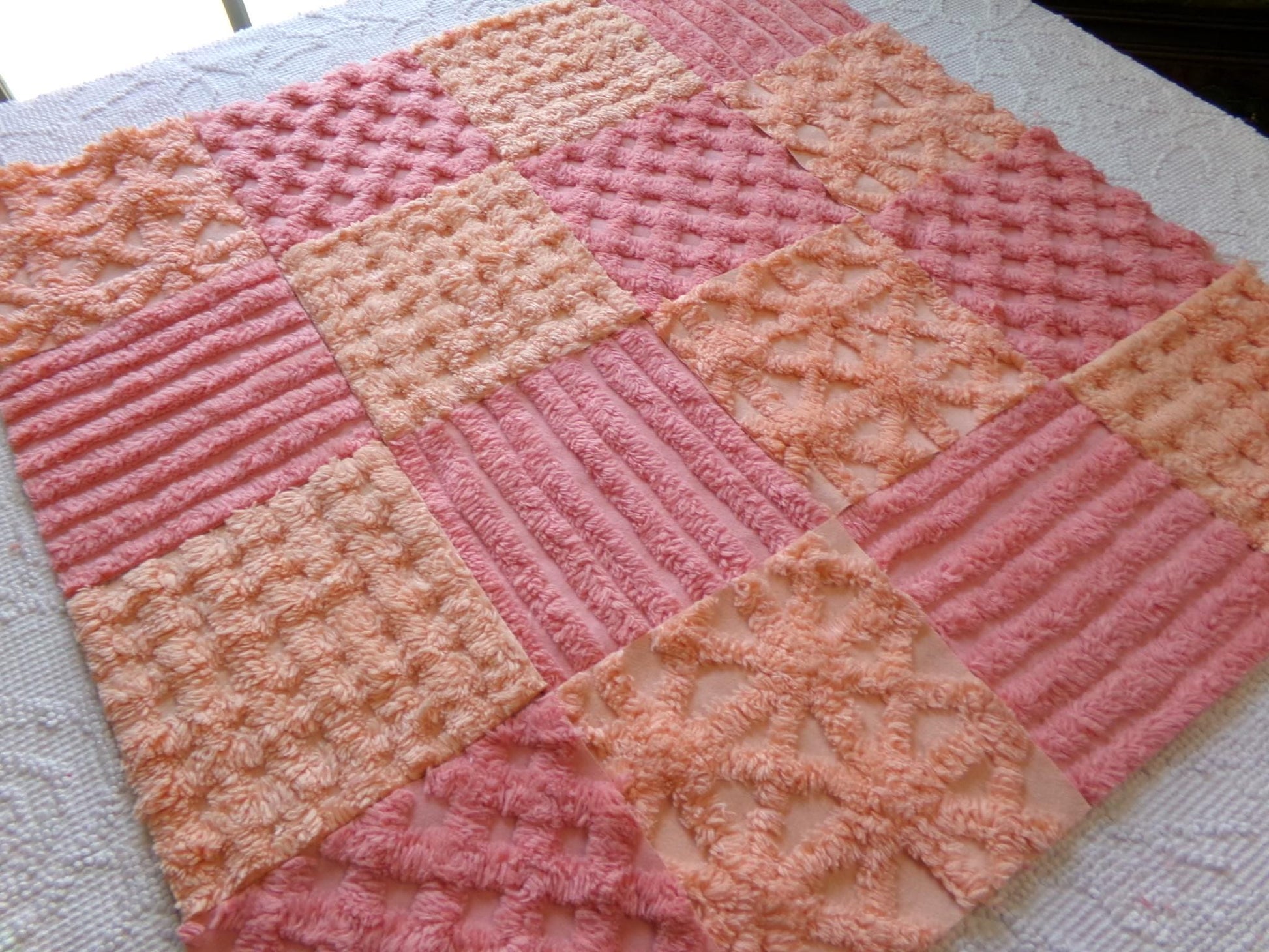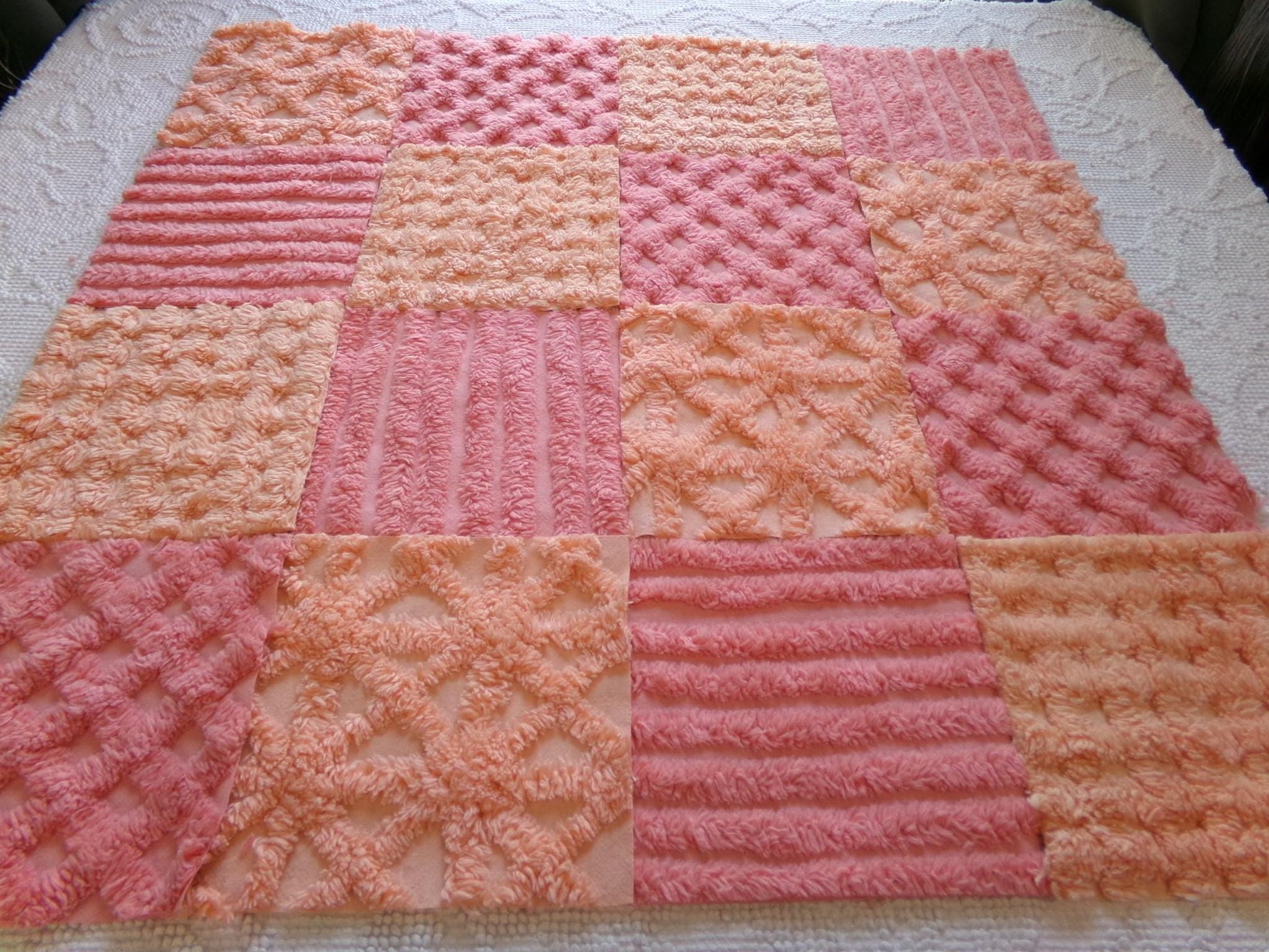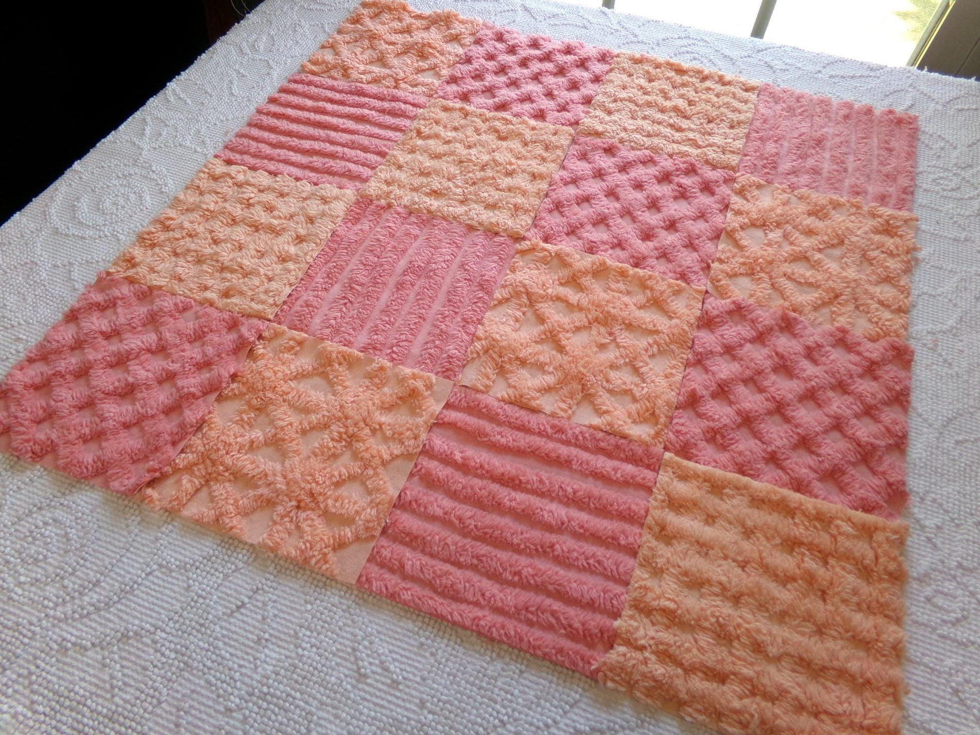 Inspired by the delicious colors of raspberry peach sherbet, here is this delightful set of 16 vintage chenille fabric squares. These are some of the most plush chenille squares I have right now, and the color selection is just fabulous.::total qty: 16 chenille quilt squares