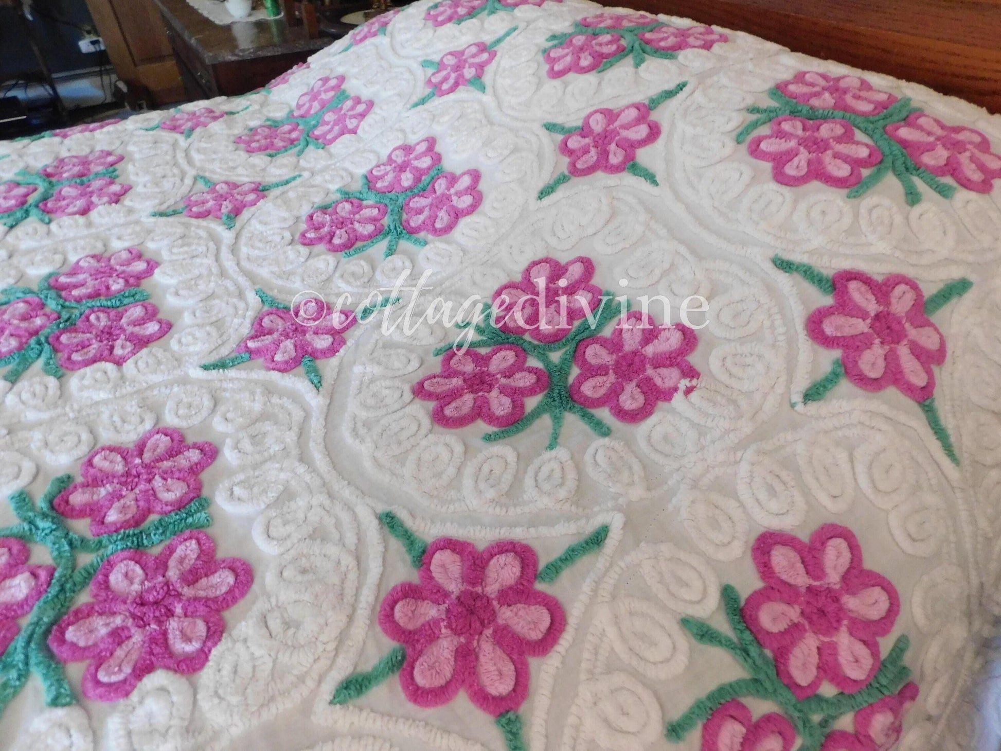 Shabby chic. Cottage style. Farmhouse chic. The Cottage Divine specializes in a blend of all three, emphasizing a curated selection of chenille bedspreads, robes, fabric, quilt squares & moreWhy vintage chenille? Because of its availability in an endless array of colors & textures...its unique ability to adapt to both vintage and modern settings...Wherever it is incorporated, chenille infuses an unmatched warmth & nostalgiaOh, one little mention: once it enchants you, a single piece of chenille will quickly multiply - and you'll never quite have enough 🌷