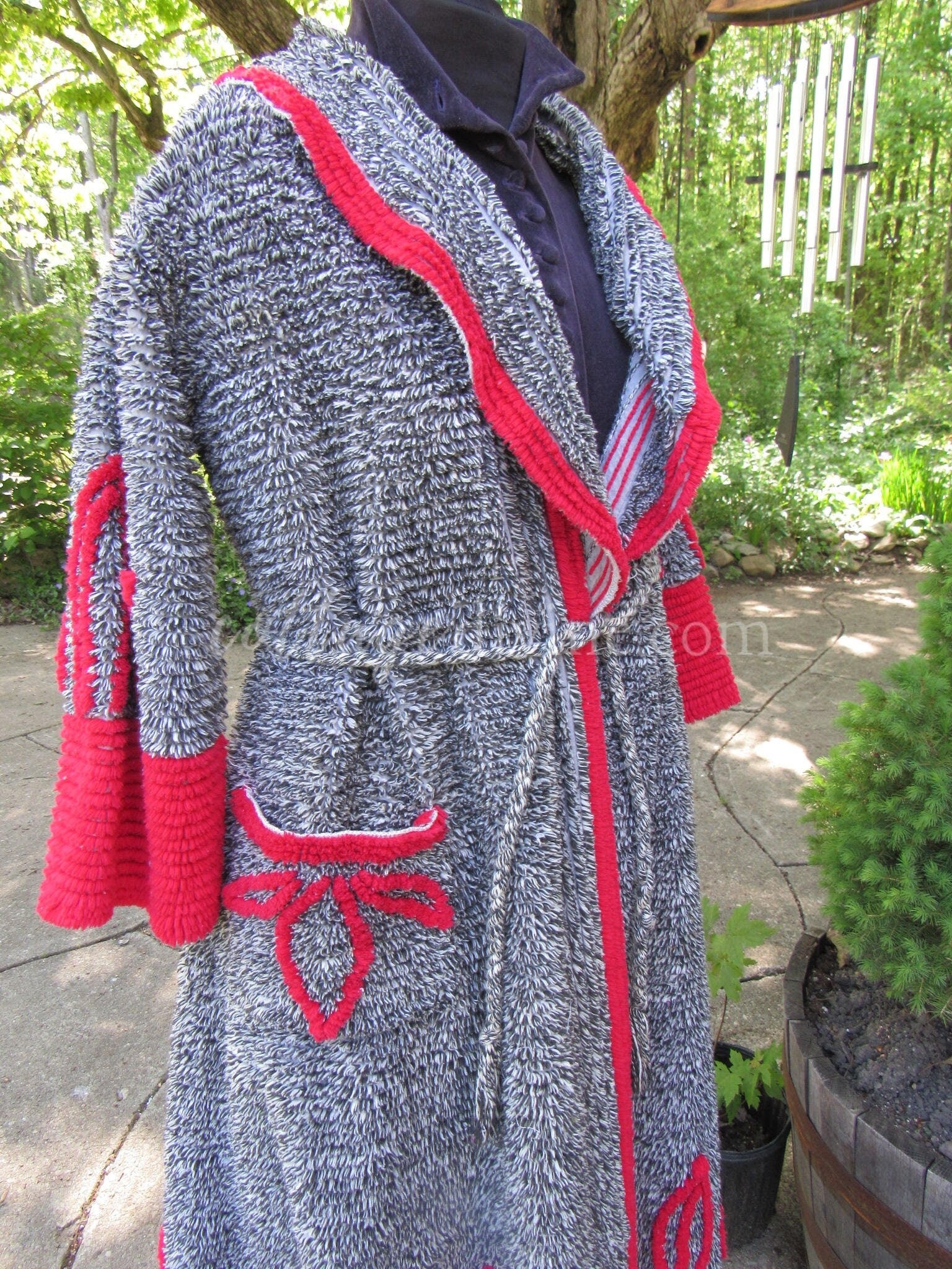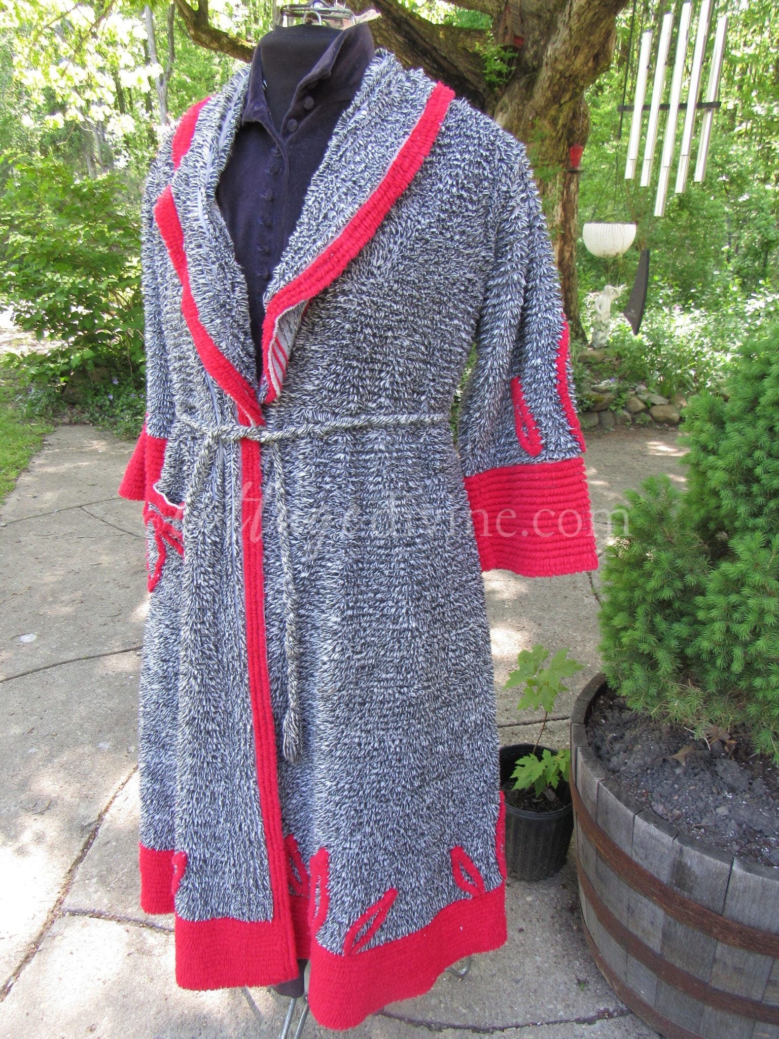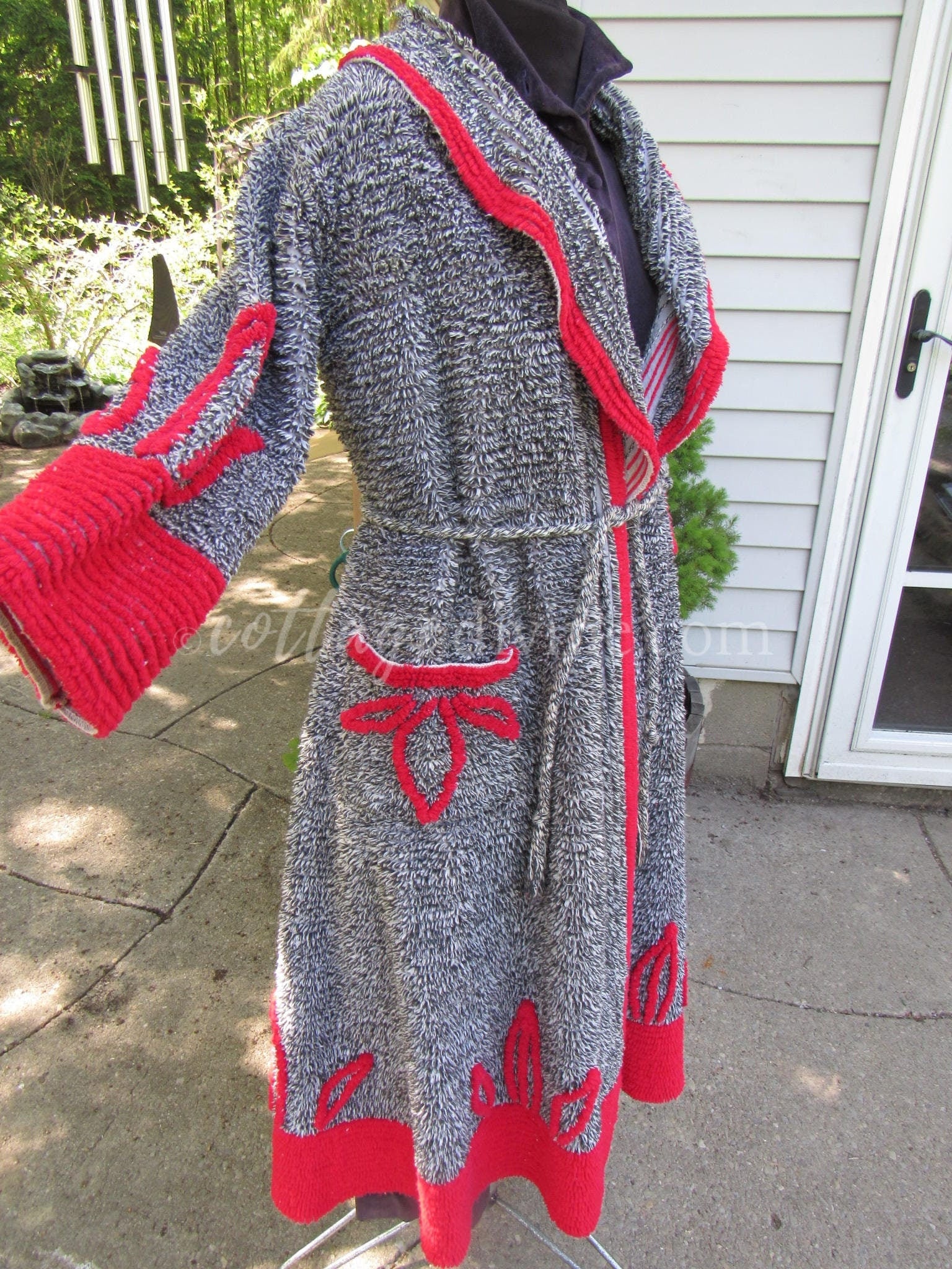 see more, cottagedivine.comI just adore the playful "salt and pepper" speckled colorway on this beauty - and those gorgeous hot red accents just make it pop! You know how some vintage pieces just have that special something? This robe definitely has it.