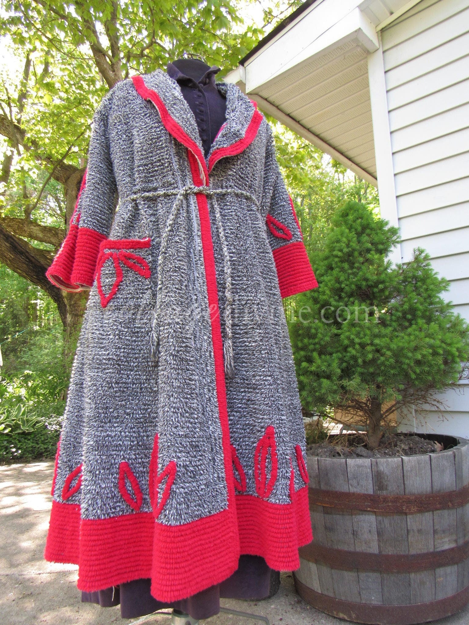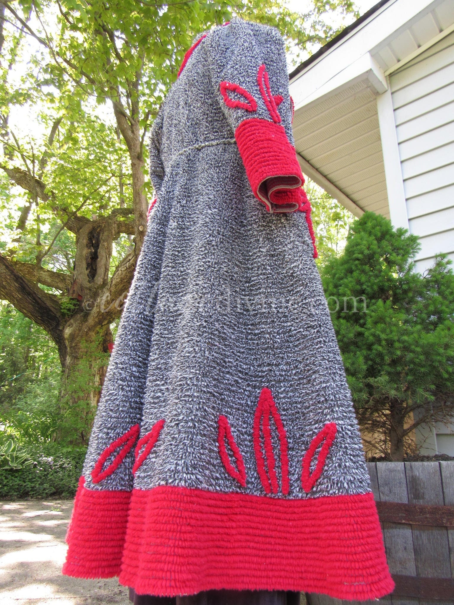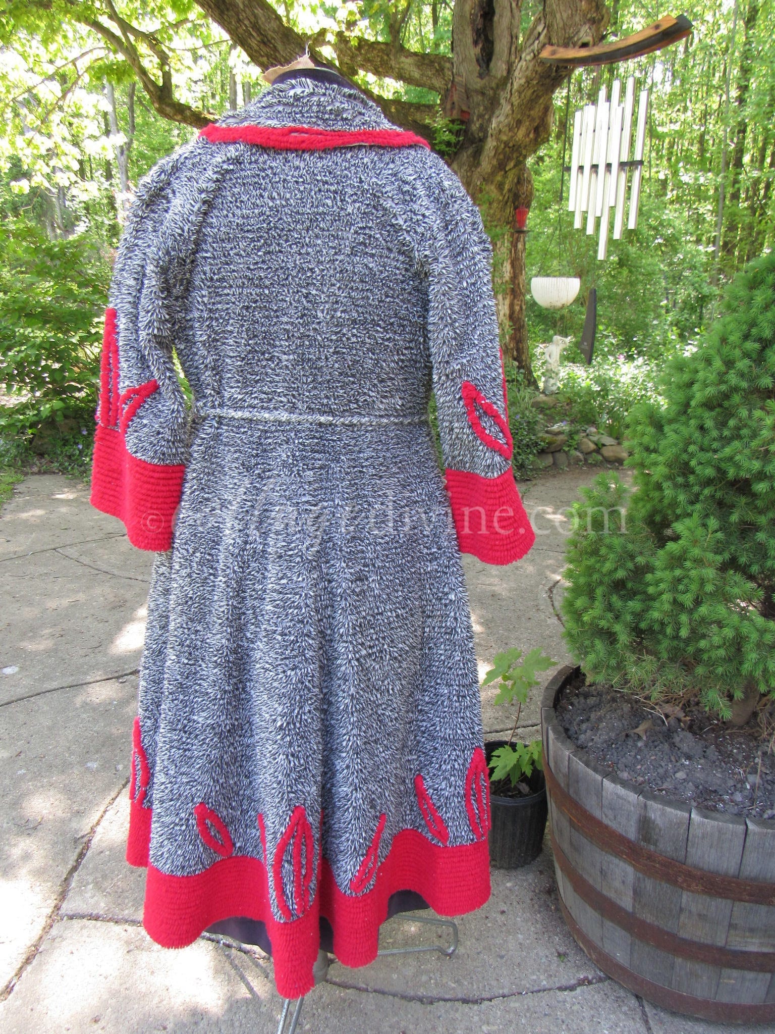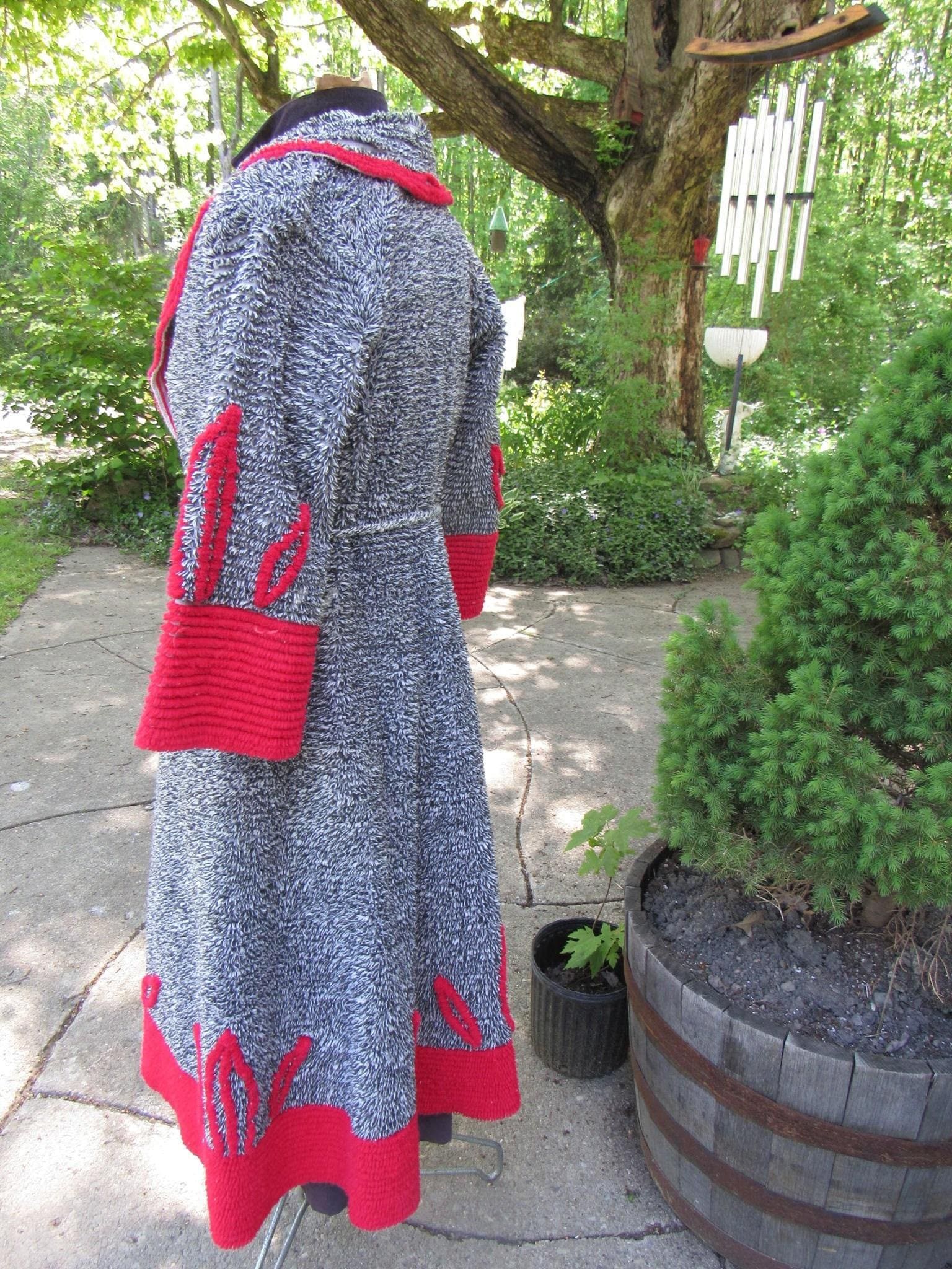 see more, cottagedivine.comI just adore the playful "salt and pepper" speckled colorway on this beauty - and those gorgeous hot red accents just make it pop! You know how some vintage pieces just have that special something? This robe definitely has it.