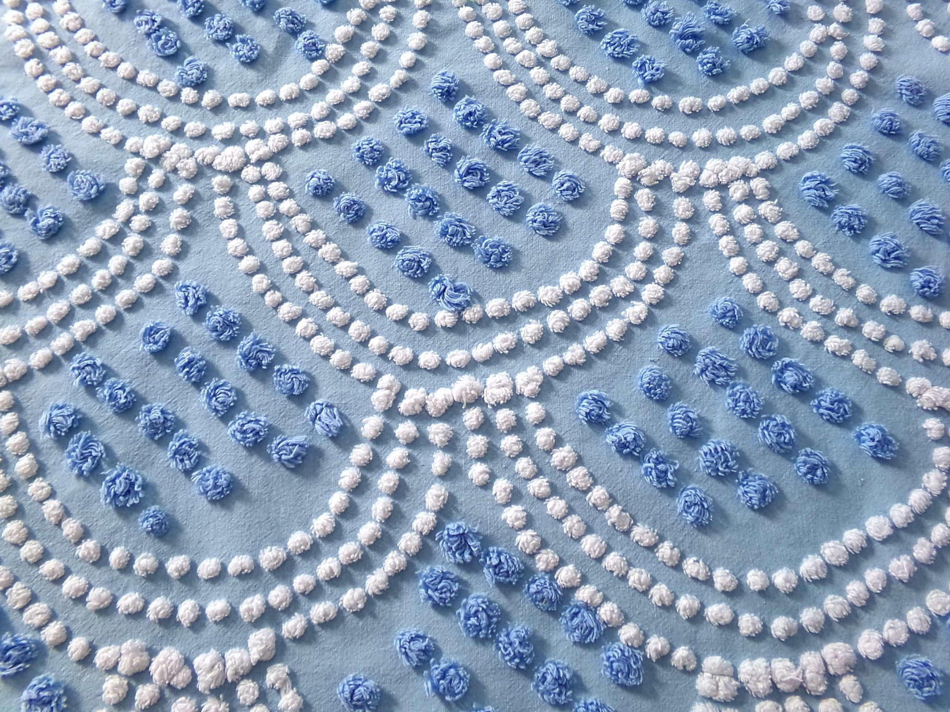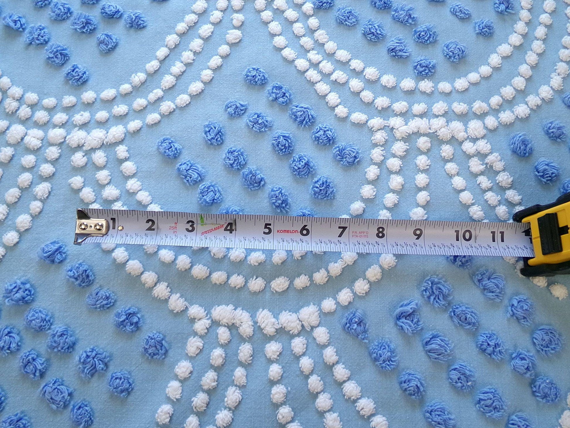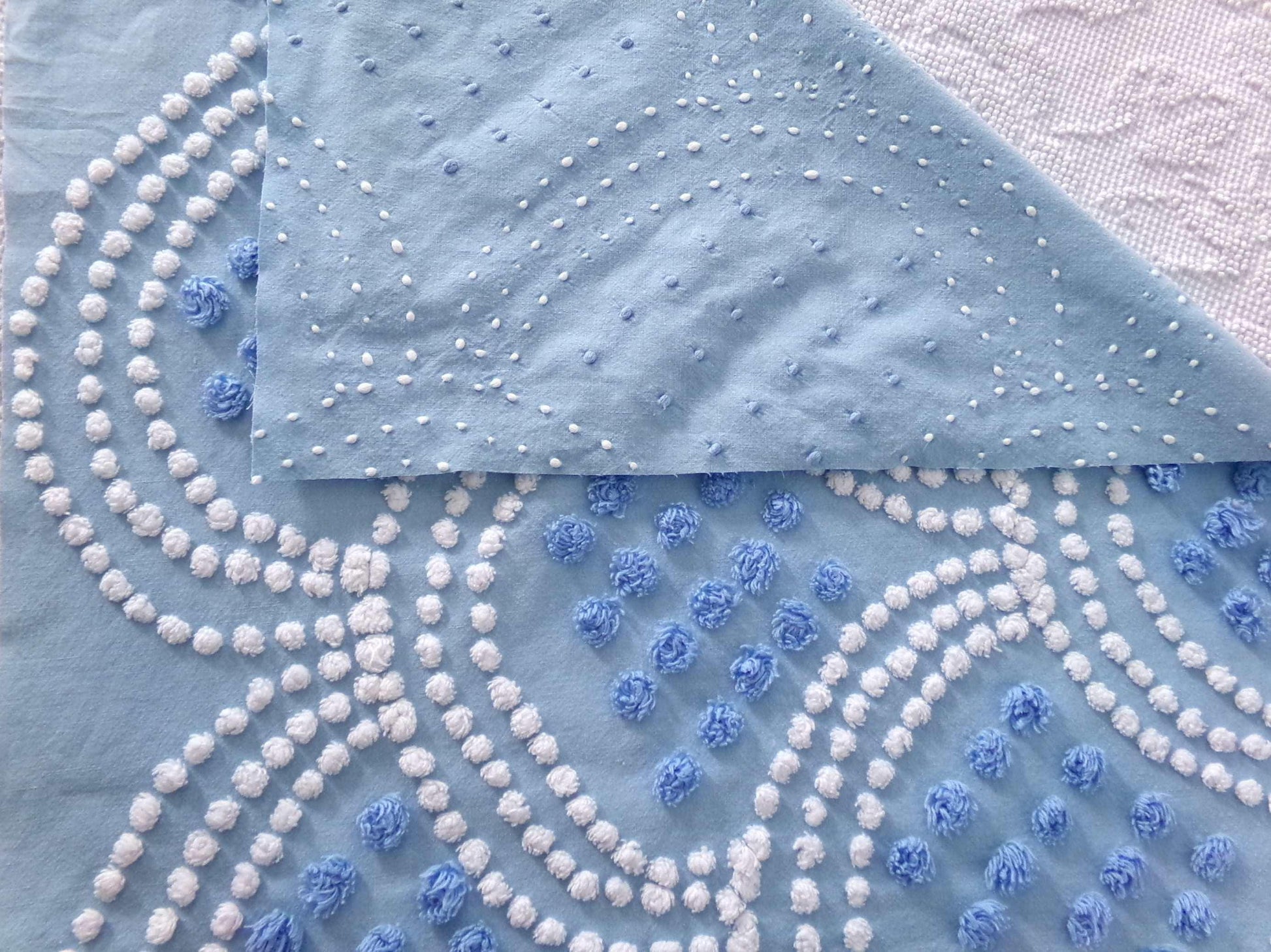 Breezy, beachy blue fabric is tufted with beautiful seashell scallops in little contrast pops. This is handtufted antique chenille fabric from the late 1930s or early 1940s in an exquisite design that will enhance any creative design it's incorporated into. Piece measures approx 24" x 20" inches, slightly irregular shape. Pattern placement may vary slightly. 100% vintage cotton. Common to the fabric given its handmade nature, you may spot a few pinholes, missing tufts, light age marks, etc. w h y - v i n t a g e? Incorporating vintage fabric into your project brings unique benefits: an unparalleled charm, a whisper of nostalgia...a deep-rooted history embedded in every fiber. Not only is the quality often superior to modern, vintage fabric is a sustainable choice - an eco-friendly option that stands out in a world consumed by mass-produced goods. For your next cherished design, think vintage 3 w h a t - t o - k n o w - this is a vintage fabric piece, not an entire bedspread - expect vtg attributes such as age spots, pulled threads, color variances, etc. - items are laundered/stored near fragranced products - combined shipping available; overages over $1 refunded t h e - c o t t a g e - d i v i n e From the tiniest quilt square to elaborately tufted chenille bedspreads & lovingly handcrafted robes, we are committed to honoring the legacy of this beloved textile.