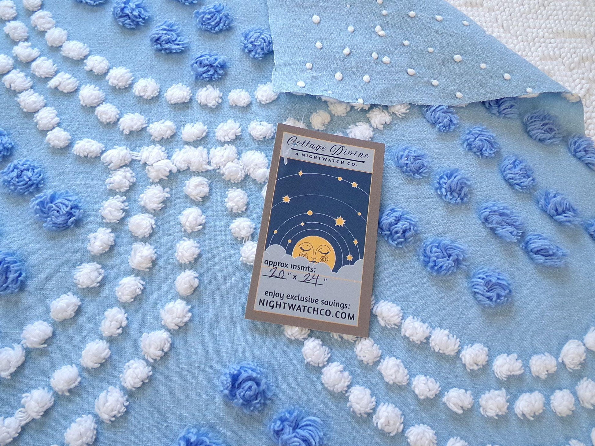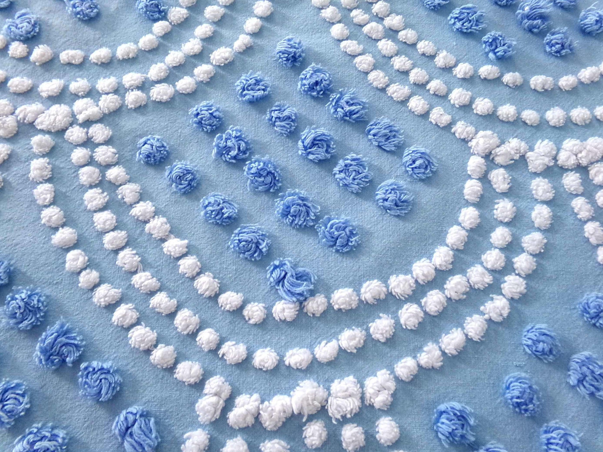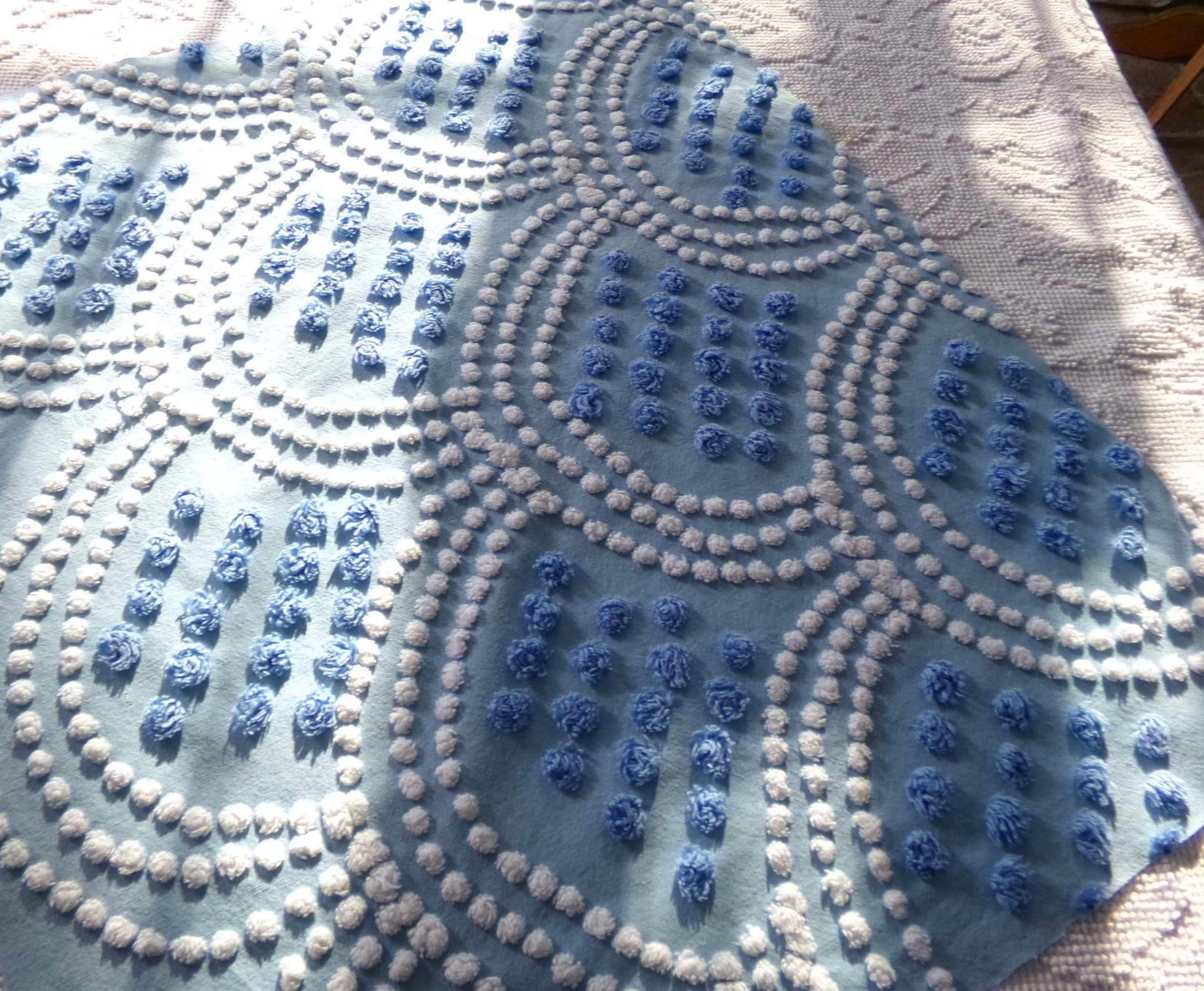 Breezy, beachy blue fabric is tufted with beautiful seashell scallops in little contrast pops. This is handtufted antique chenille fabric from the late 1930s or early 1940s in an exquisite design that will enhance any creative design it's incorporated into. Piece measures approx 24" x 20" inches, slightly irregular shape. Pattern placement may vary slightly. 100% vintage cotton. Common to the fabric given its handmade nature, you may spot a few pinholes, missing tufts, light age marks, etc. w h y - v i n t a g e? Incorporating vintage fabric into your project brings unique benefits: an unparalleled charm, a whisper of nostalgia...a deep-rooted history embedded in every fiber. Not only is the quality often superior to modern, vintage fabric is a sustainable choice - an eco-friendly option that stands out in a world consumed by mass-produced goods. For your next cherished design, think vintage 3 w h a t - t o - k n o w - this is a vintage fabric piece, not an entire bedspread - expect vtg attributes such as age spots, pulled threads, color variances, etc. - items are laundered/stored near fragranced products - combined shipping available; overages over $1 refunded t h e - c o t t a g e - d i v i n e From the tiniest quilt square to elaborately tufted chenille bedspreads & lovingly handcrafted robes, we are committed to honoring the legacy of this beloved textile.