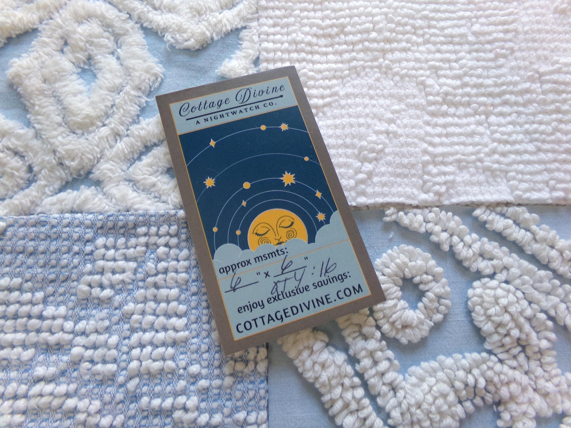 see more, cottagedivine.com"Seaside Serenity" ... a lovely set of 16 vintage chenille fabric squares emphasizing the tranquility of a seaside retreat. *pattern placement may vary*